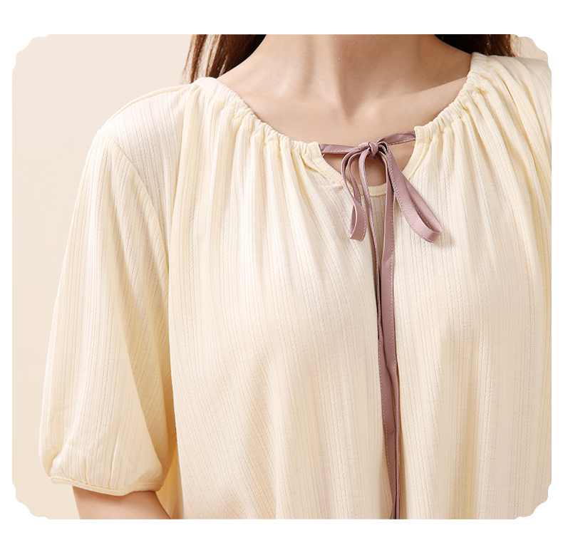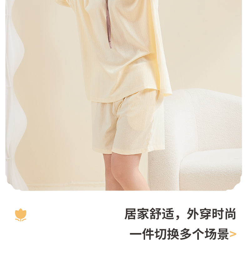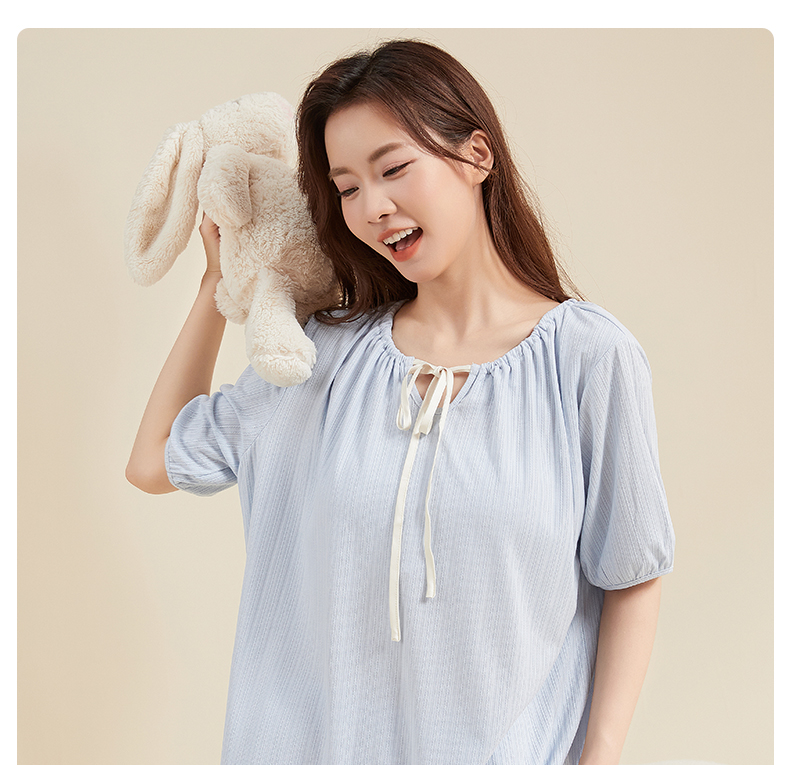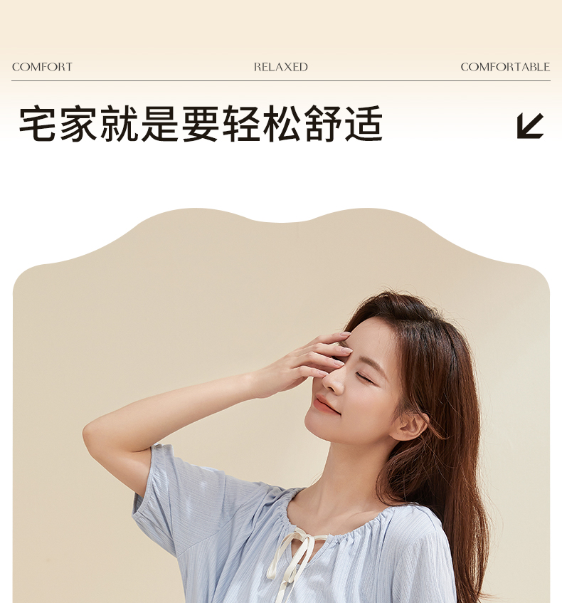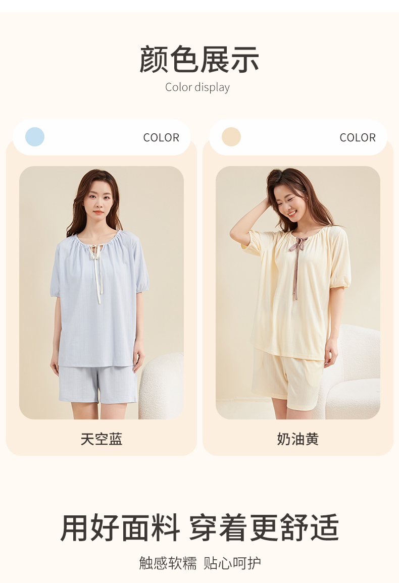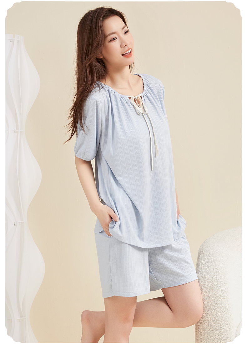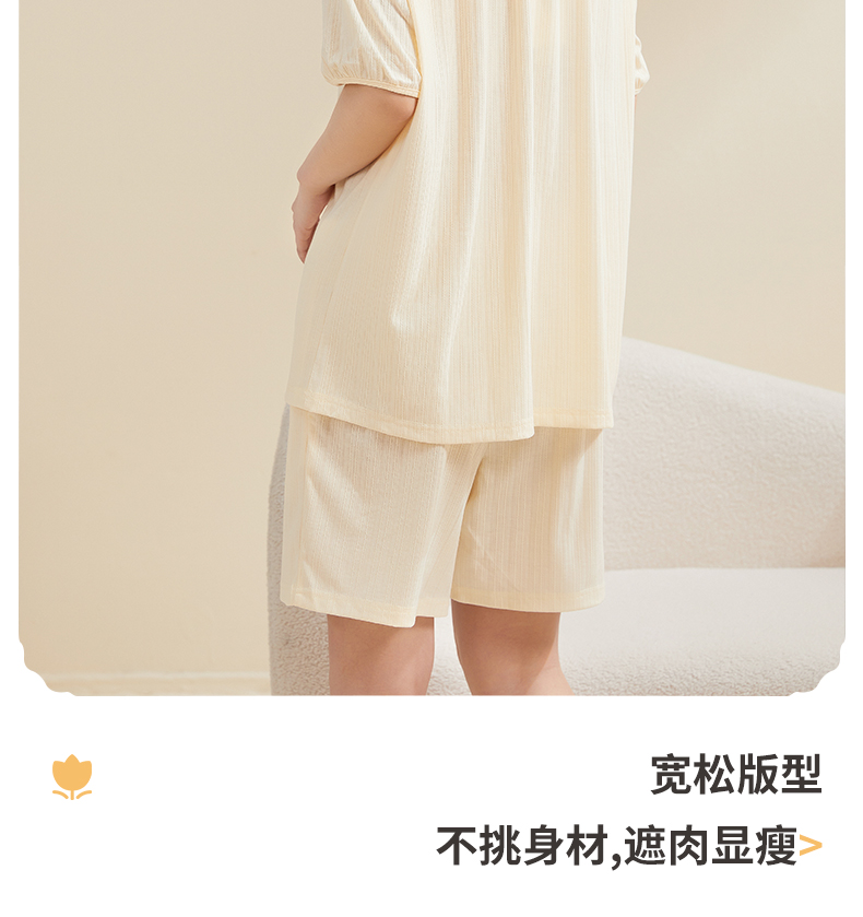 贝佳人新款夏季宽松圆领家居服舒适短裤短袖套装女士睡衣BW532507