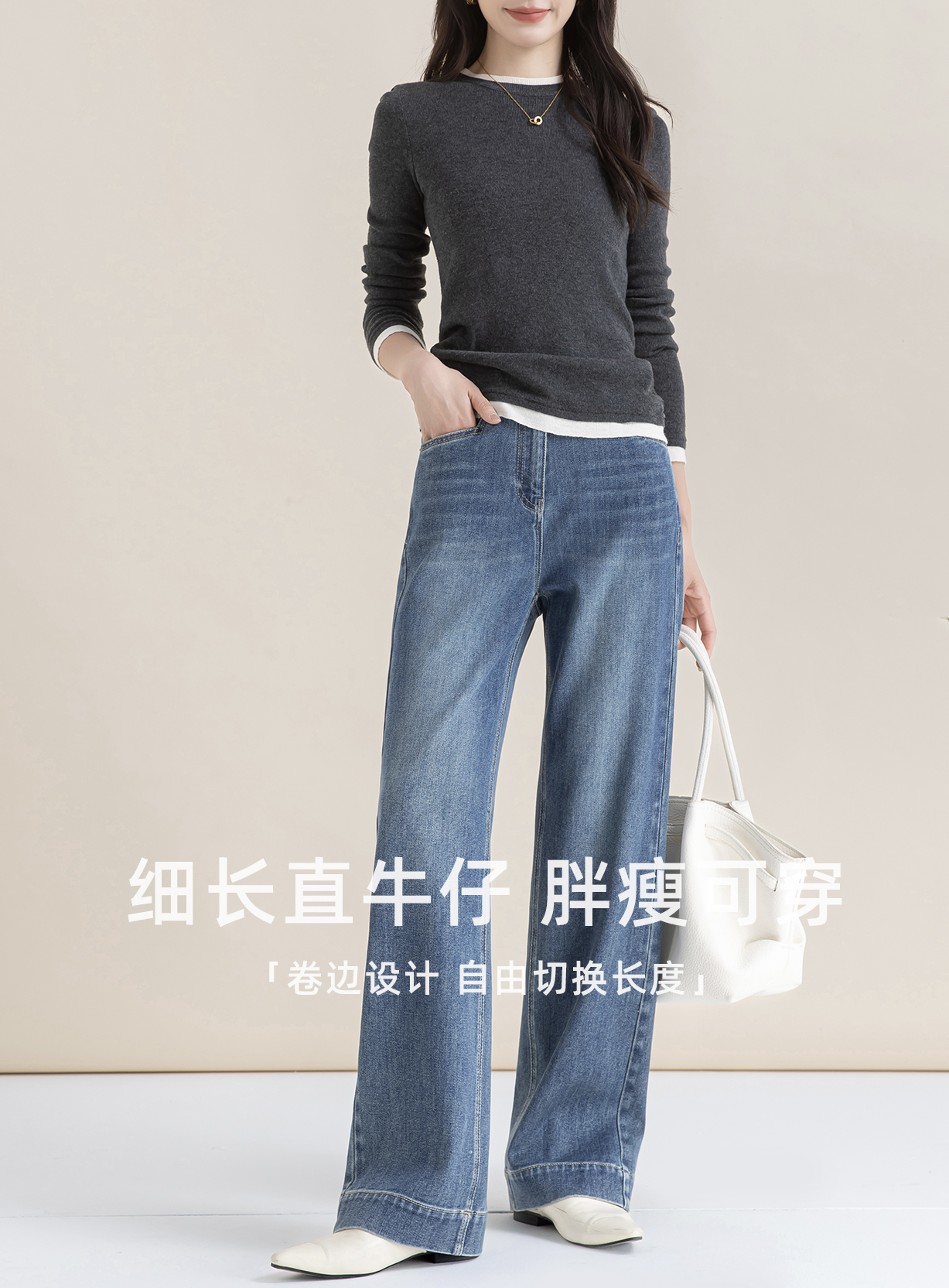 XL1 臣禾 【细长直牛仔】垂感窄版阔腿裤直筒休闲裤 JZ253060675