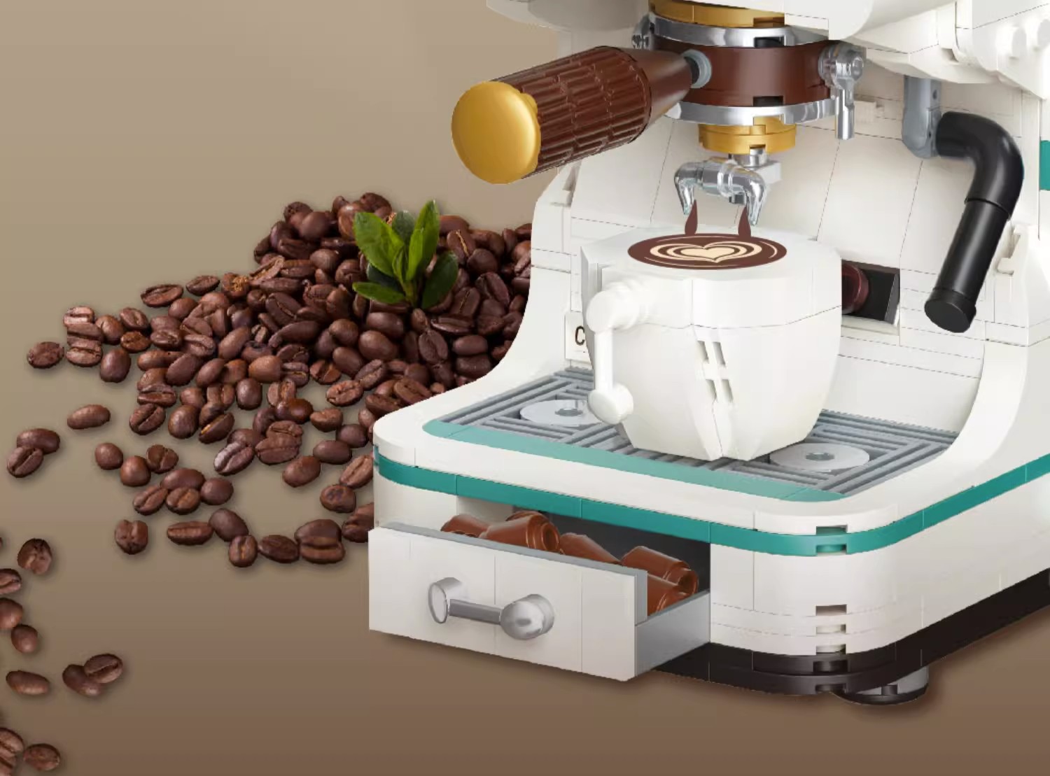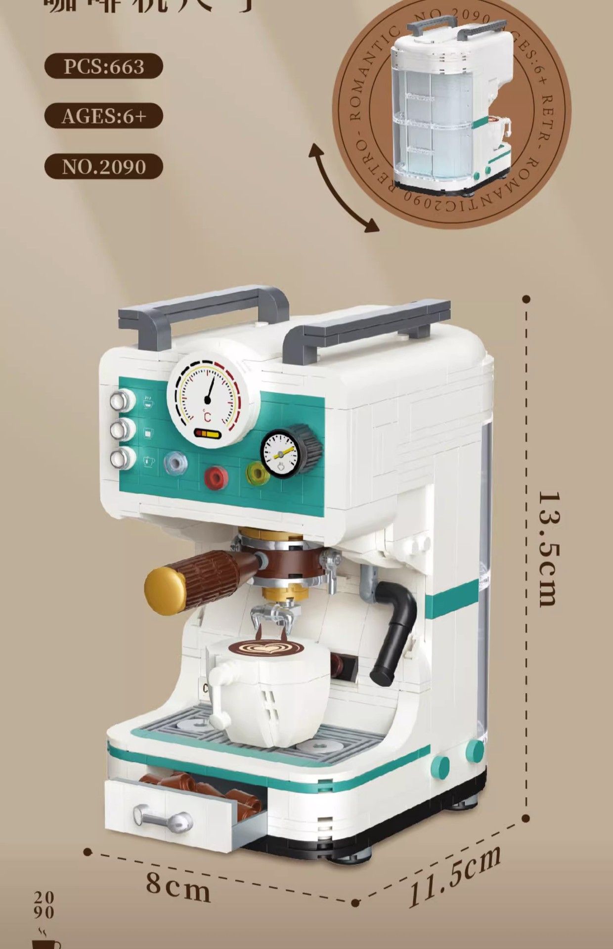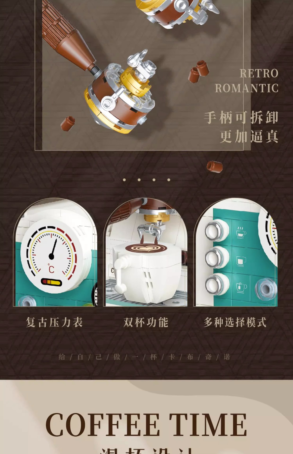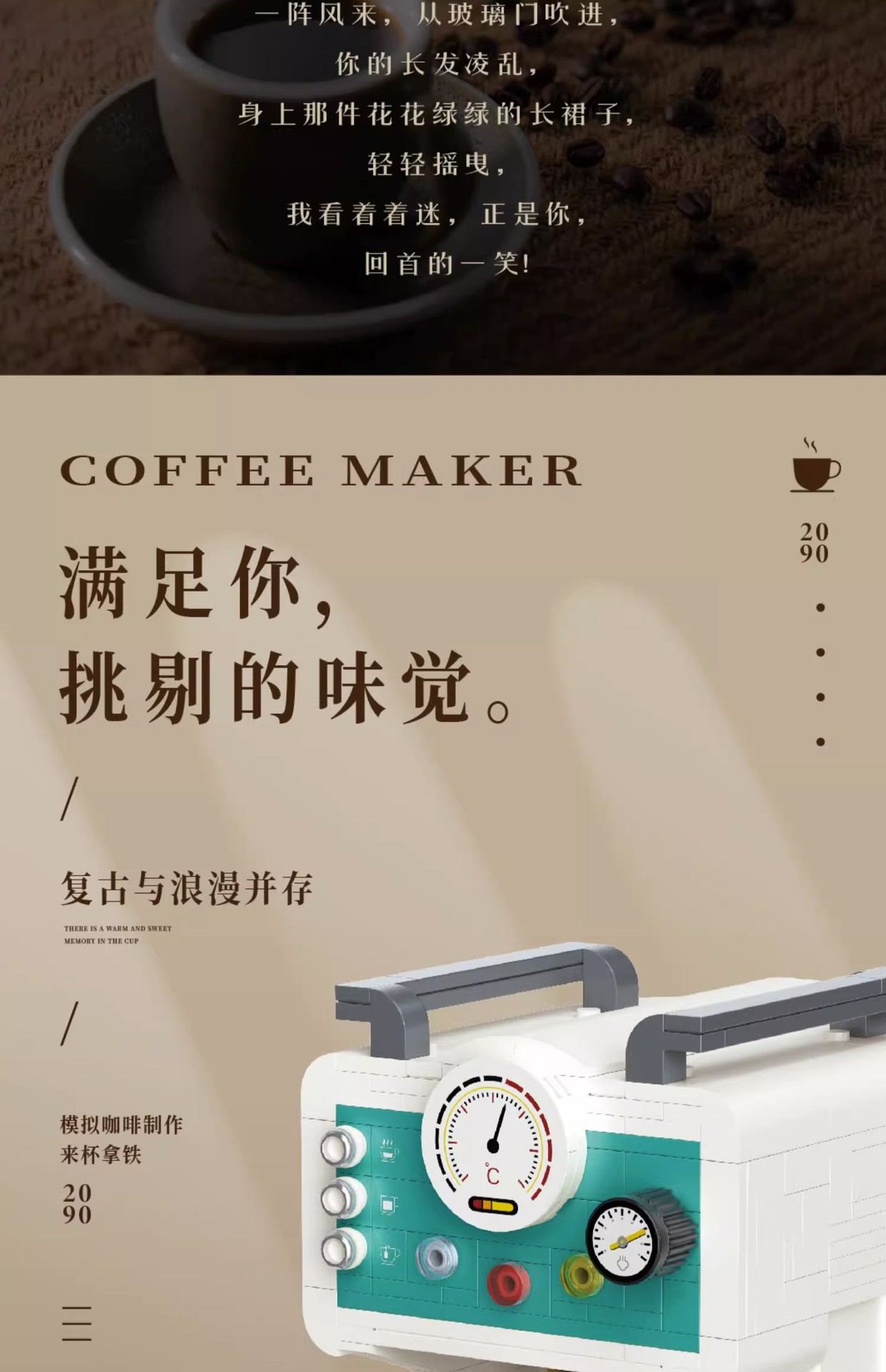 【益智拼搭玩具,培养孩子的创造思维】复古咖啡机积木 面包机益智拼搭 儿童玩具小颗粒 场景积木潮玩摆件-QQ