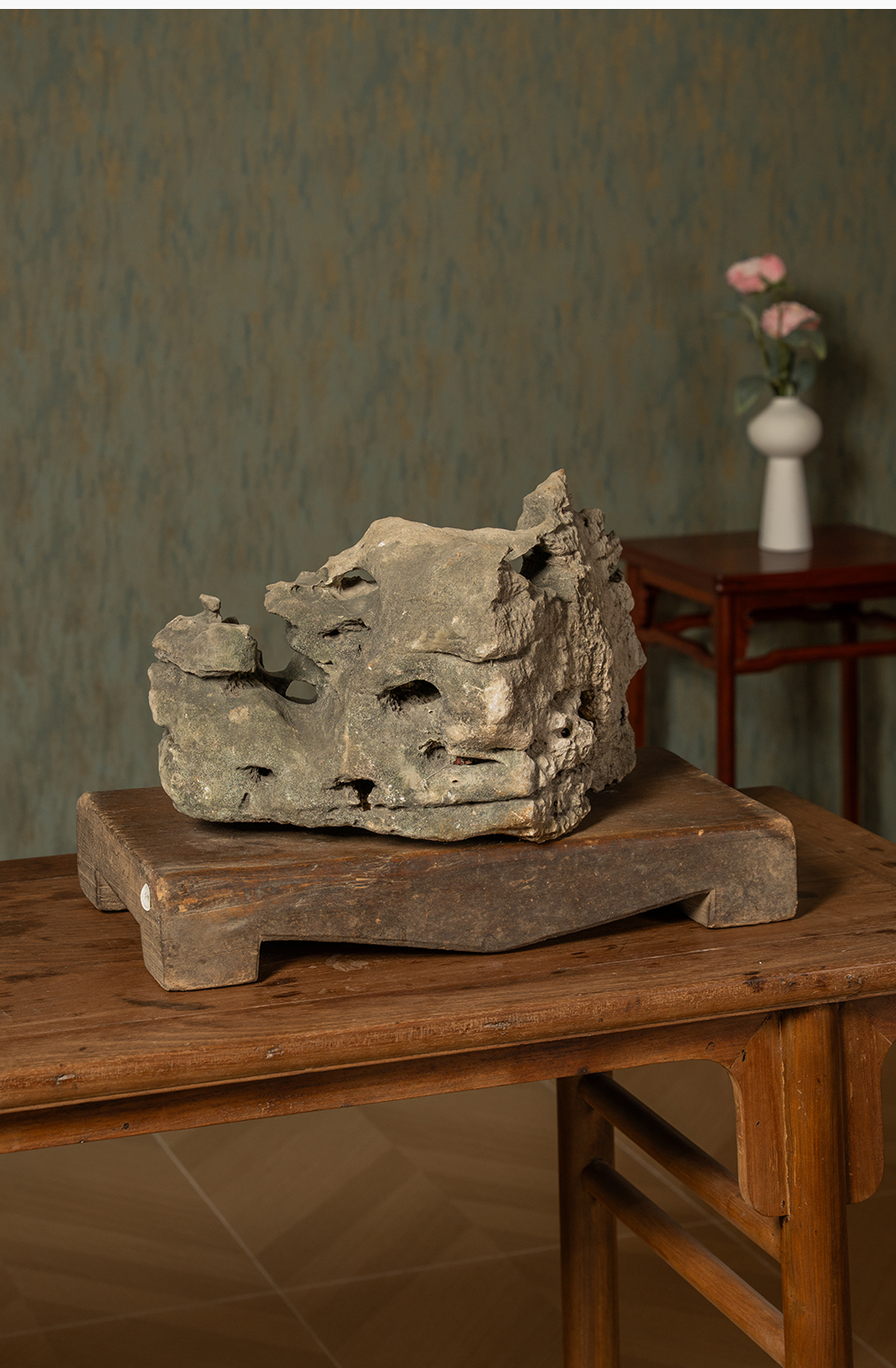 清 太湖石文房赏石(红木座)