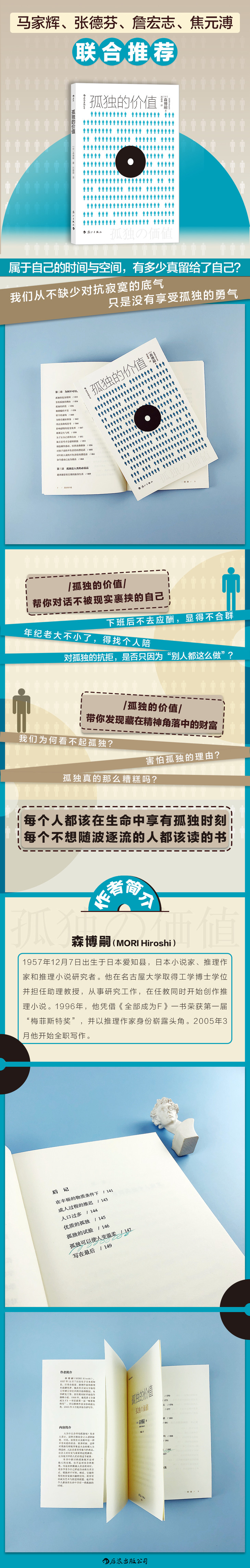 本书中探讨的孤独既不是对他人的无视, 也不是对社会的拒绝,而是在积极融入社会的同时,充分享受令自己舒适自由的生活方式。孤独并不可怕,相反,它能给我们充分发展兴趣的空间,甚至可以成为艺术与创造的摇篮。也许每个人都该在生命中享有一些孤独的时刻。