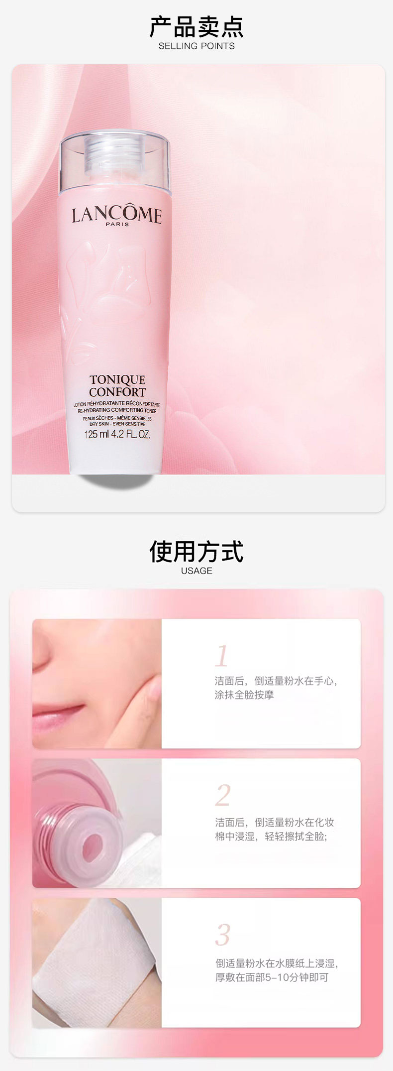 【下单4瓶装 到手500ml】新版LANCOME兰蔻爽肤大粉水125ML*4瓶 一般贸易
