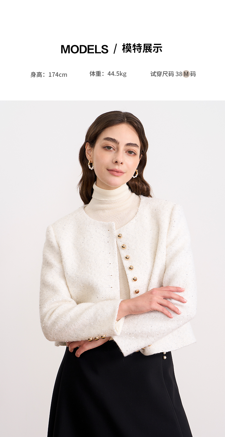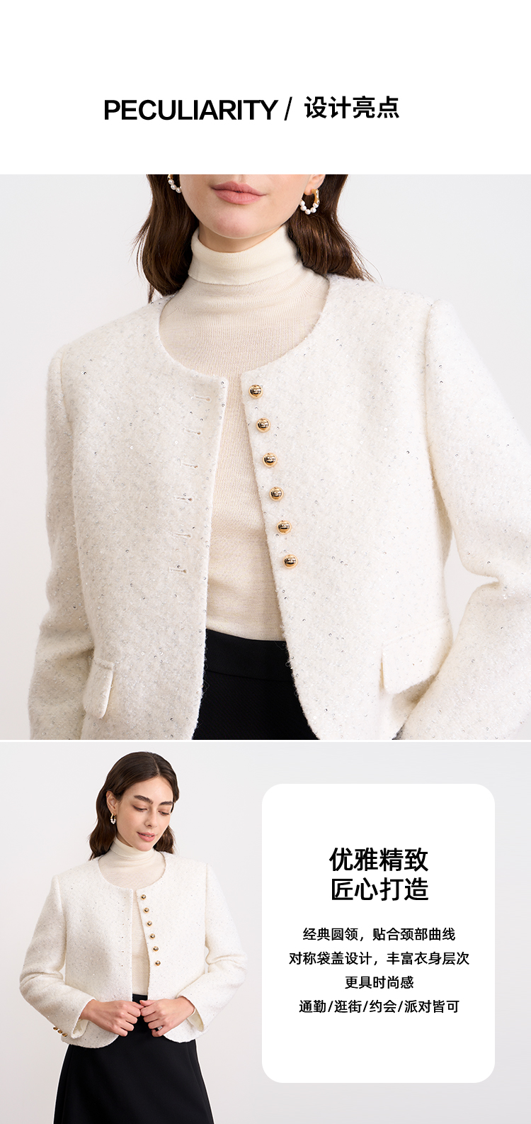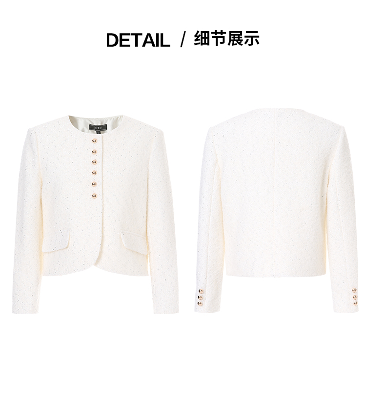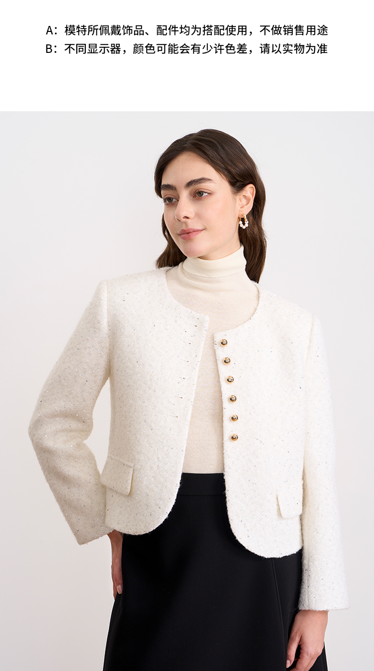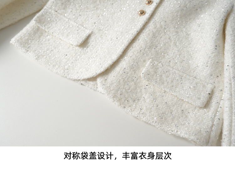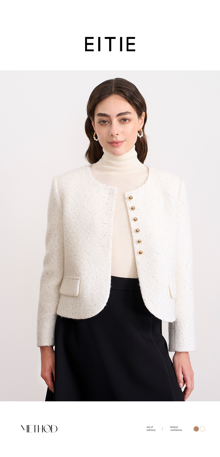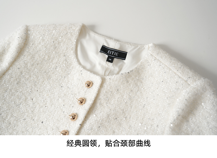 【羊毛短外套】EITIE爱特爱精致复古小香风白色亮片秋冬新款D2503905