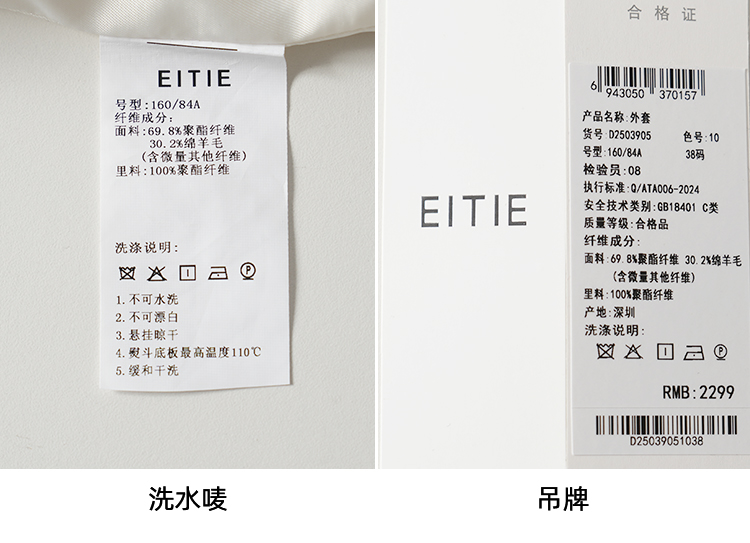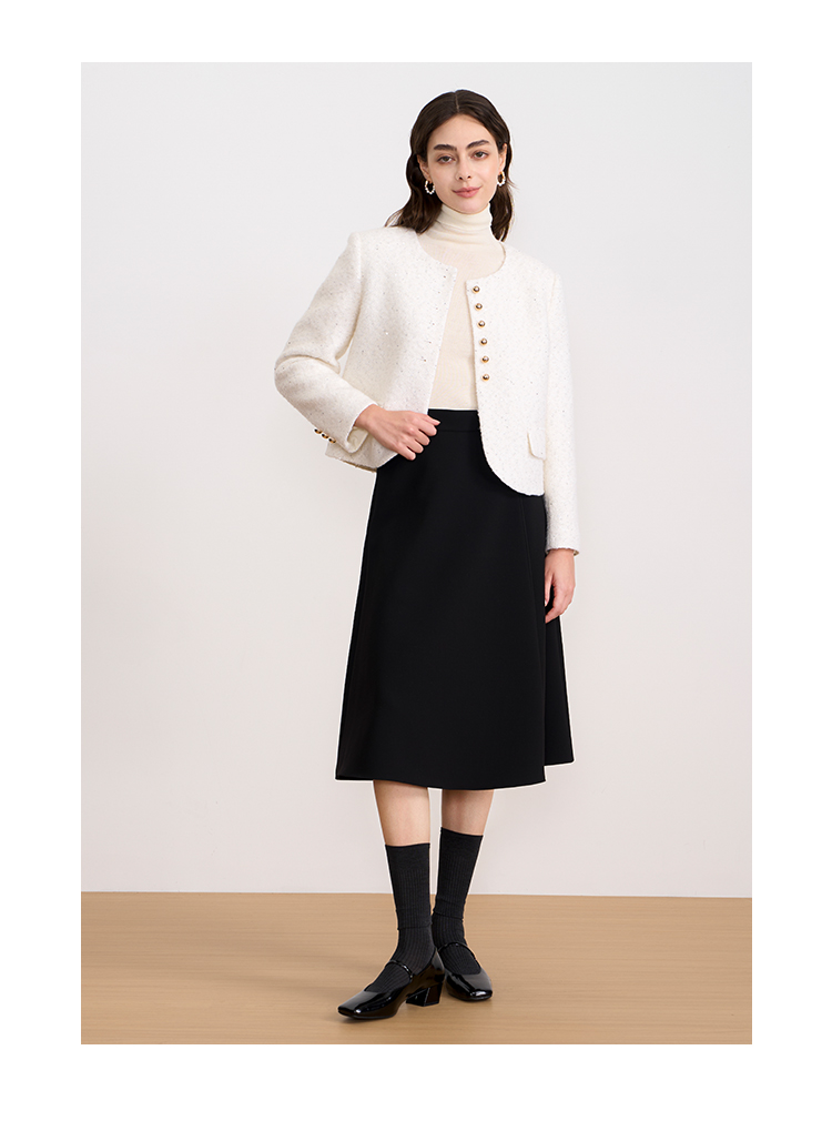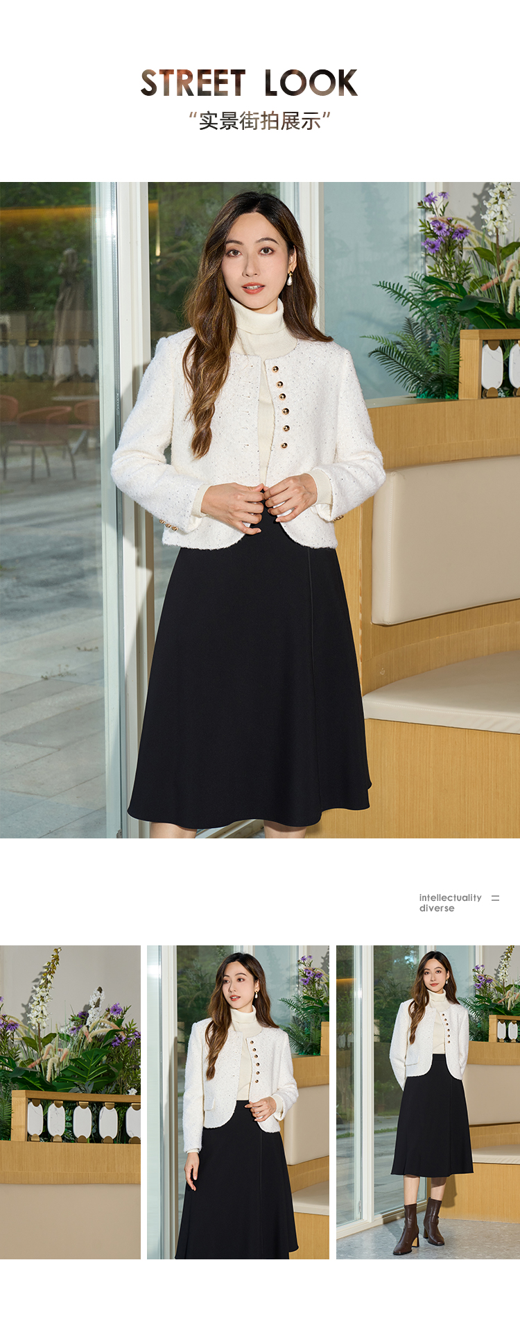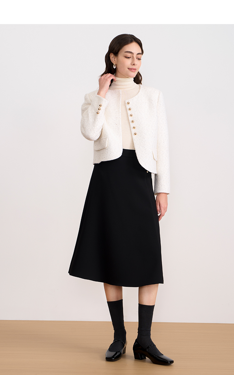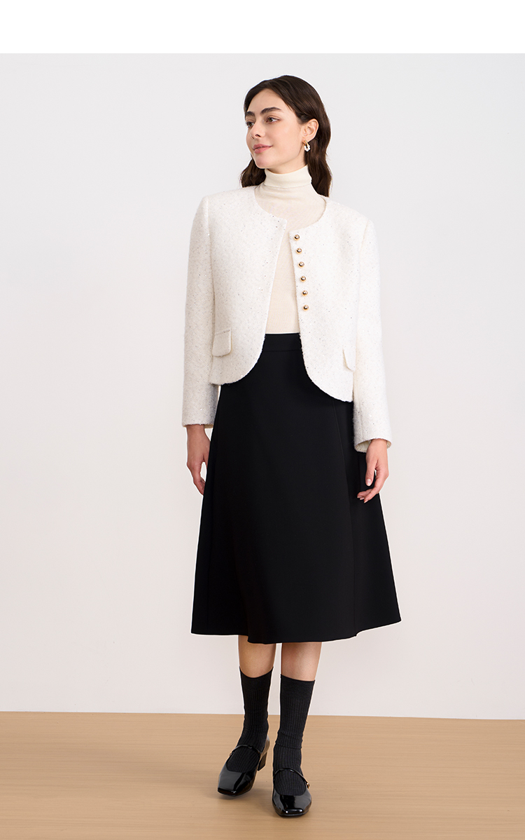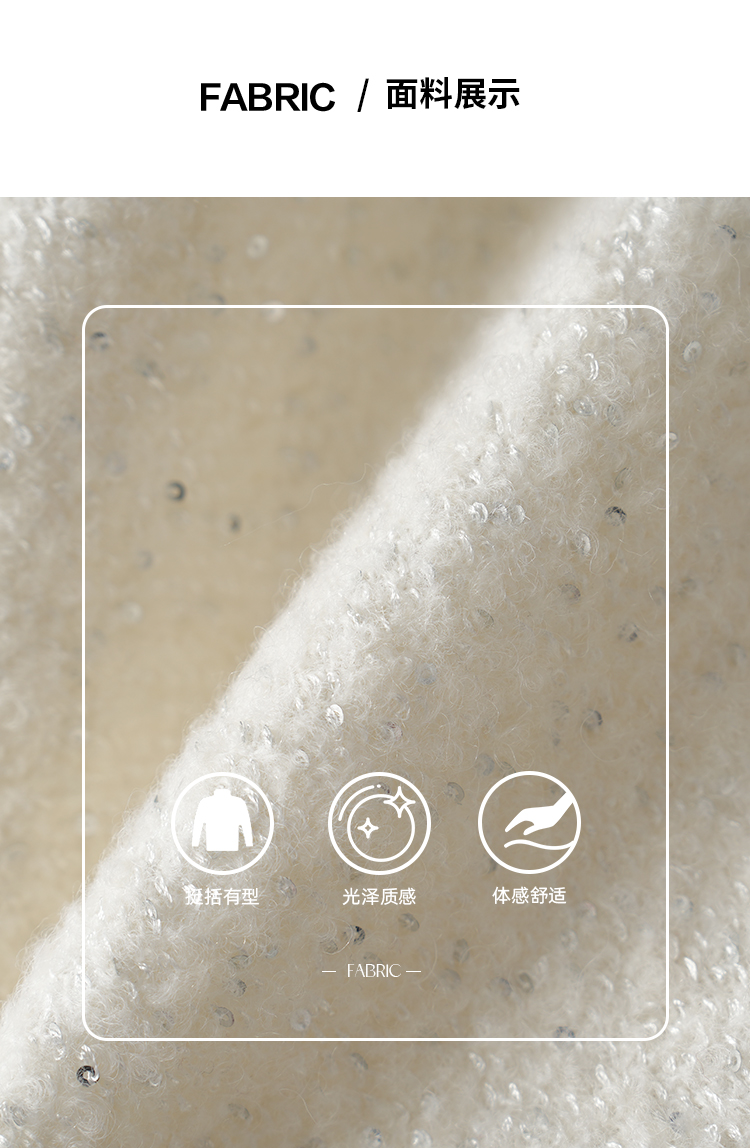 【羊毛短外套】EITIE爱特爱精致复古小香风白色亮片秋冬新款D2503905
