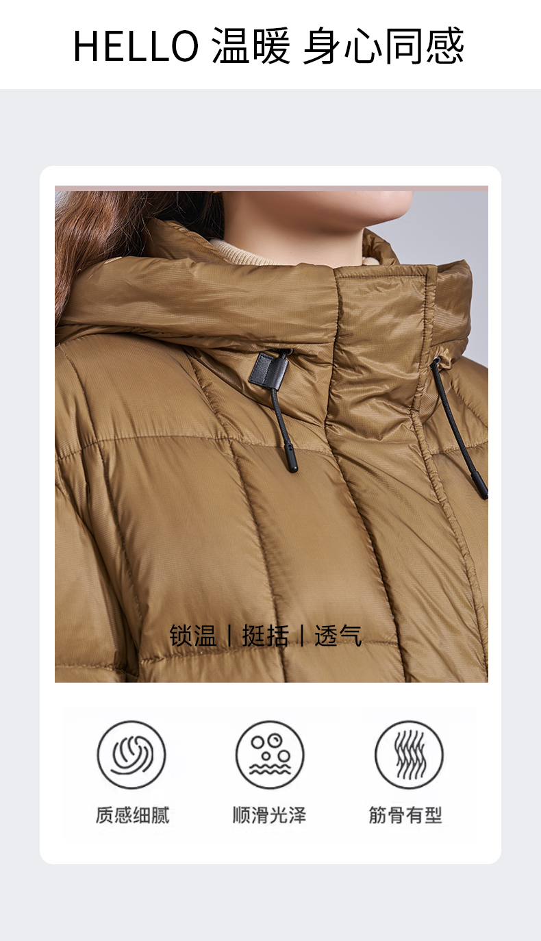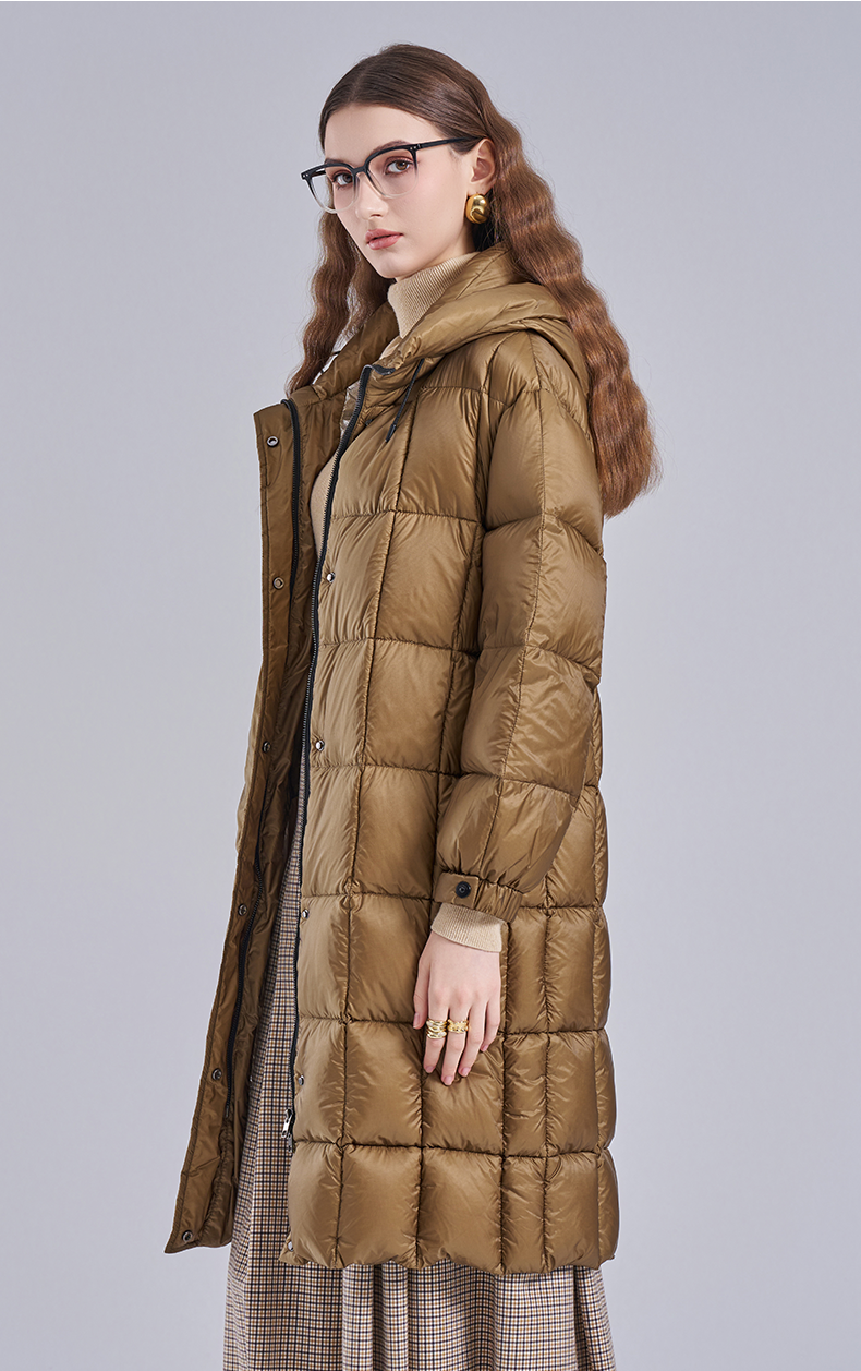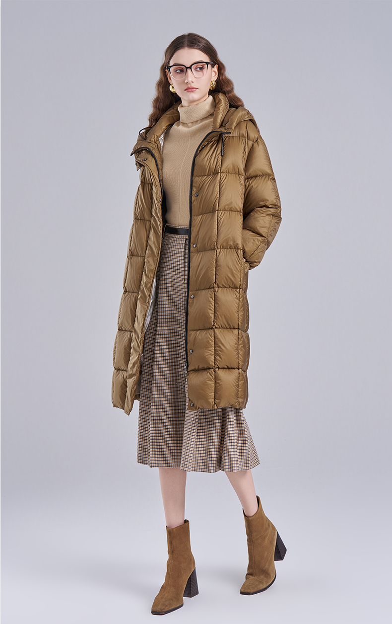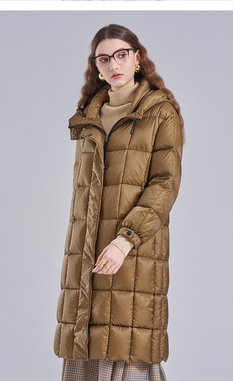 乔万尼冬季白鸭绒H型连帽设计长款时尚羽绒服ET4T990