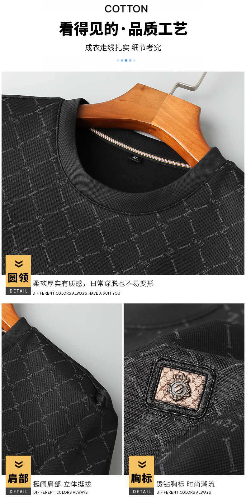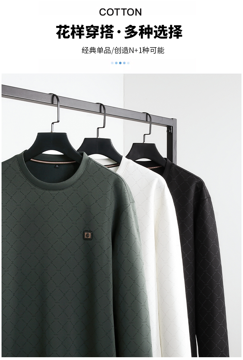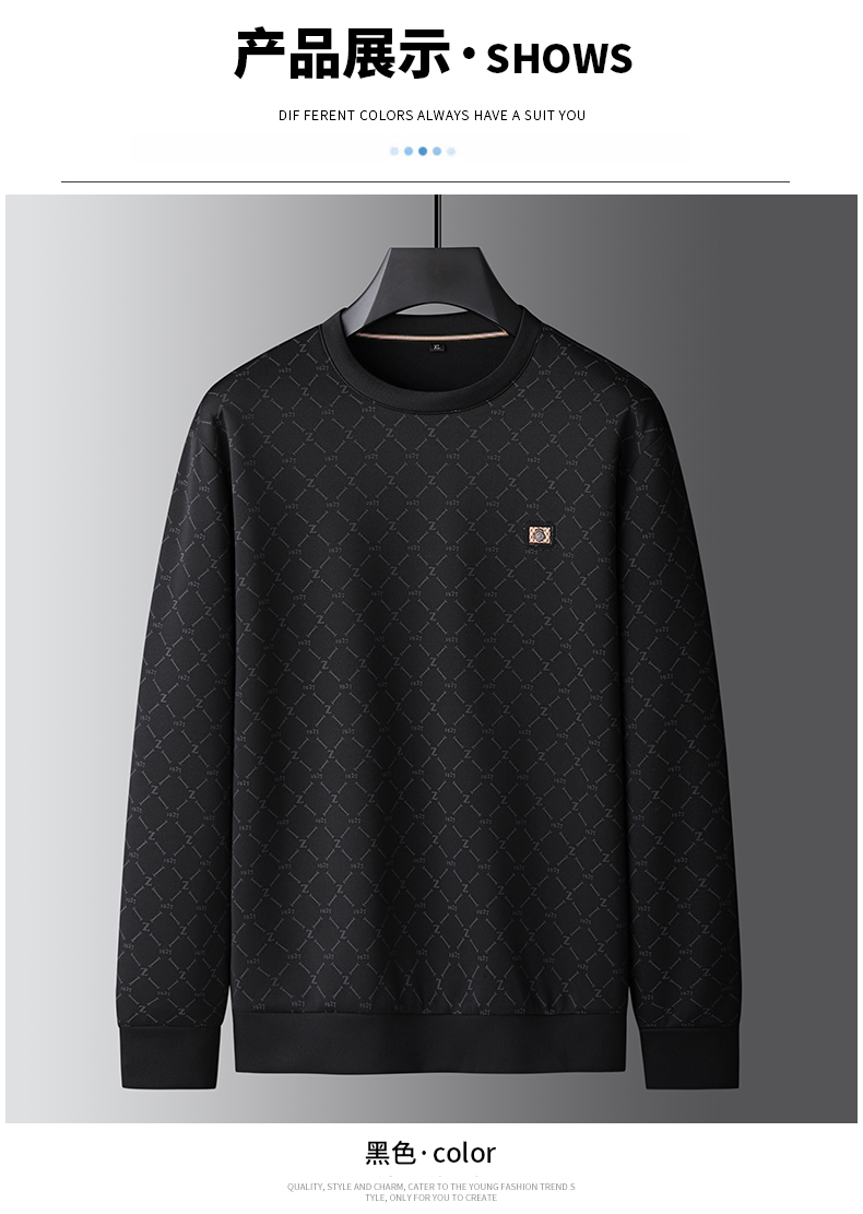 【新款DK】大依优型大码男空气层满印印花卫衣长袖圆领宽松立体显瘦加肥加大舒适秋季上衣胖子
