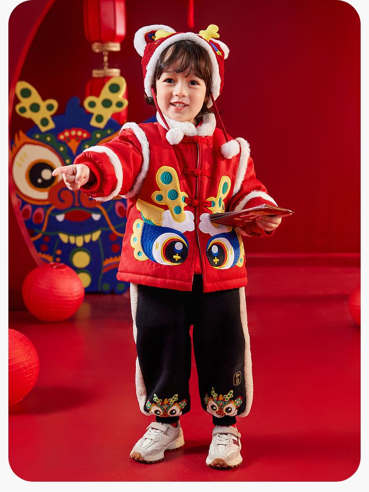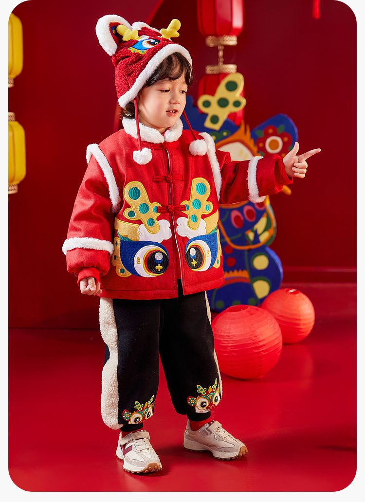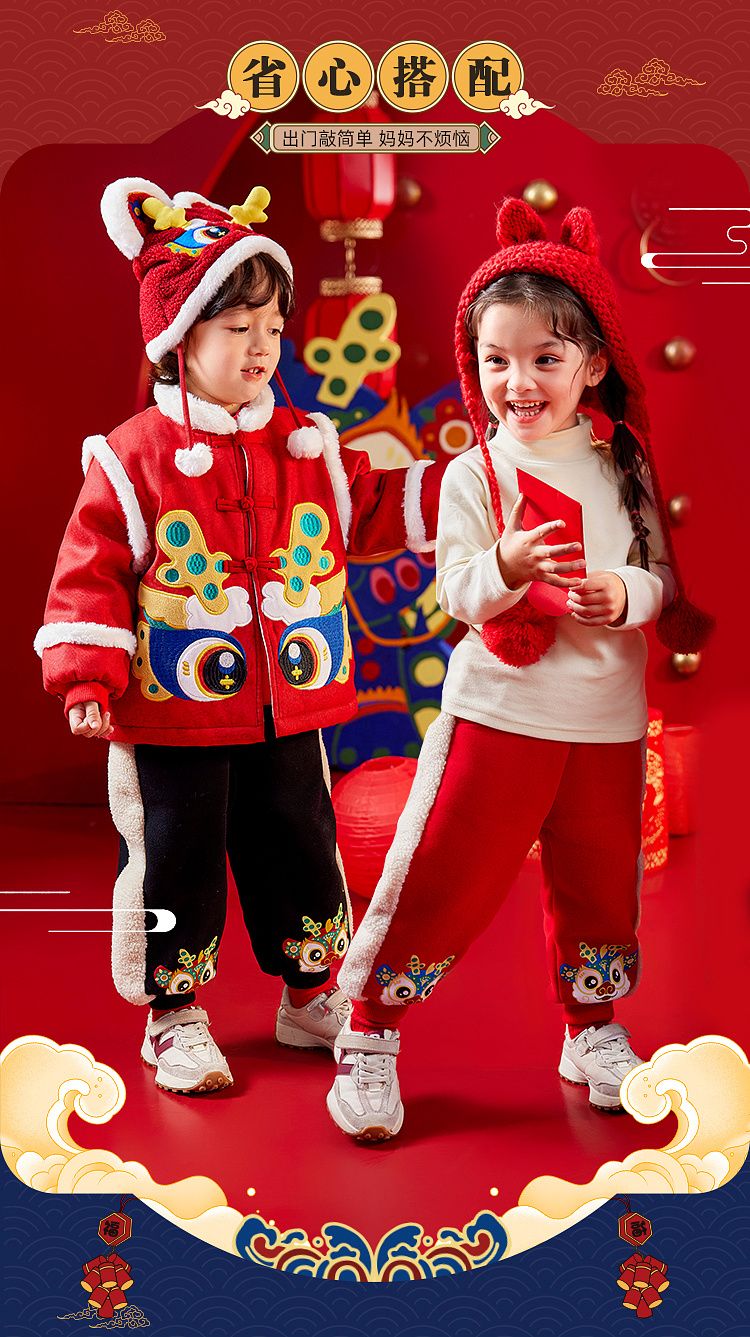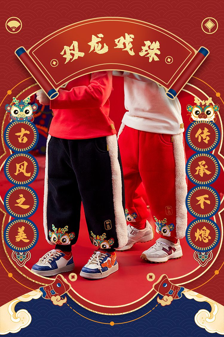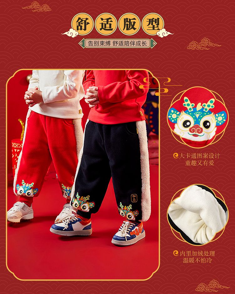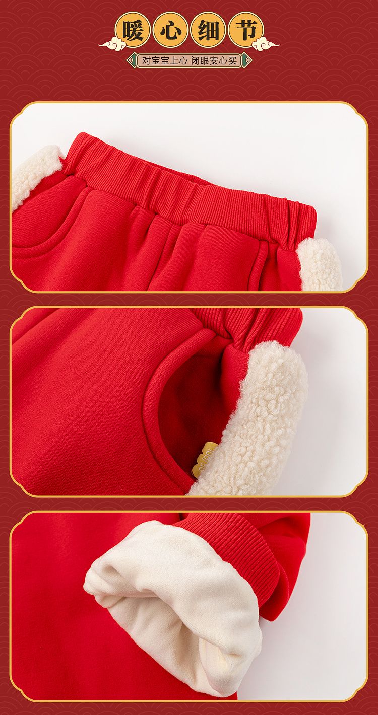 【清仓】嘟嘟家宝宝裤子喜庆新年装男童运动裤冬季儿童拜年服女童过年衣服