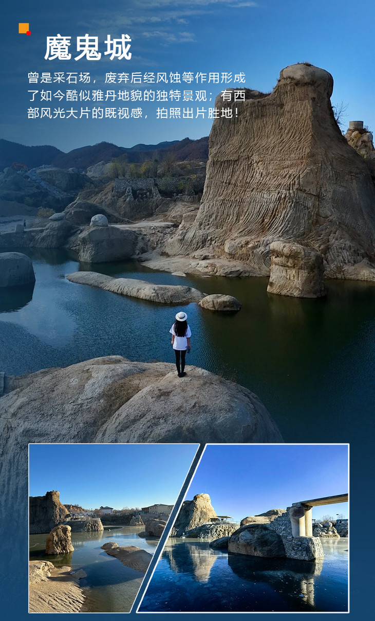 - 10:30 | 拔营、收拾营地,之后前往魔鬼城游览,大家可以尽情拍照打卡,仿佛在西域戈壁,都是大片;中午可在魔鬼城附近农家院品尝午餐。