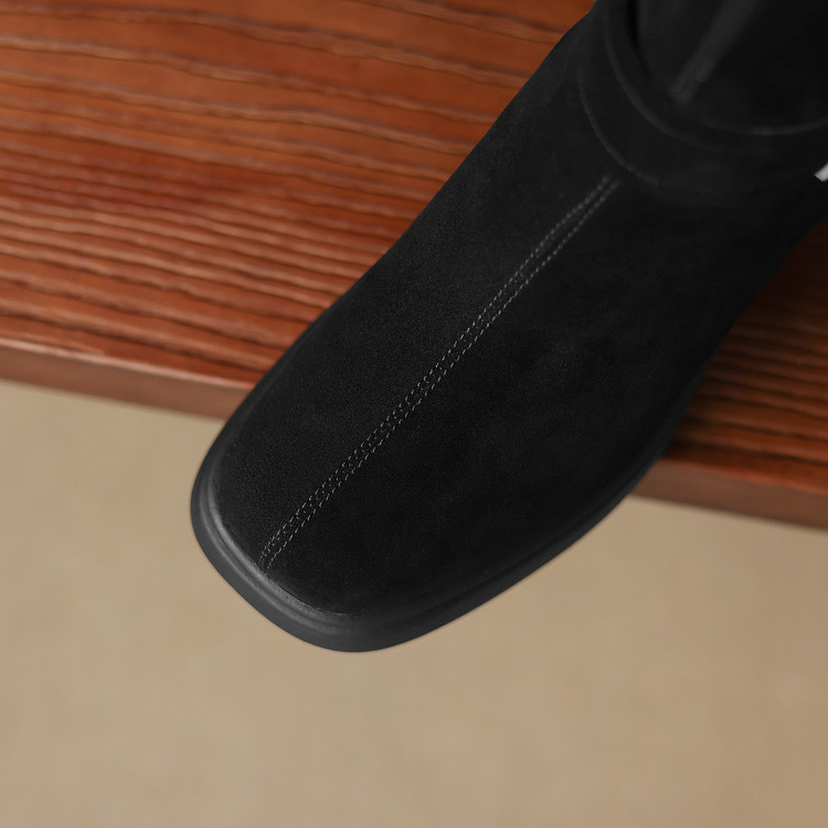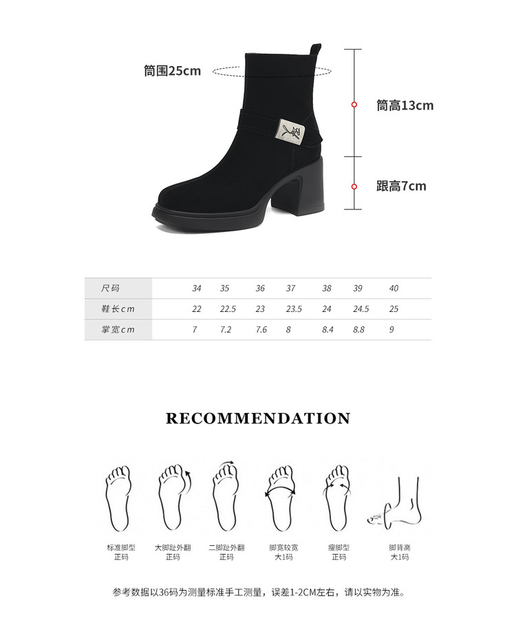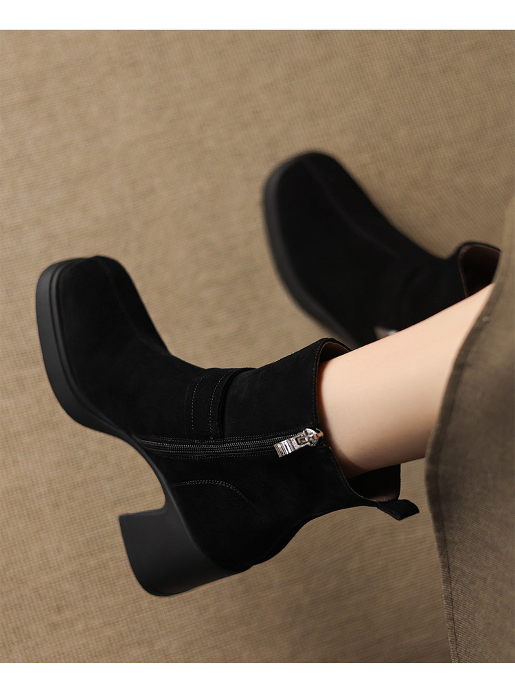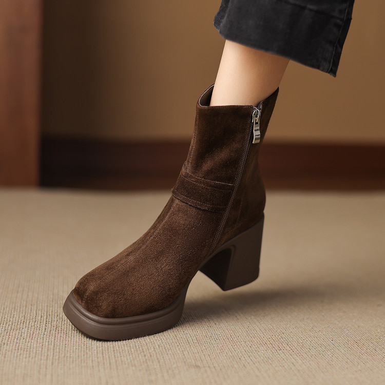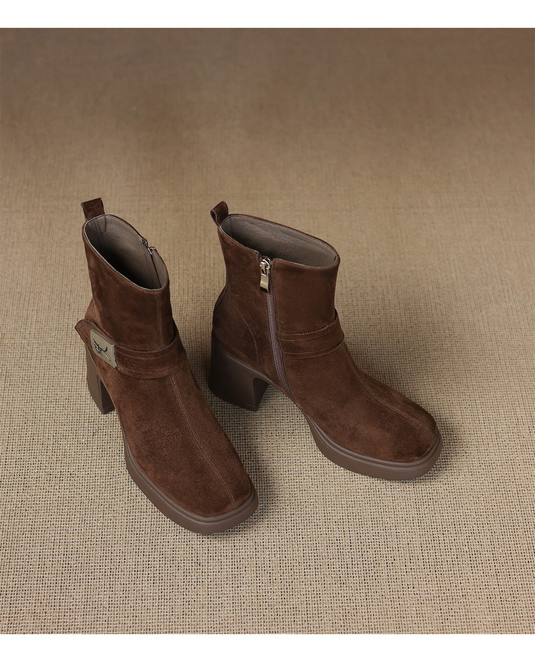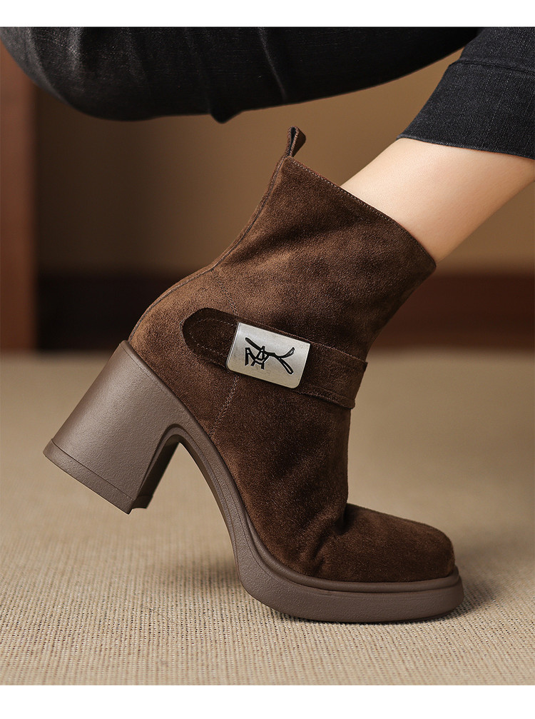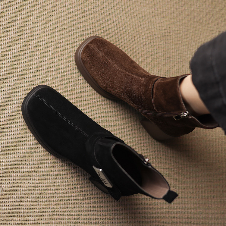 【预售5天】磨砂皮粗跟圆头高跟短靴女秋冬新款复古皮带扣厚底切尔西靴ZYY&A1528