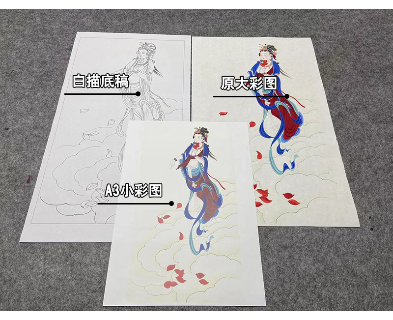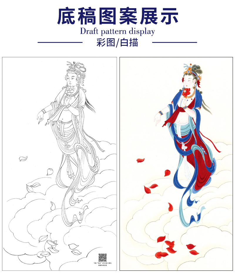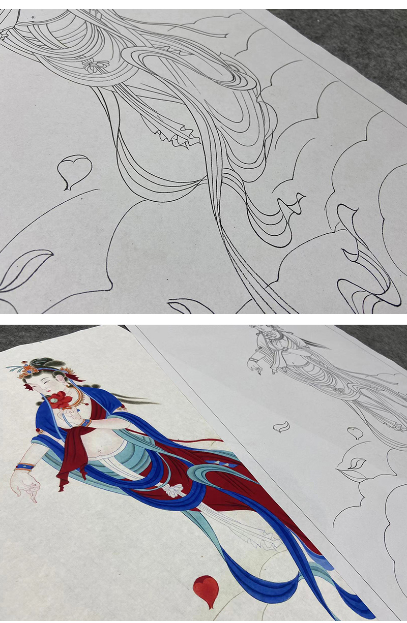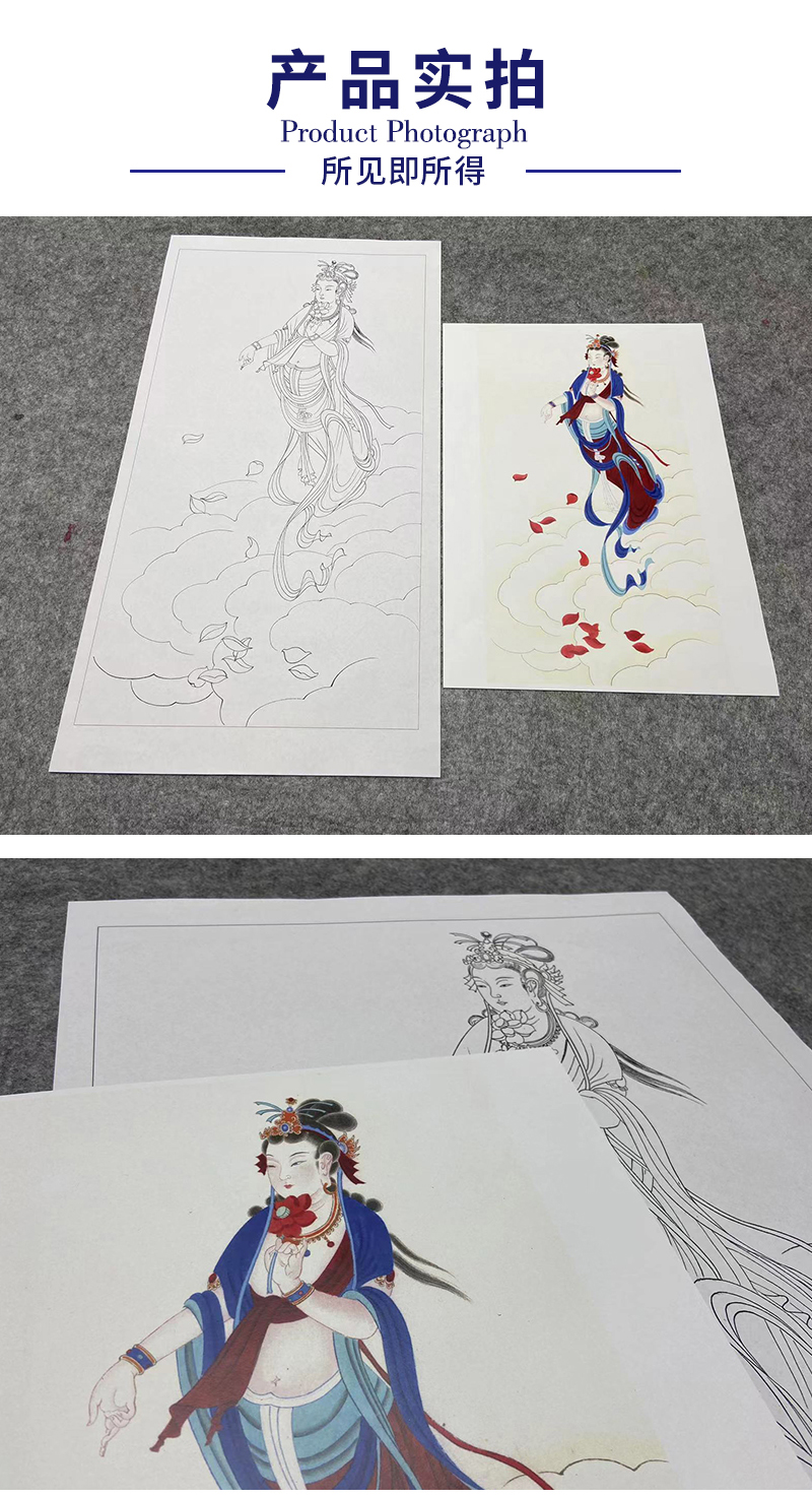 张大千工笔画白描底稿《菩萨造像》临摹勾线高清打印稿YL13