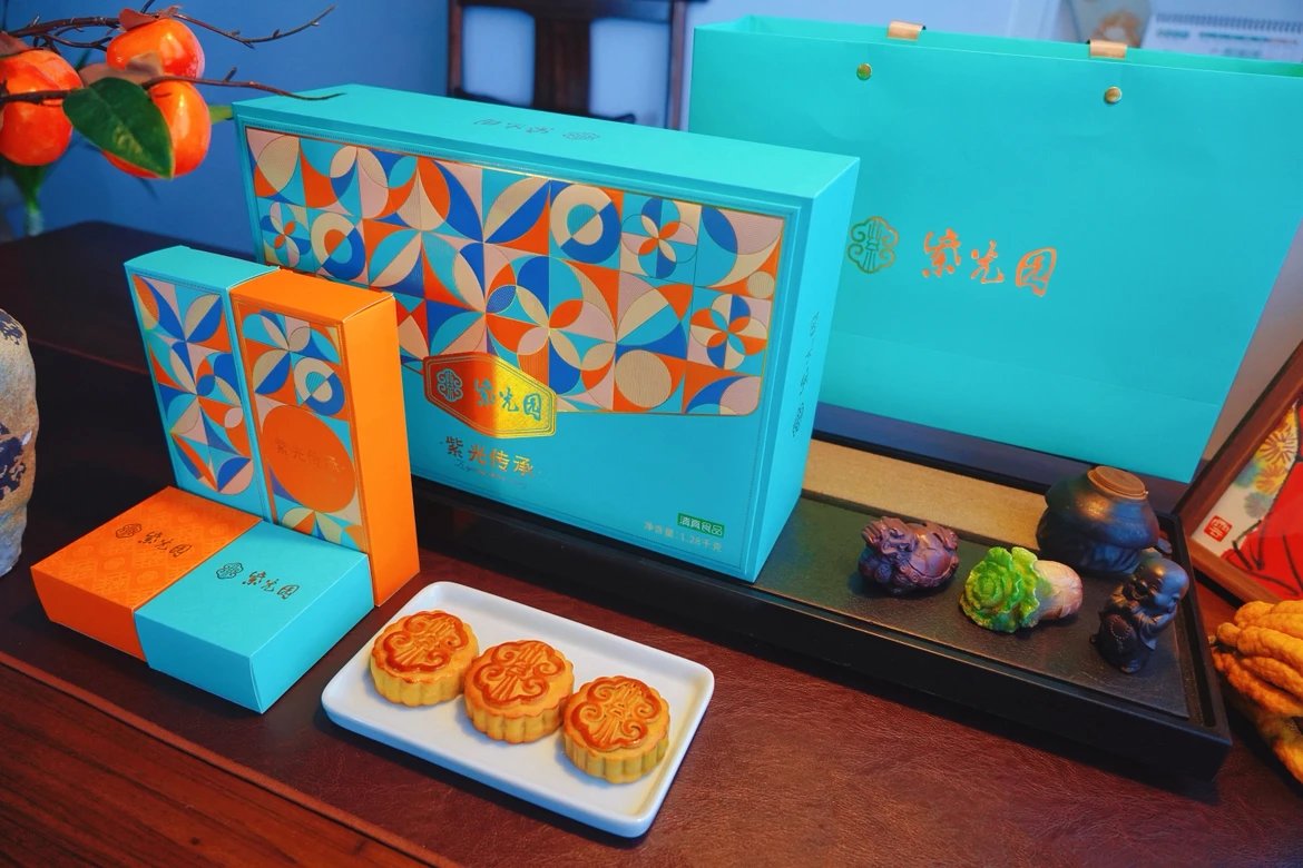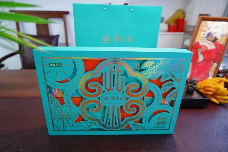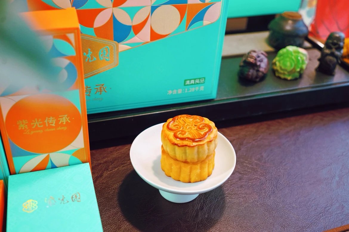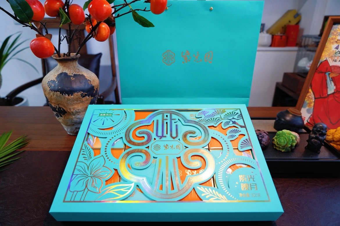 轻轻启盒,月光仿佛流淌而出,映照出紫光园匠心手作的月饼