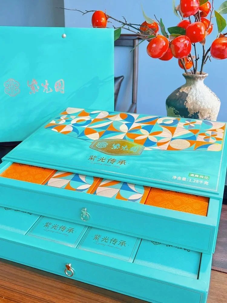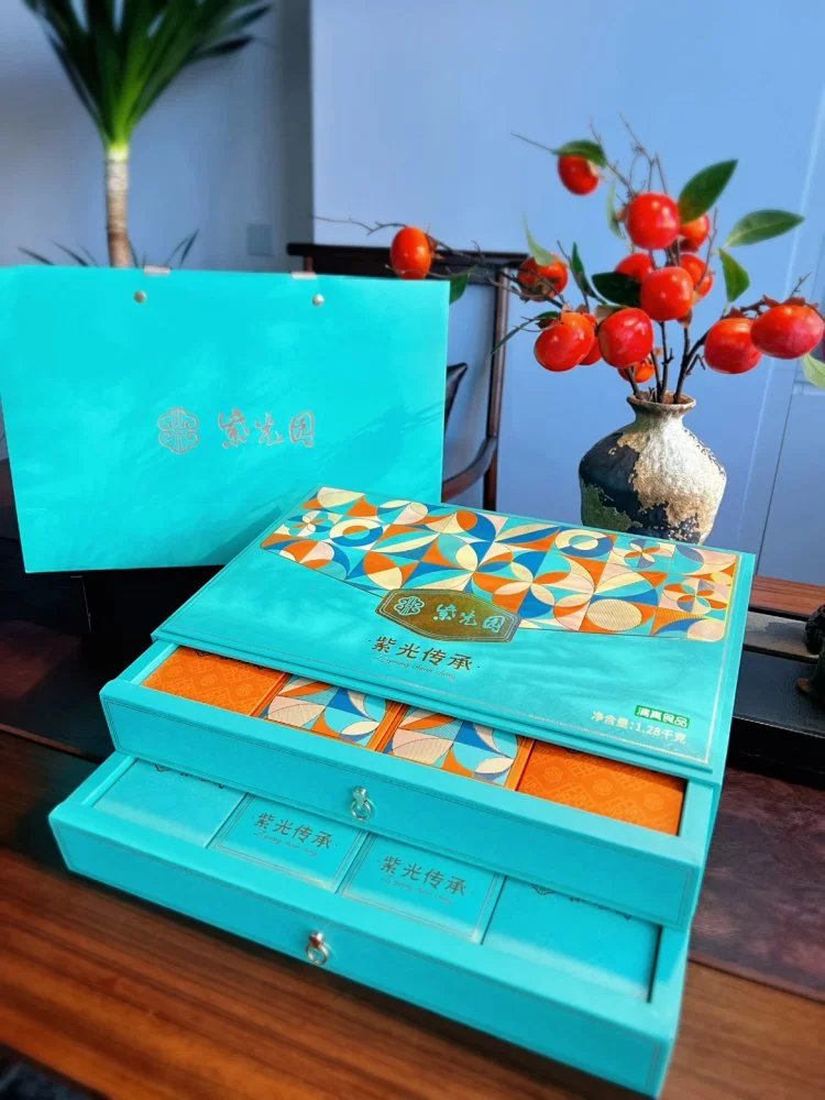 (B款) 紫光传承月饼礼盒(1280克) 匠心承韵 月满情长? 百年老字号 清真紫光园 以匠心守护传统 以美味传递真情 紫光传承月饼礼盒,不仅是一份中秋佳礼,更是一段跨越时光的味道记忆。