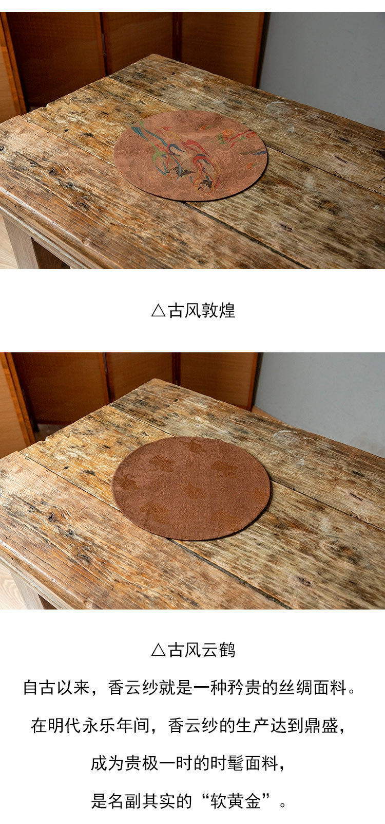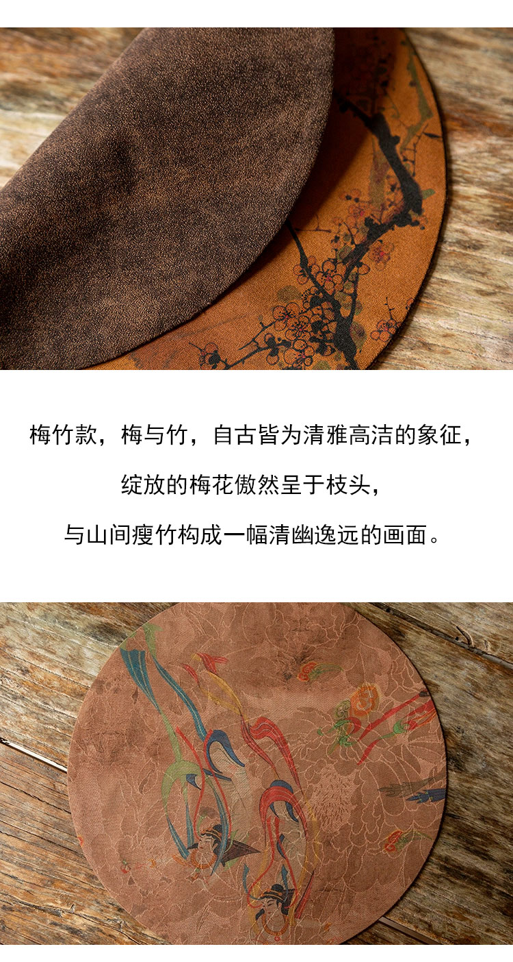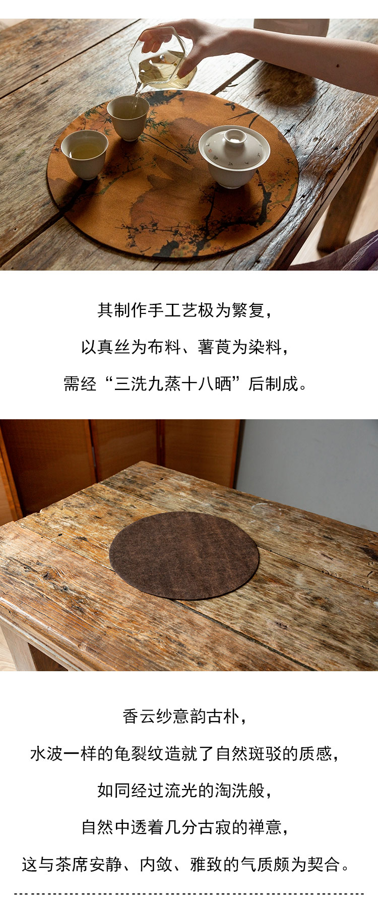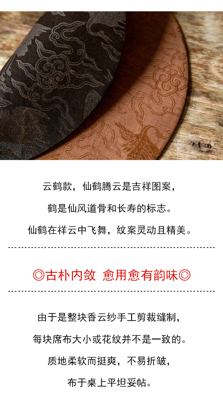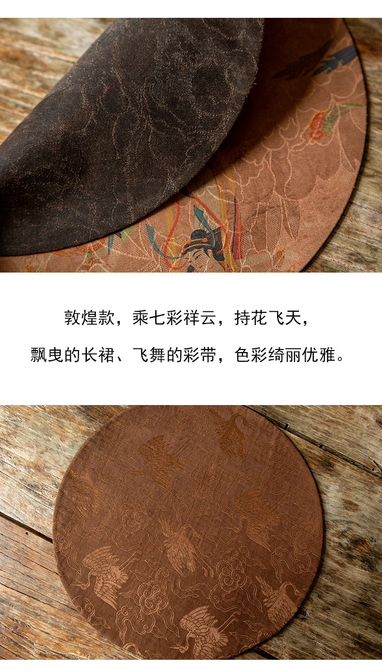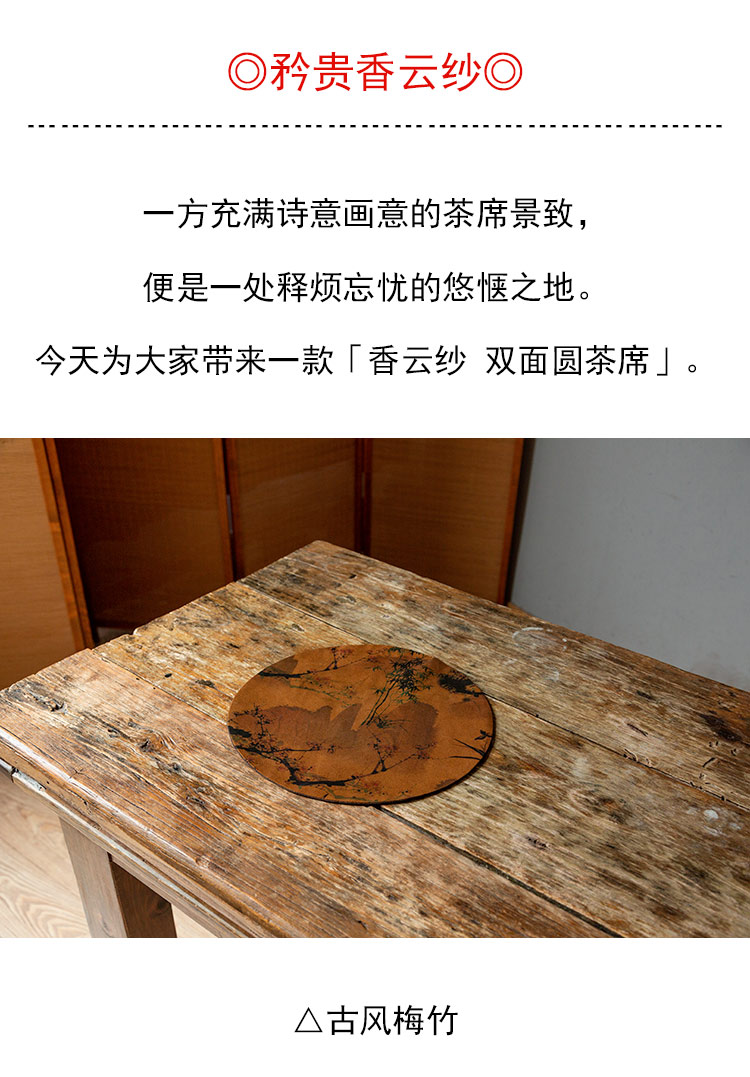 茶香记 香云纱双面圆茶席 古风意境 古朴内敛 纹案精美 茶道零配