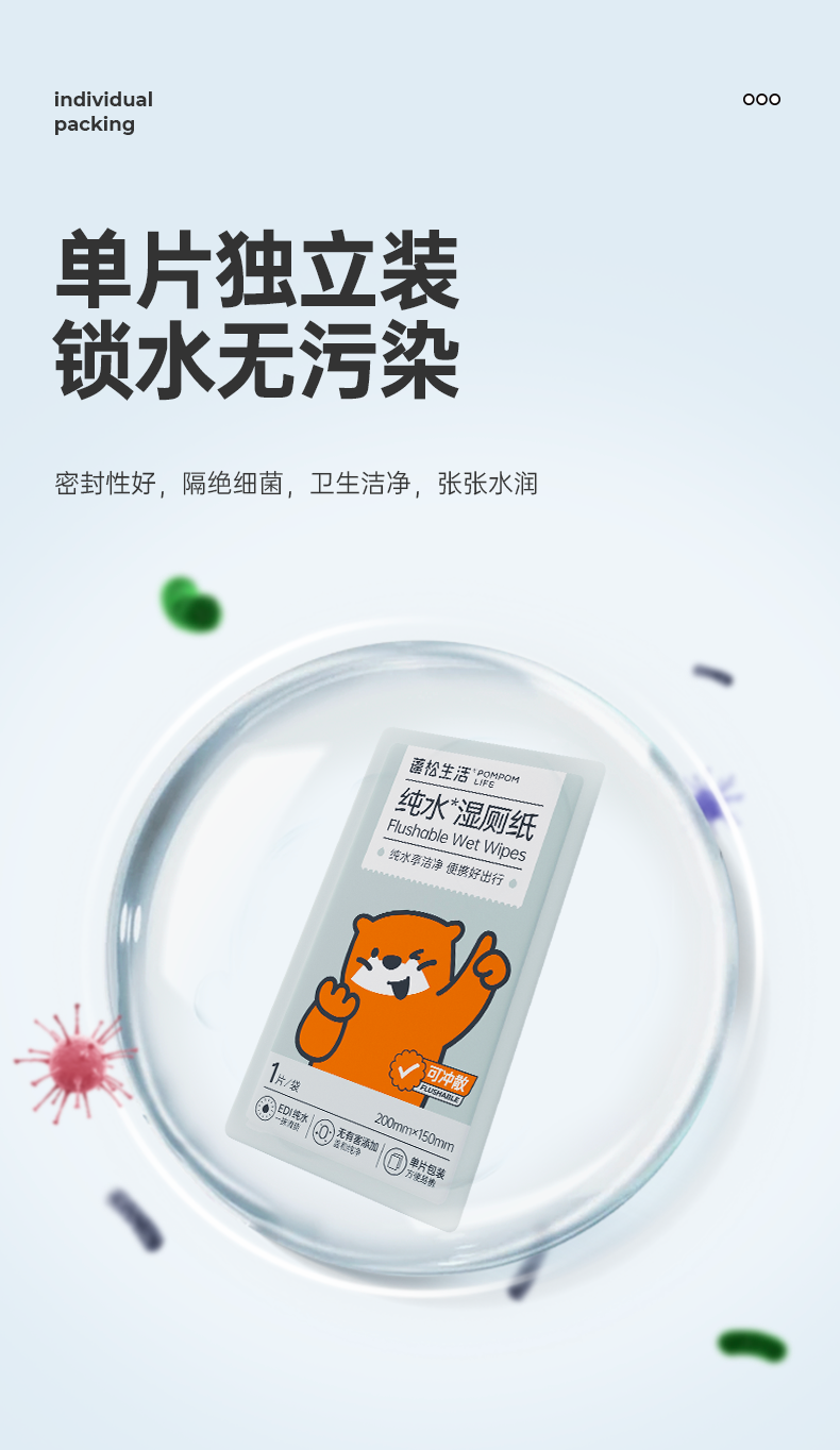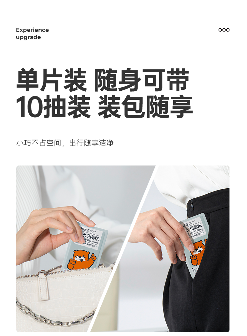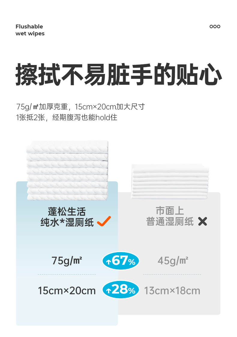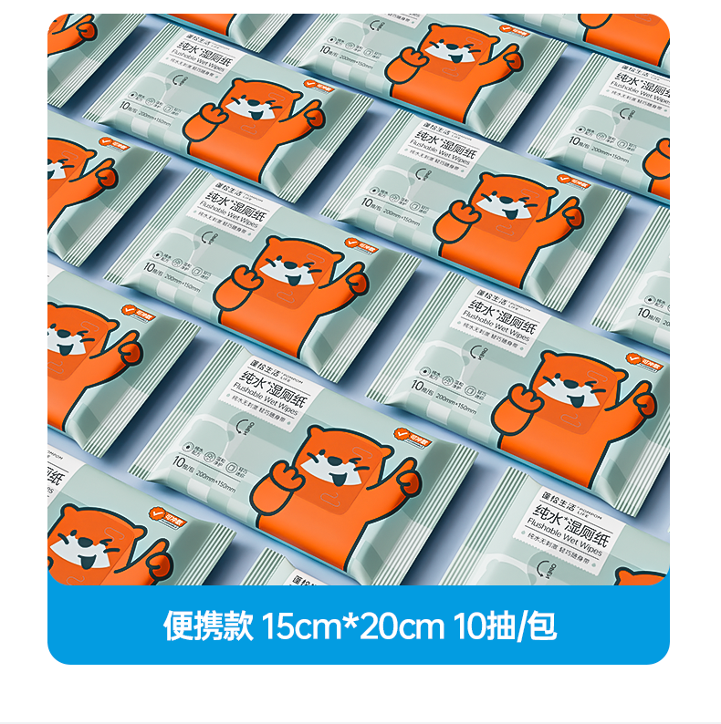 蓬松生活纯水湿厕纸单片独立装10抽纸便携湿厕纸可冲散男女擦屁屁