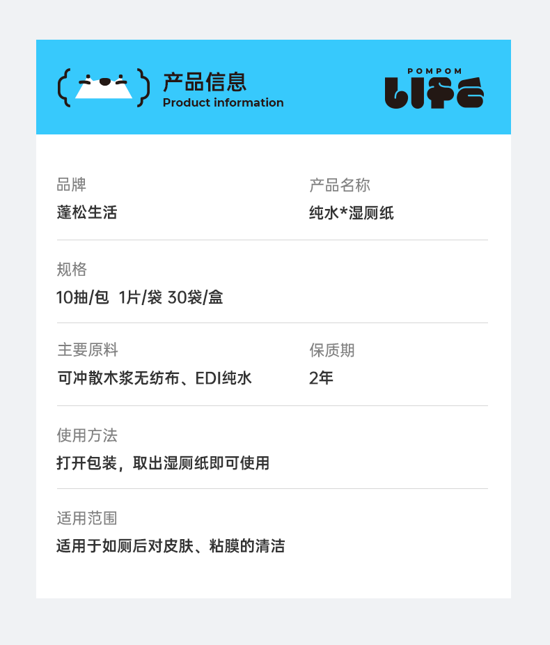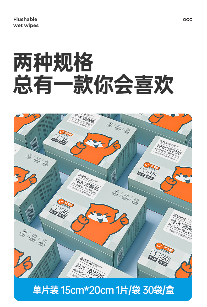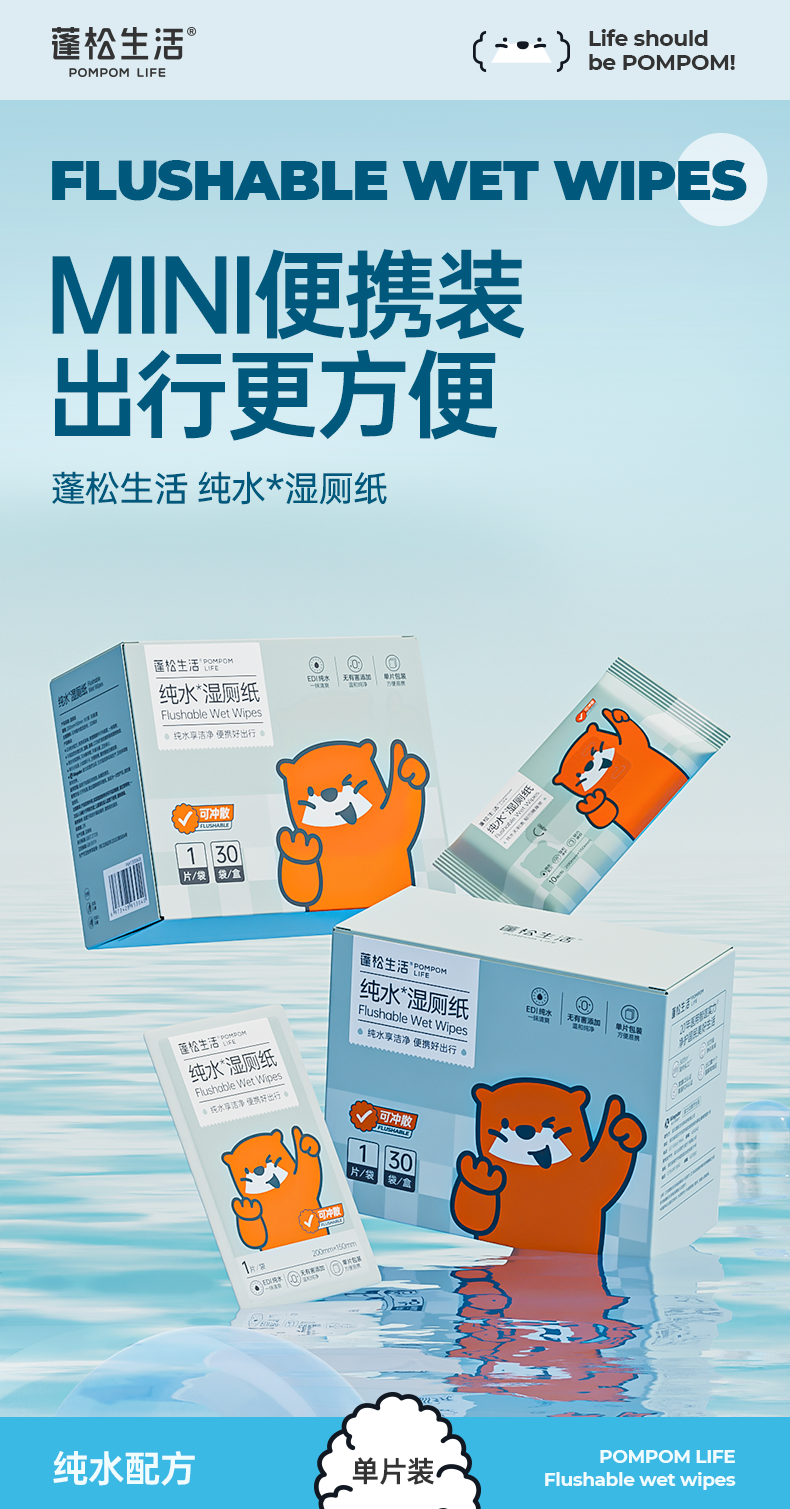 蓬松生活纯水湿厕纸单片独立装10抽纸便携湿厕纸可冲散男女擦屁屁