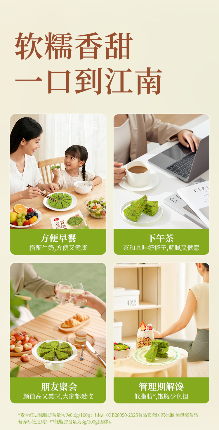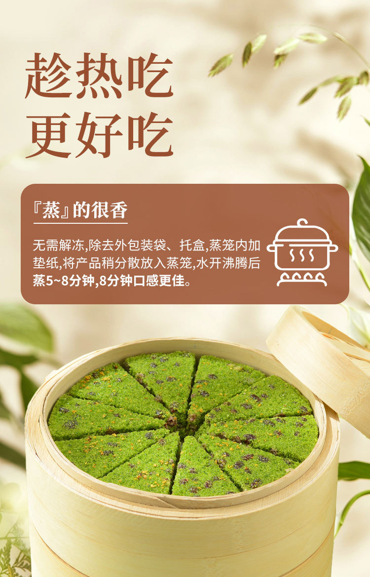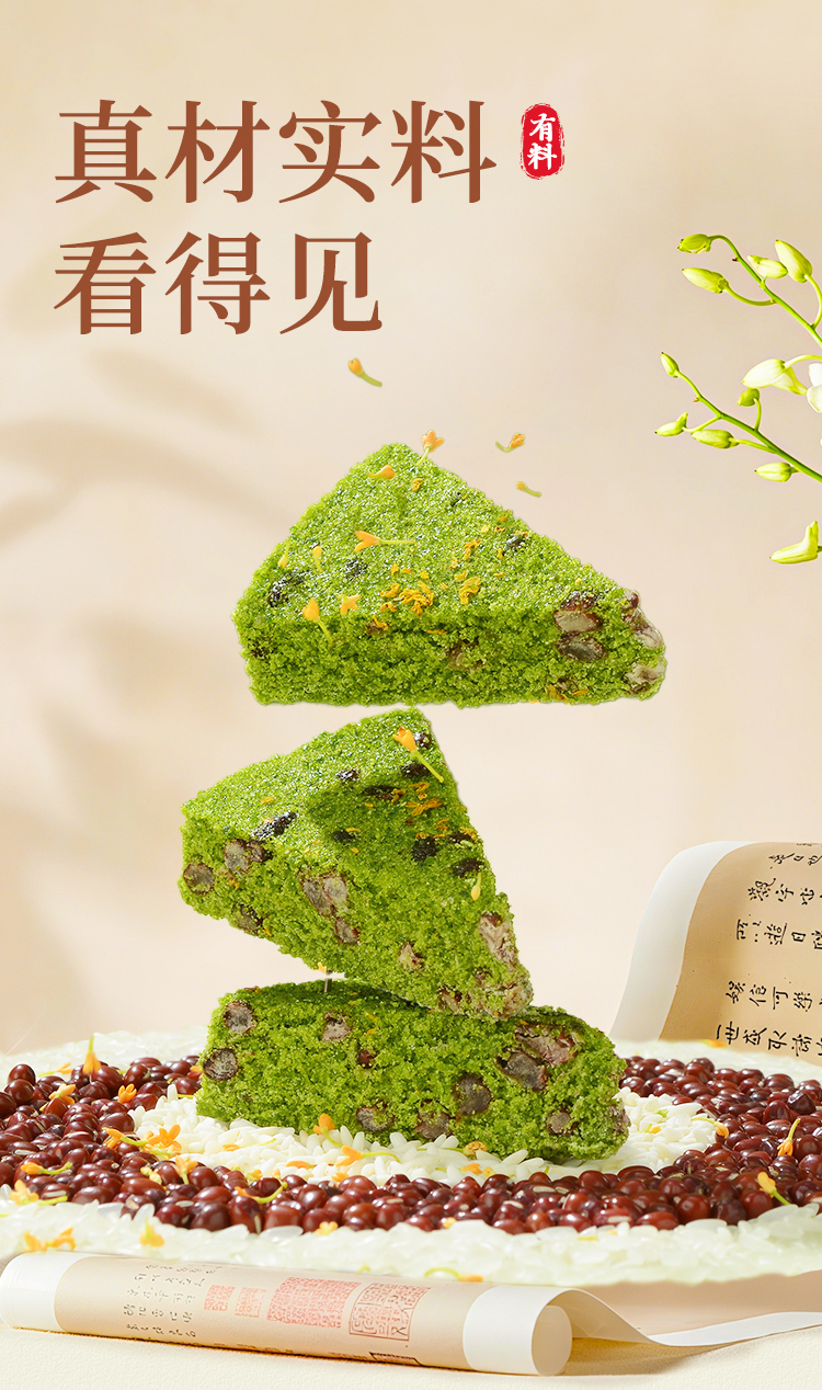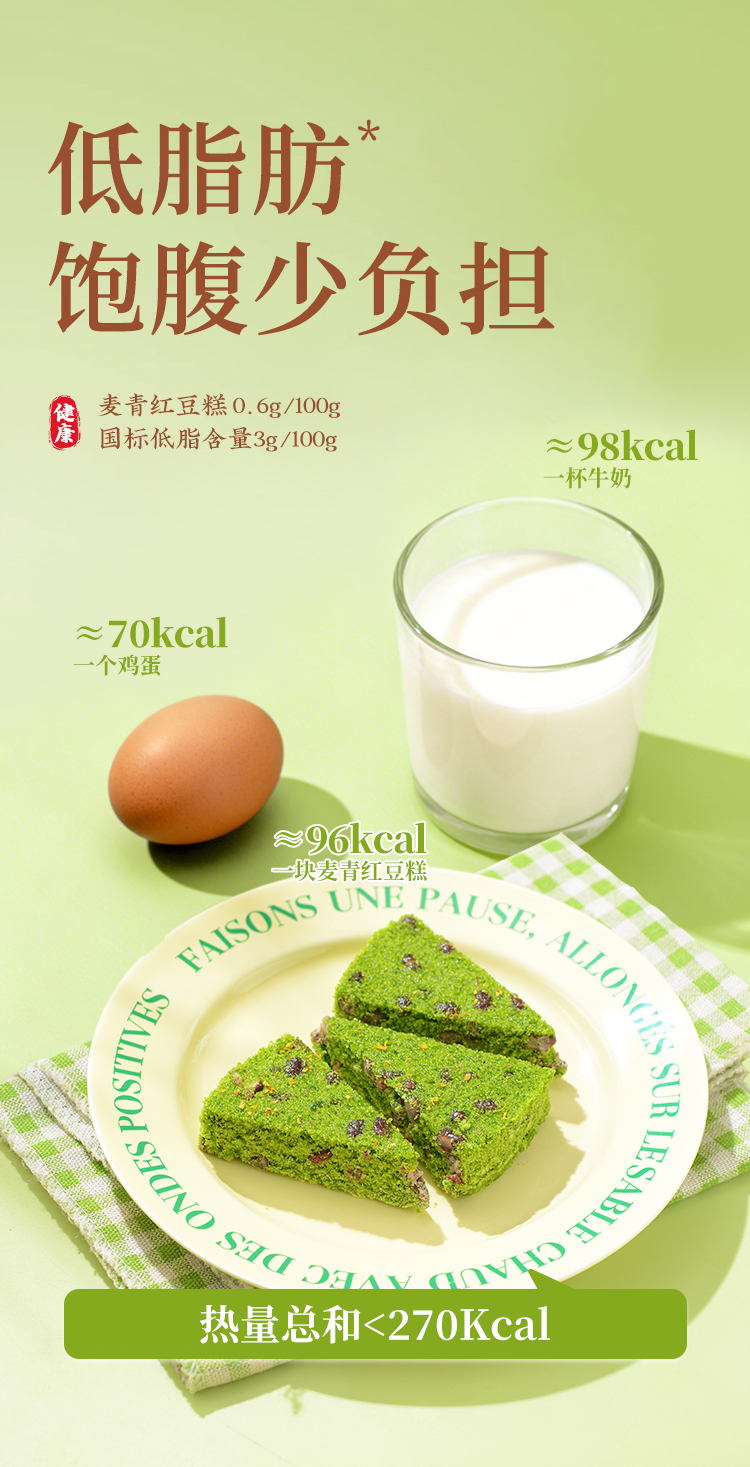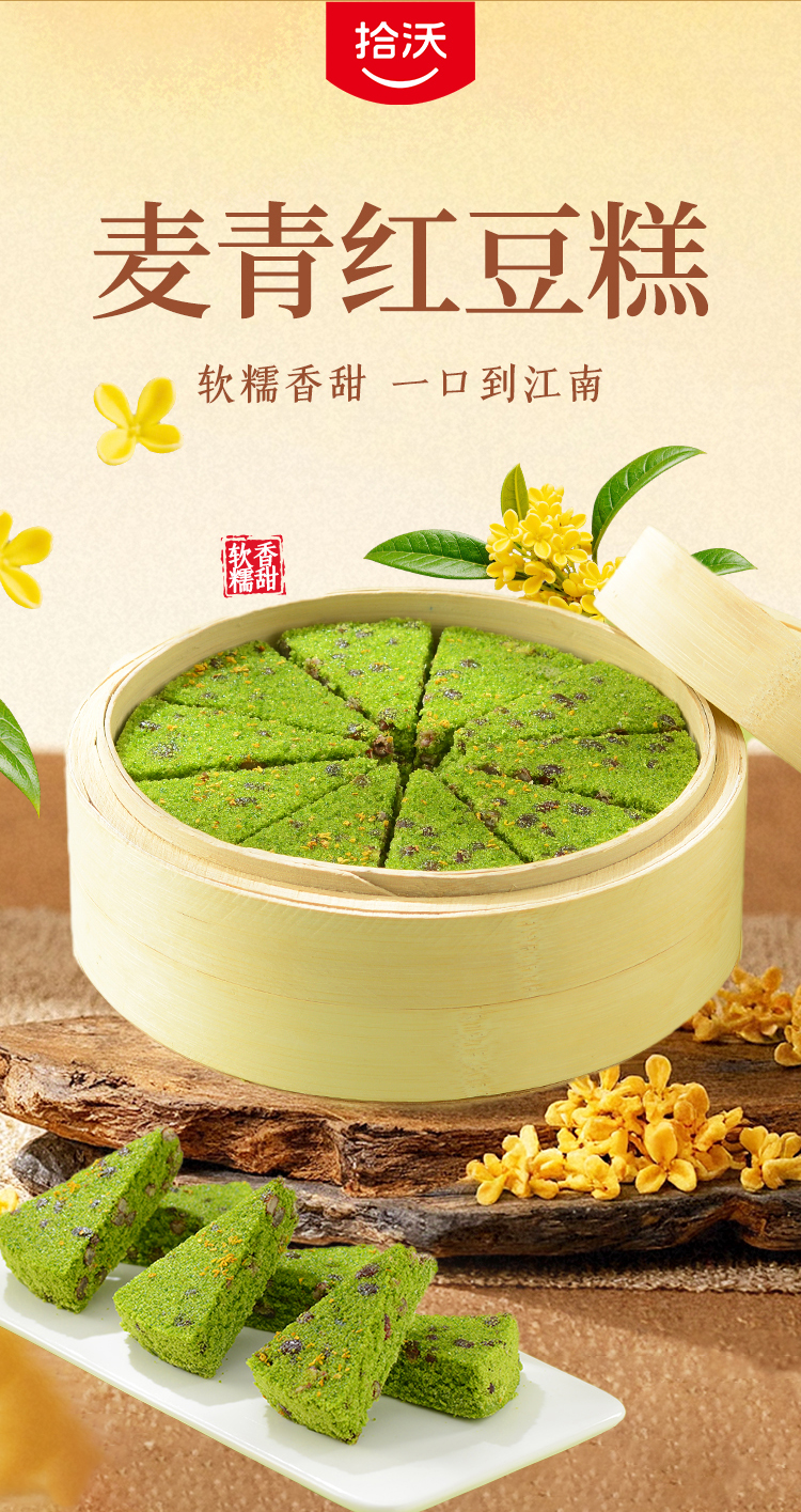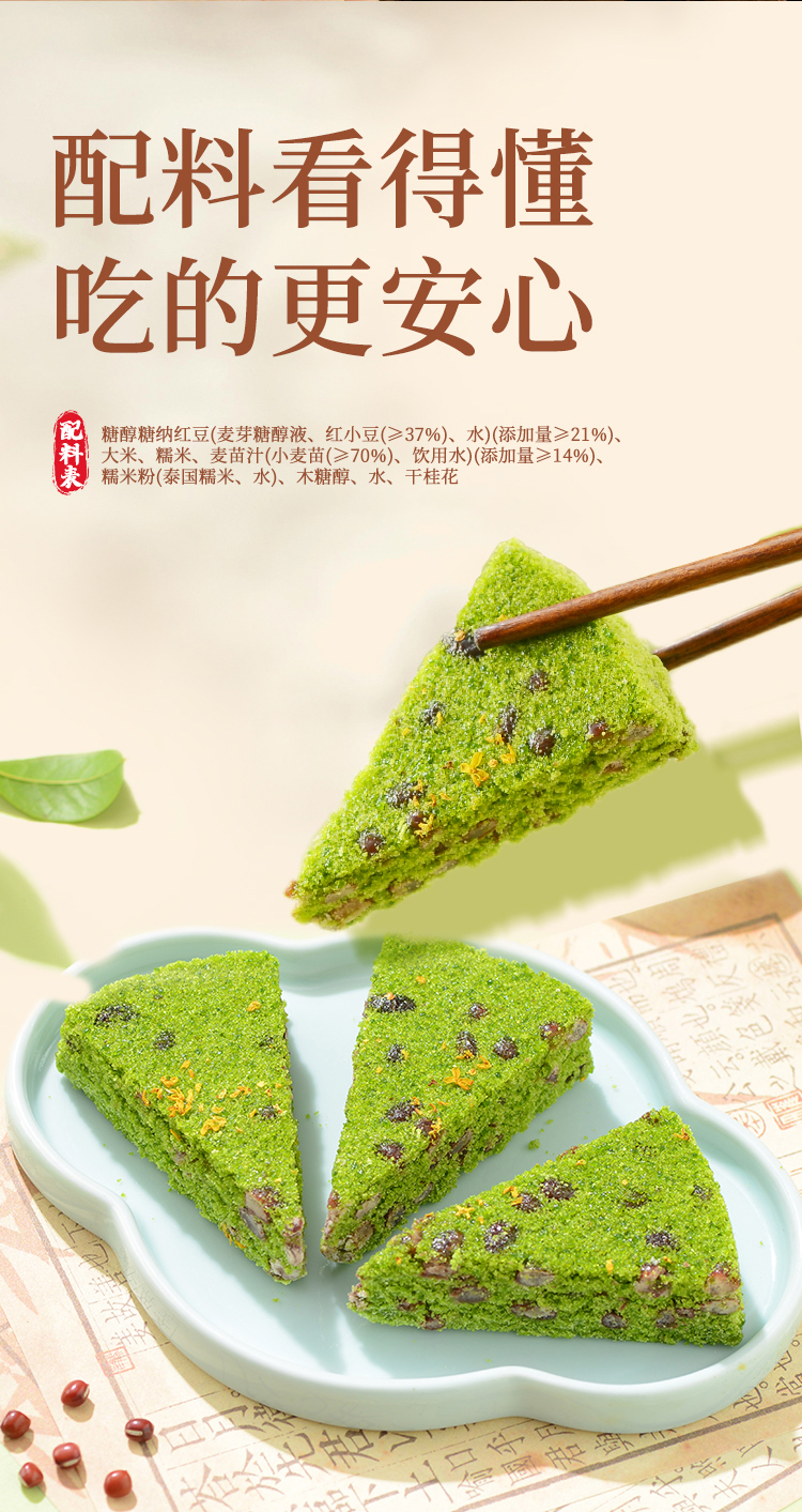 【顺丰冷冻】拾沃麦青红豆糕 低脂美食初春嫩麦苗榨汁入糕微甜不腻 软糯Q弹 2盒