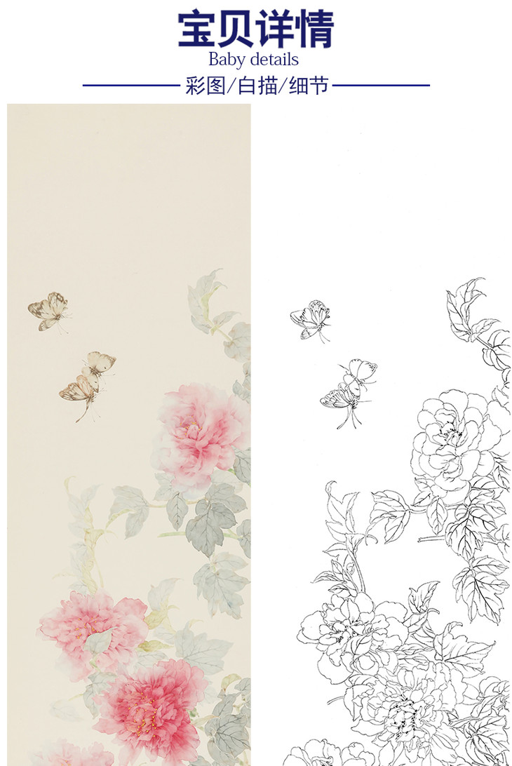 竖幅四尺六尺工笔花鸟白描底稿-牡丹-A134