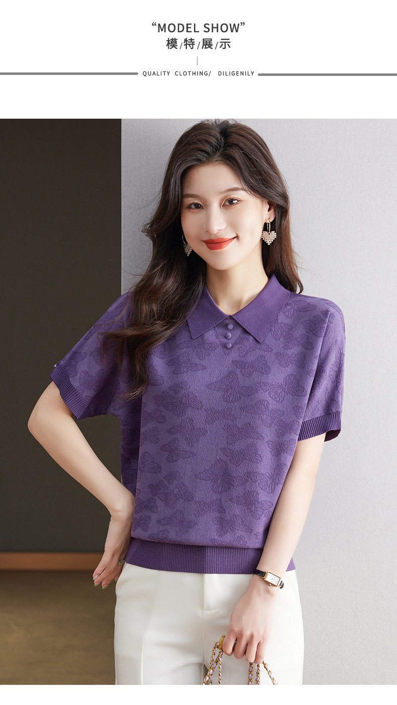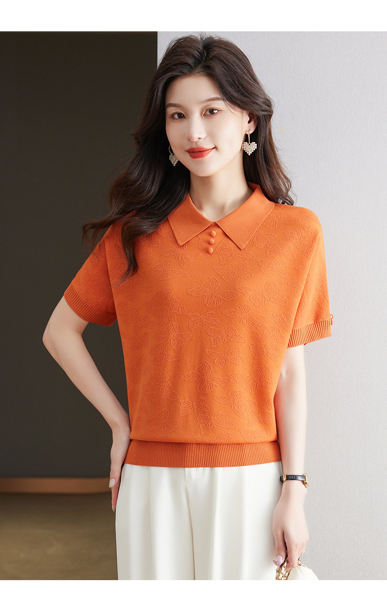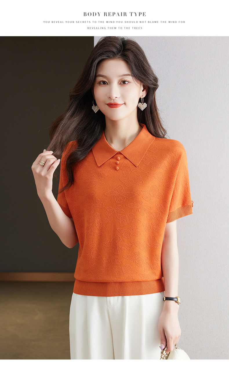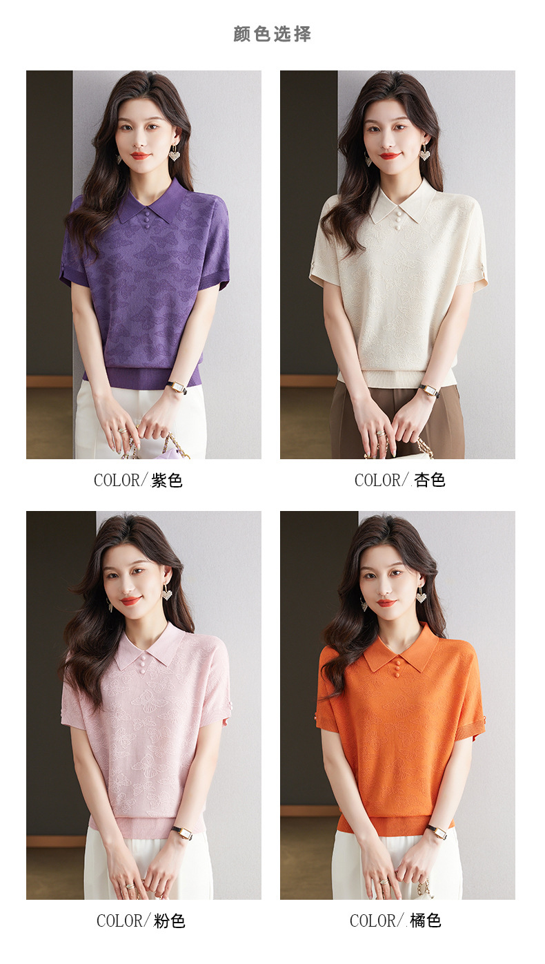 CC 10-5320薄款冰丝翻领纯色休闲显瘦T恤衫上衣