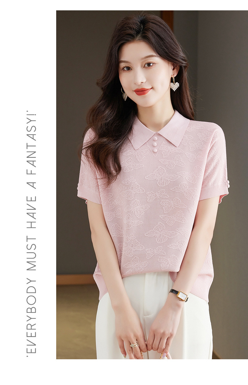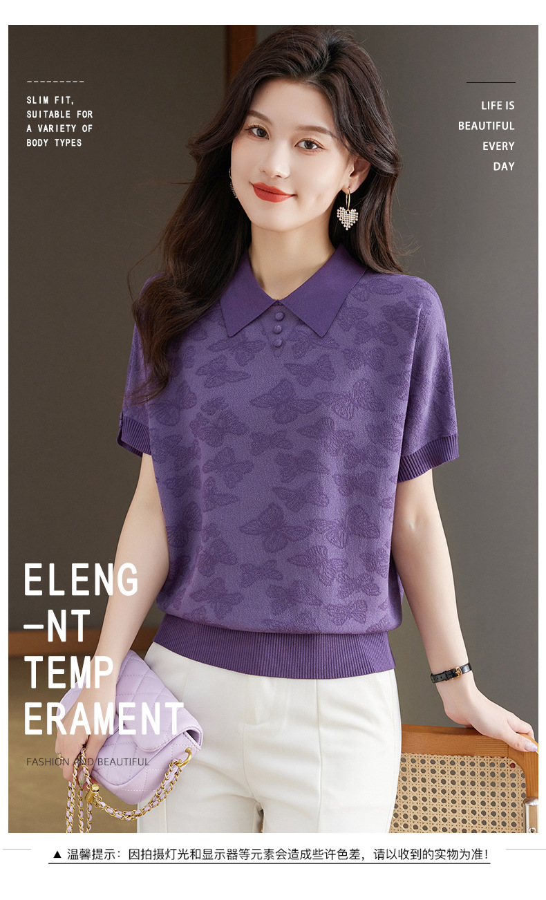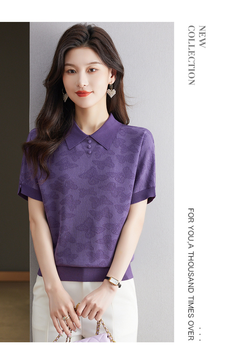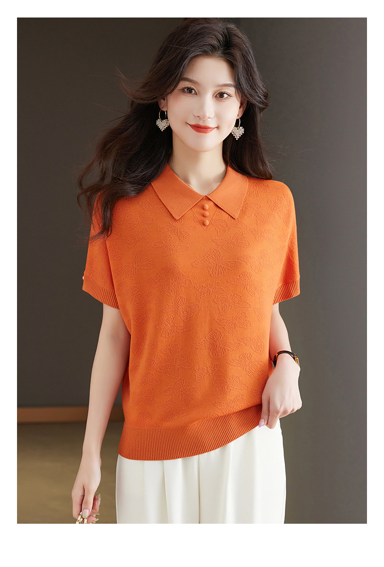 CC 10-5320薄款冰丝翻领纯色休闲显瘦T恤衫上衣