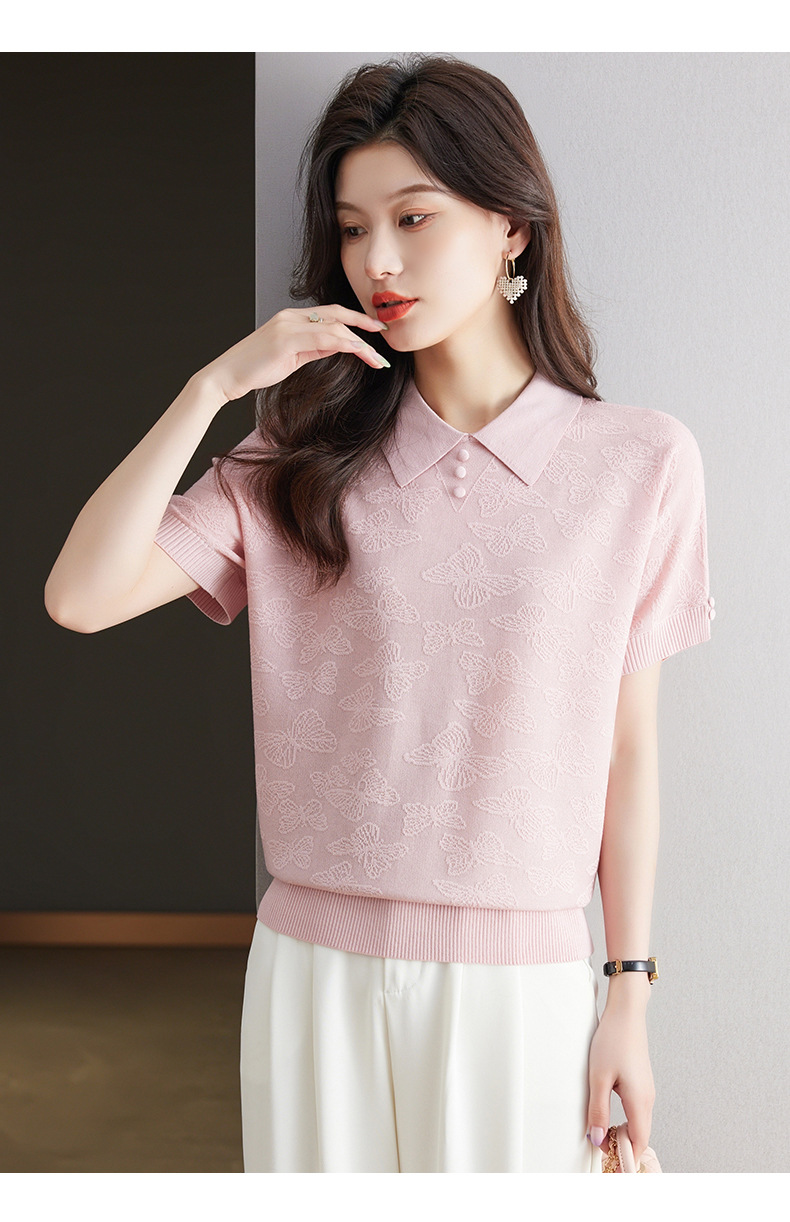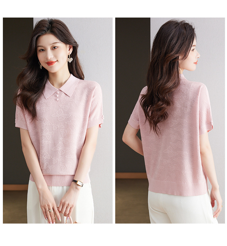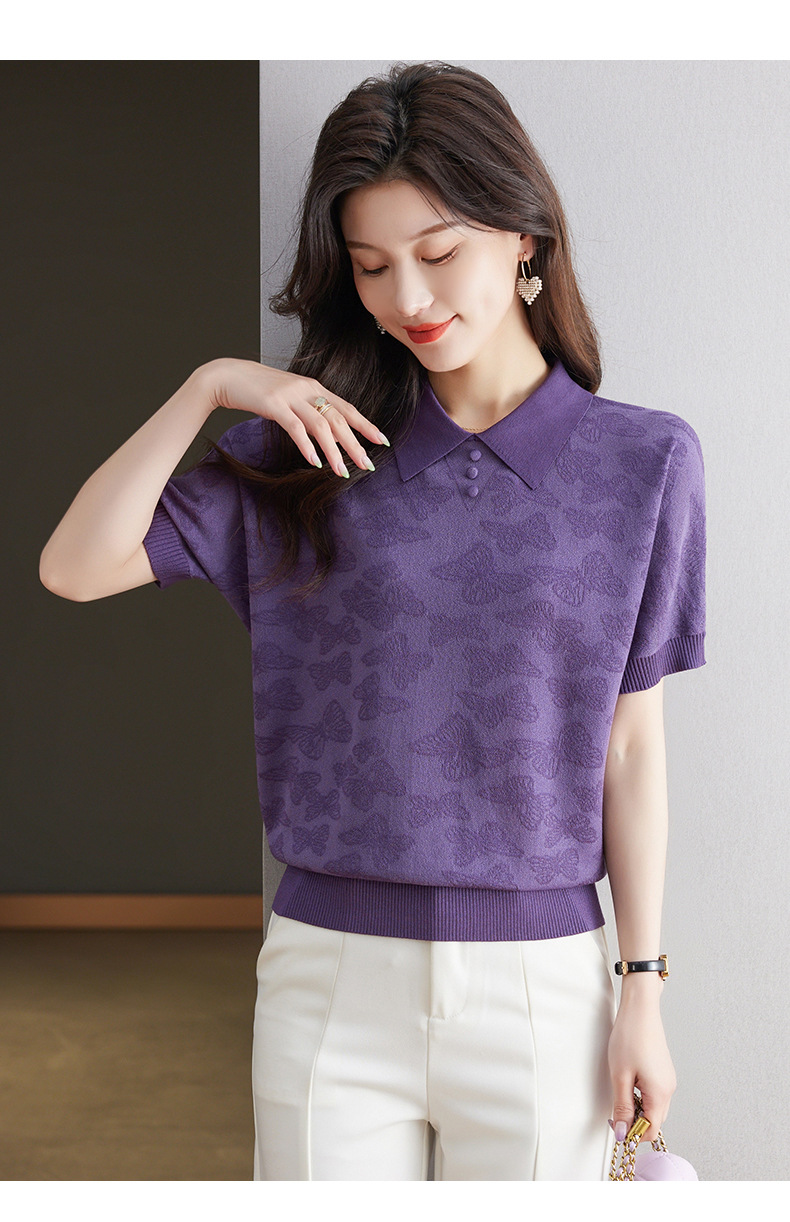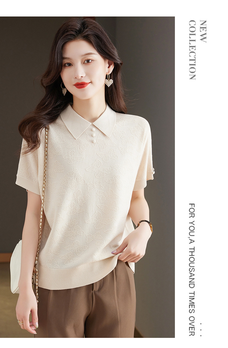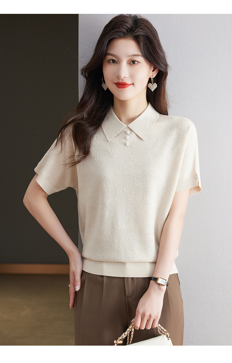 CC 10-5320薄款冰丝翻领纯色休闲显瘦T恤衫上衣