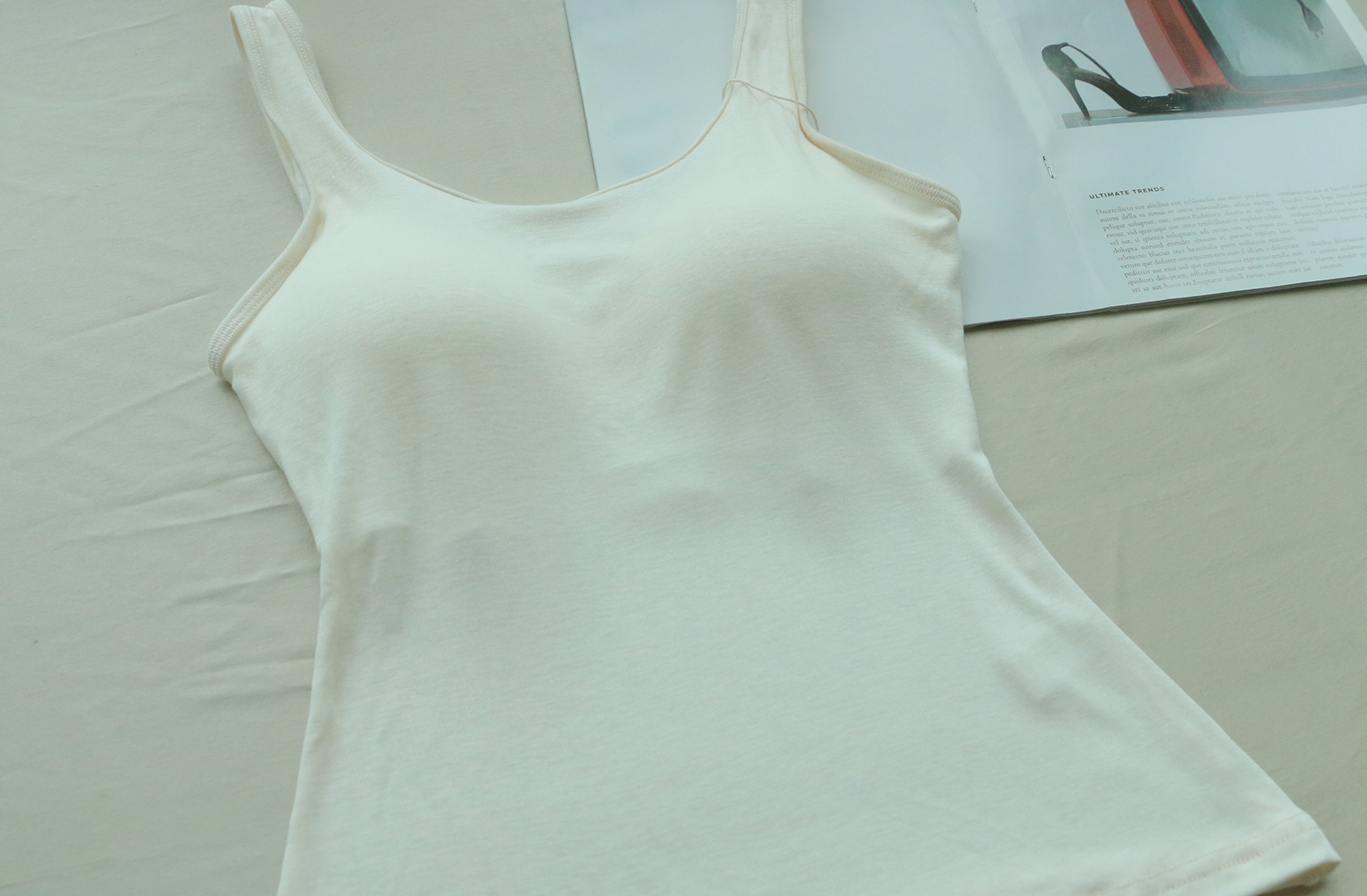 一件是含桑蚕丝成分的背心款,这款软软的,轻薄清爽,chao好穿。奶白色会有一点点透,建议这件外搭毛衣,细软针织,然后贴身穿。亲肤感非常好。