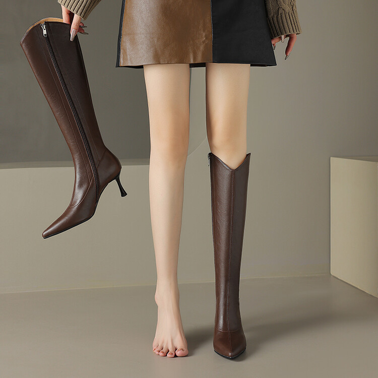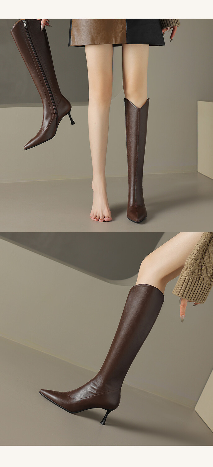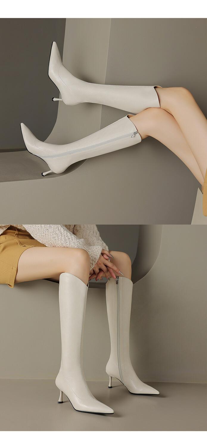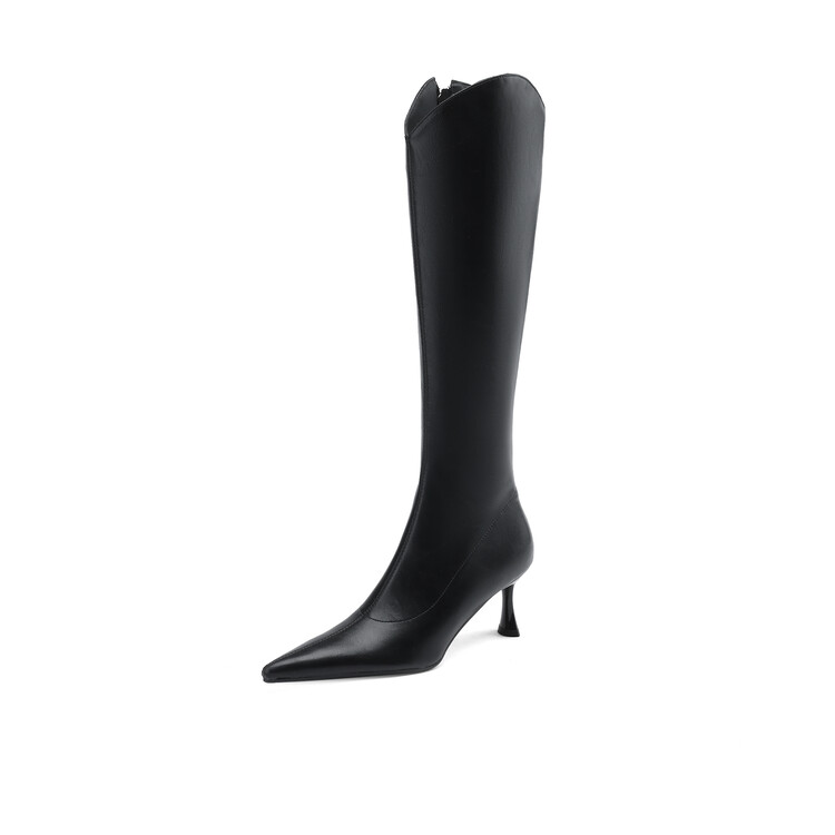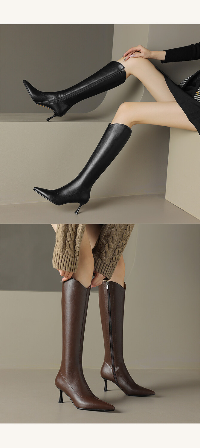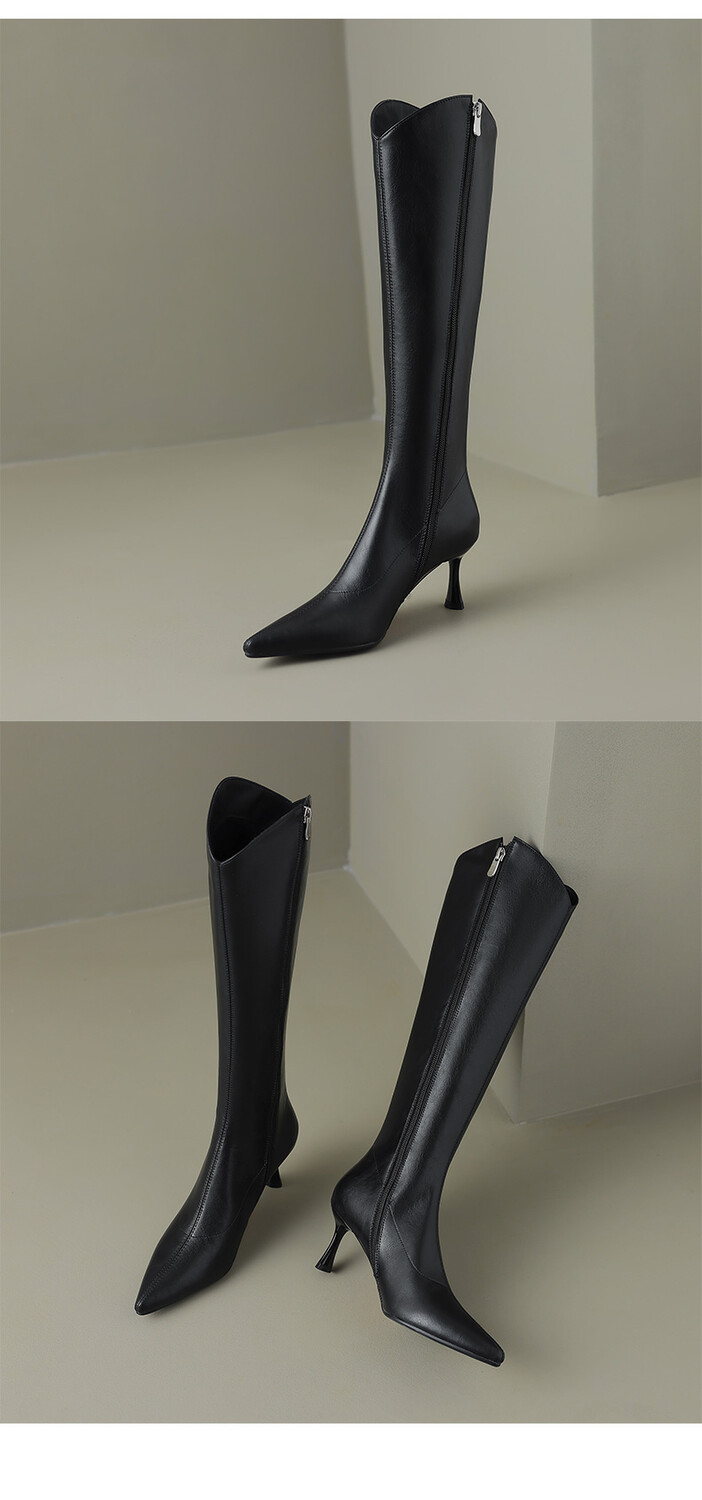 【预售7天】气质细跟英伦高跟瘦瘦靴新款显瘦尖头高筒v口长靴KLLN&kl2157