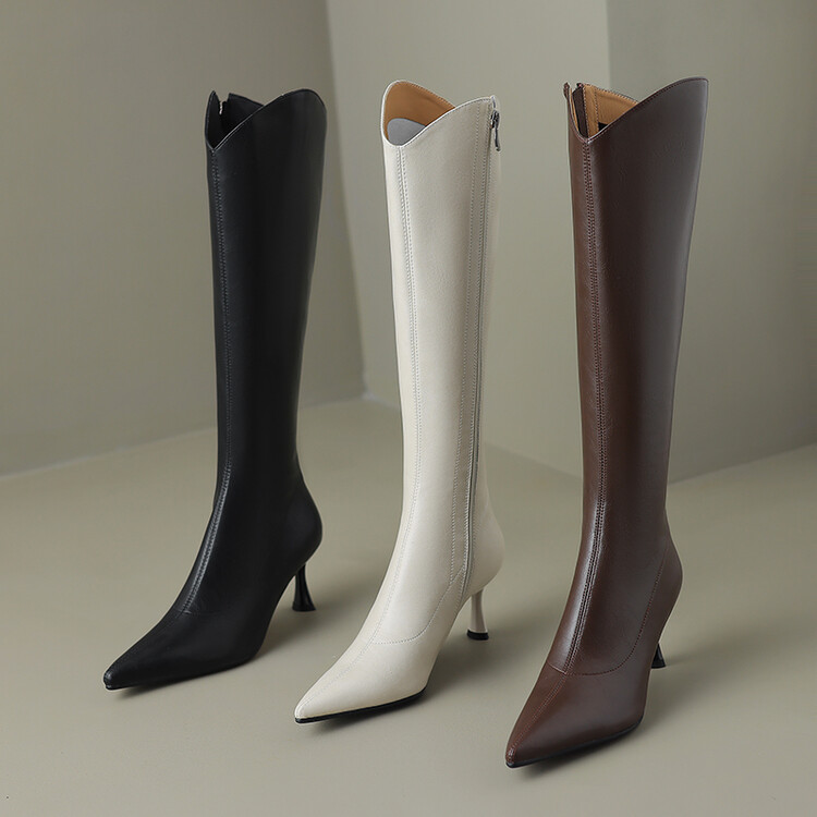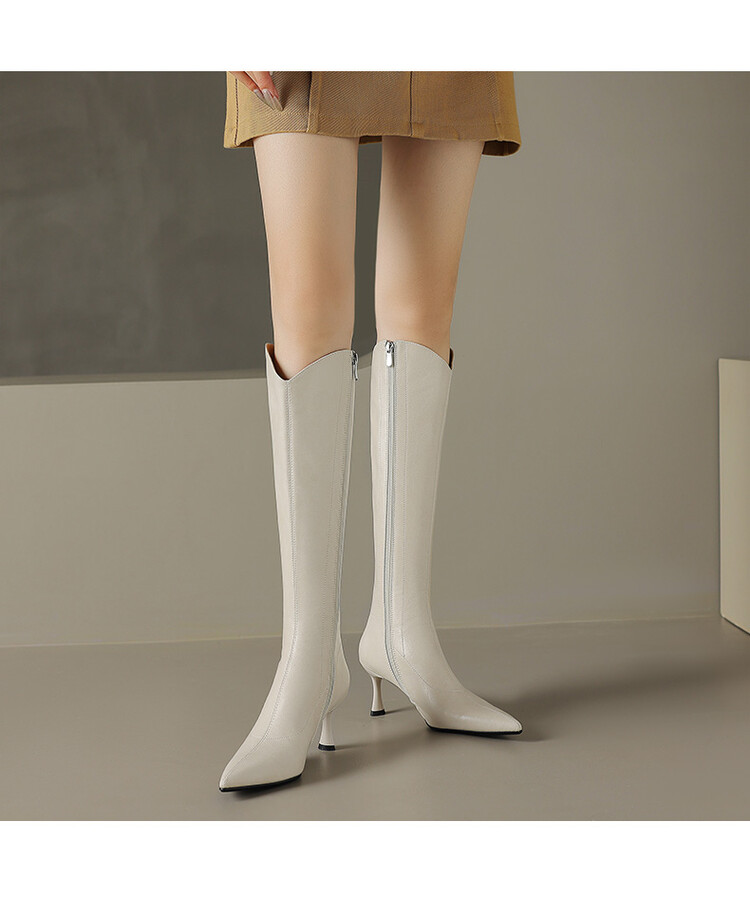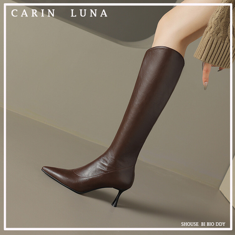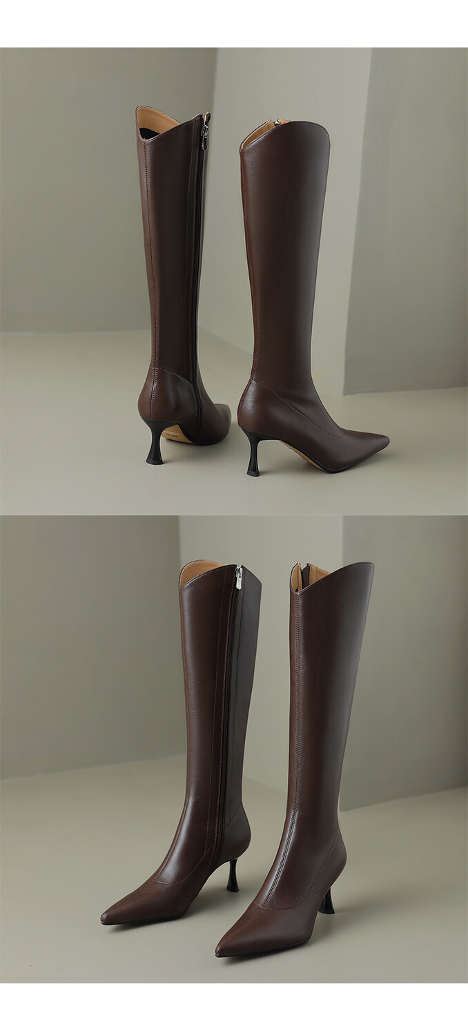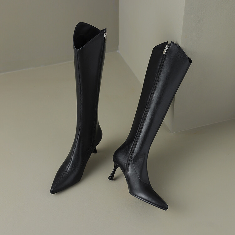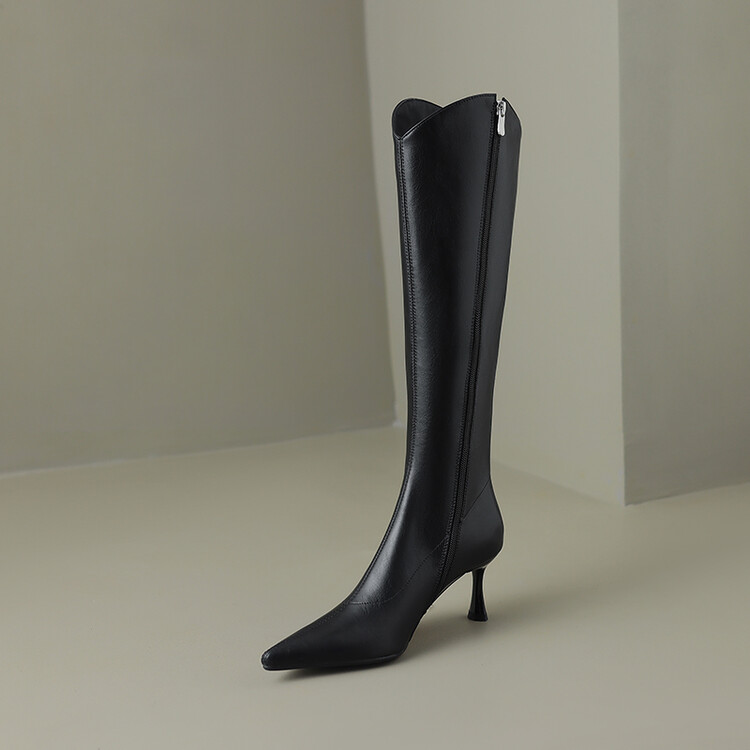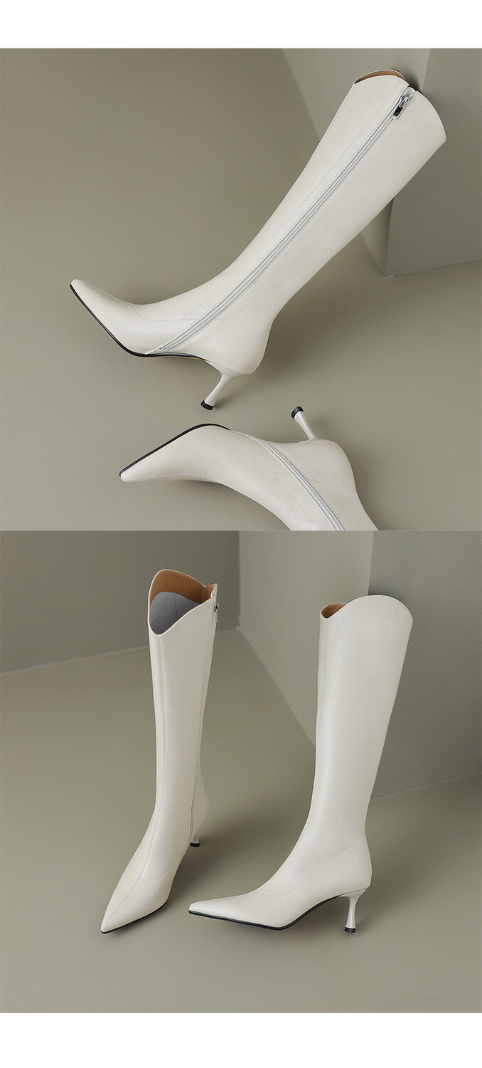 【预售7天】气质细跟英伦高跟瘦瘦靴新款显瘦尖头高筒v口长靴KLLN&kl2157