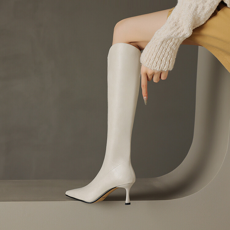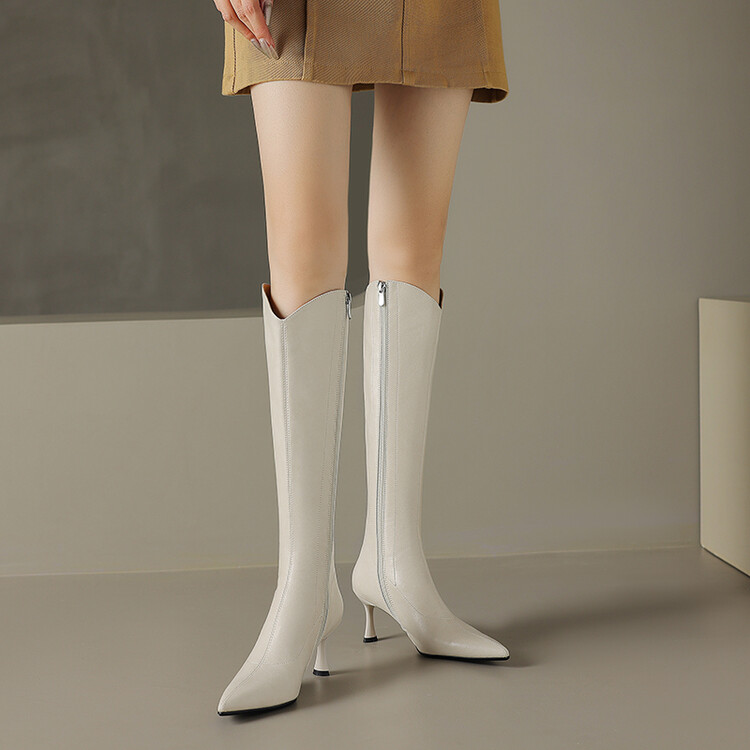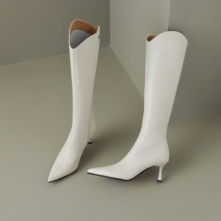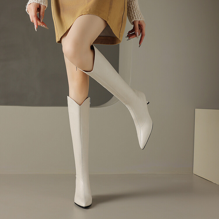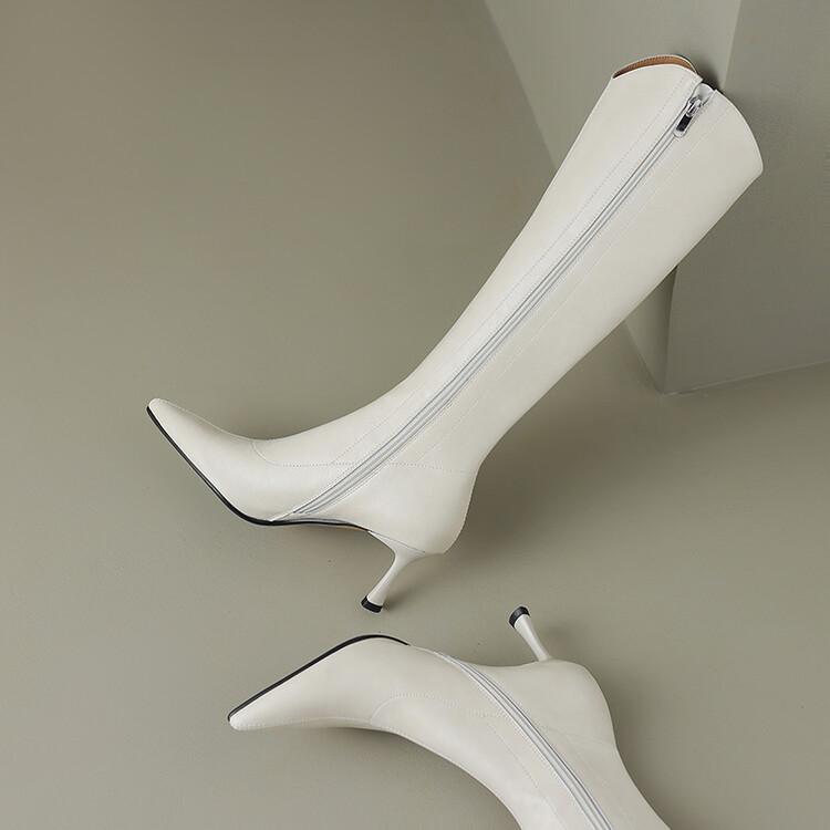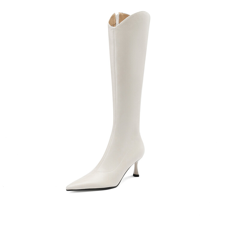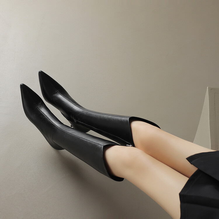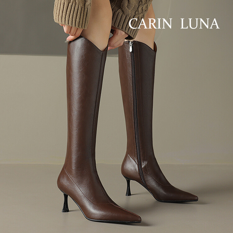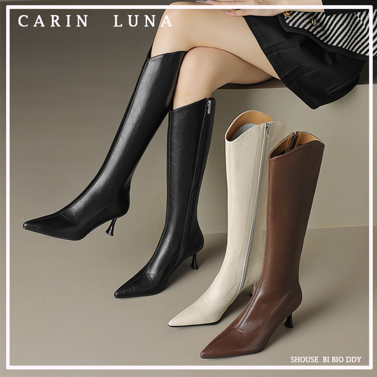 【预售7天】气质细跟英伦高跟瘦瘦靴新款显瘦尖头高筒v口长靴KLLN&kl2157