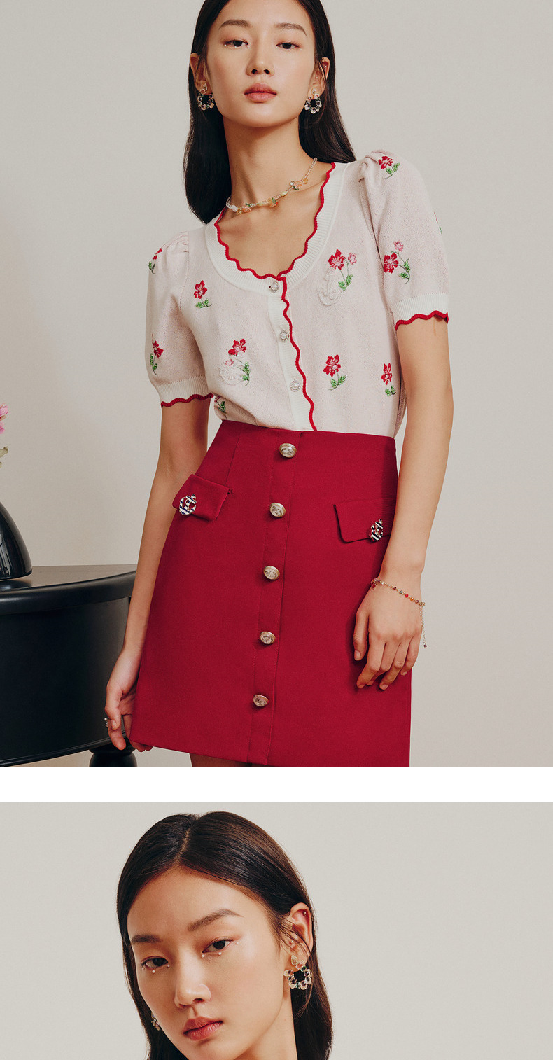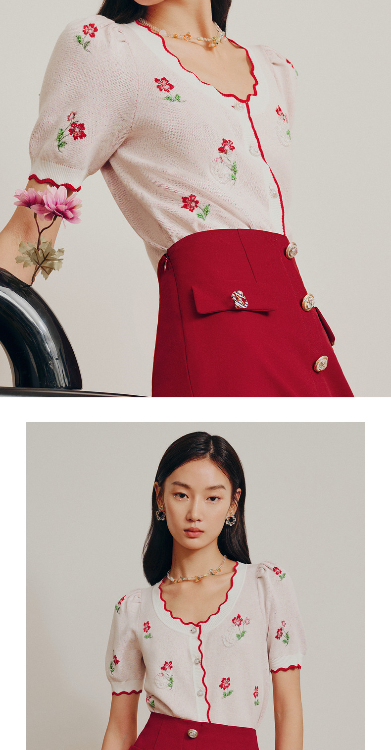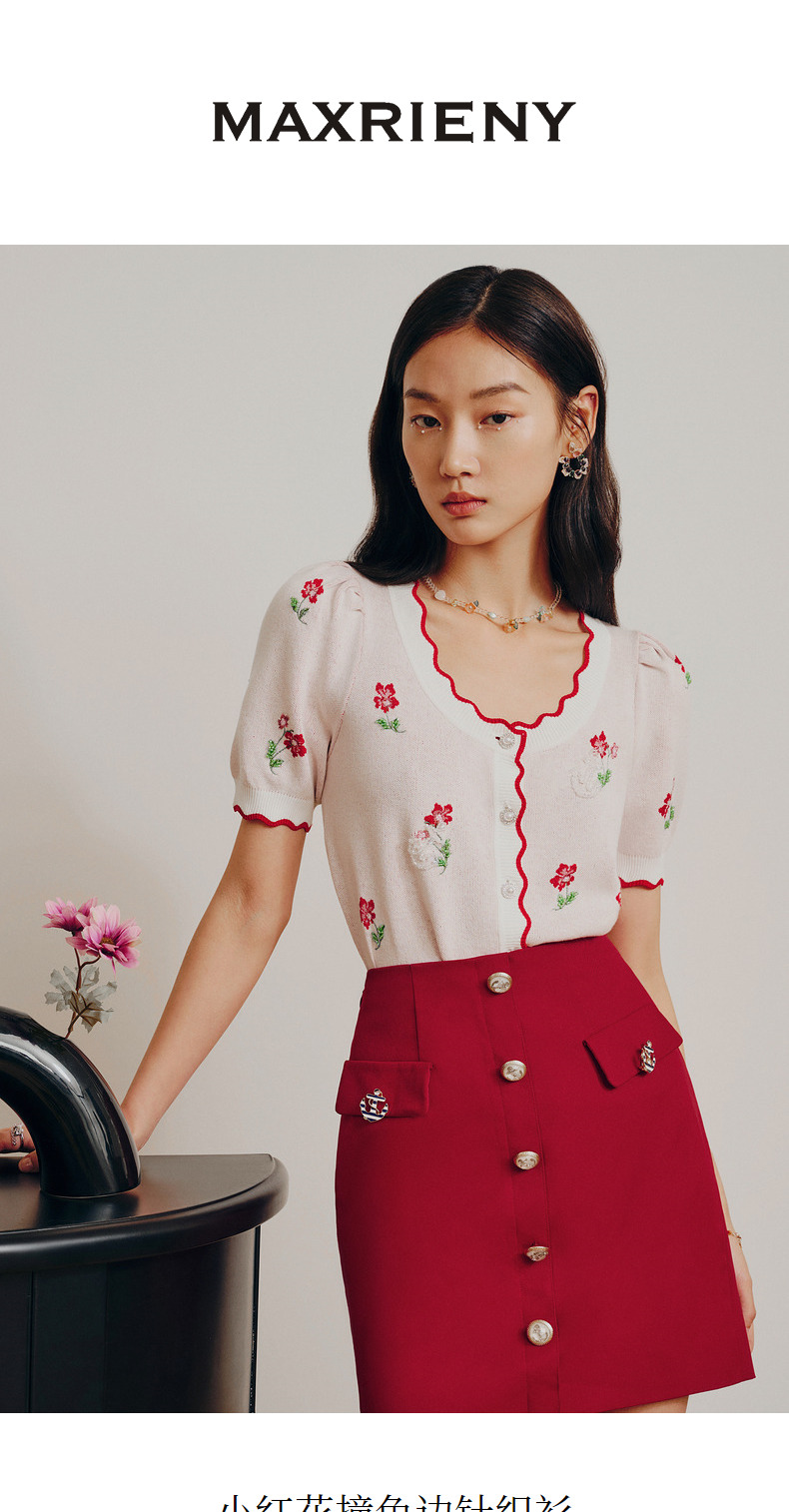 MAXRIENY小红花甜美针织衫开衫薄毛衫上衣(货号:MC88SW276)