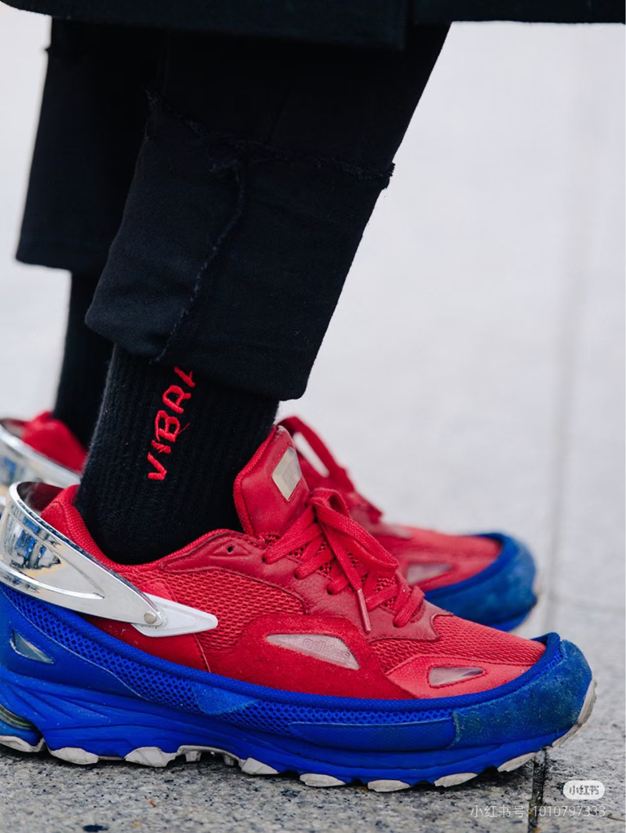 红蓝那个还是还是跟三条杠的合作款,后跟那个银色的是一个装饰件,可以转动也可以取下来