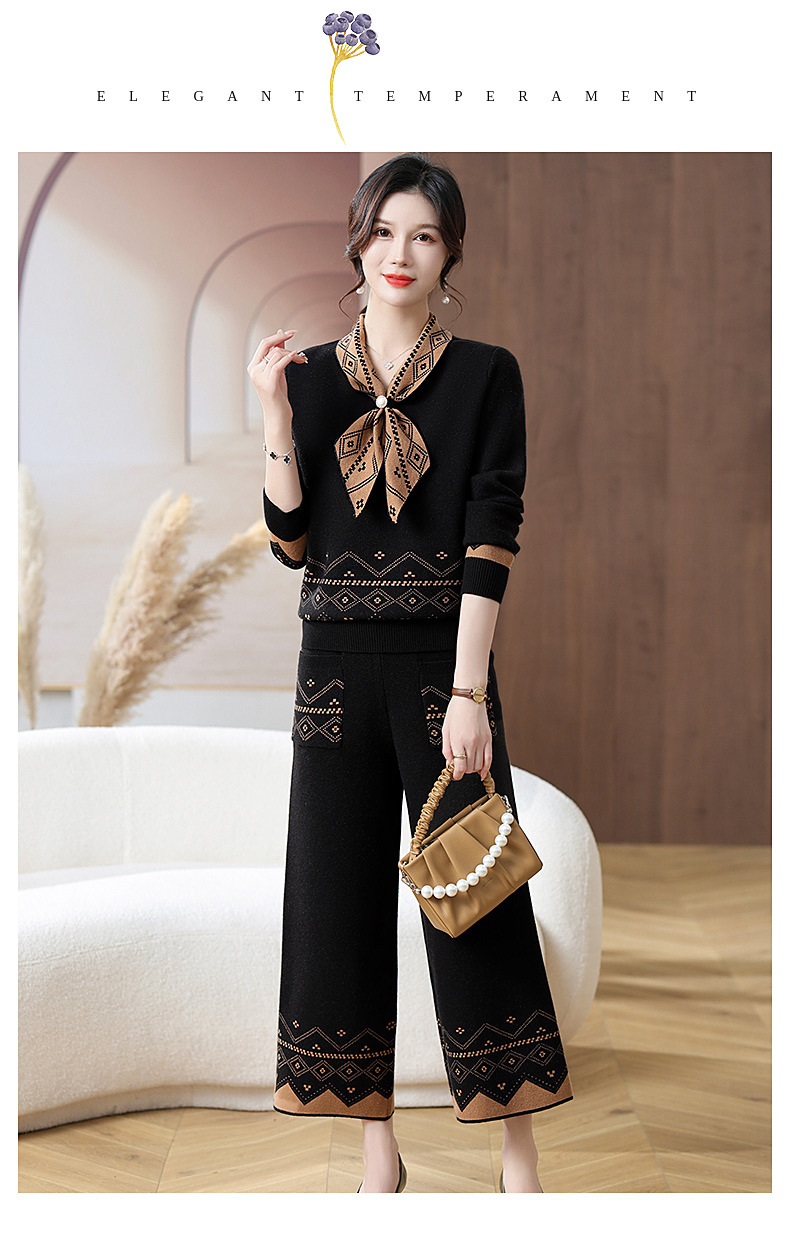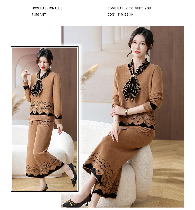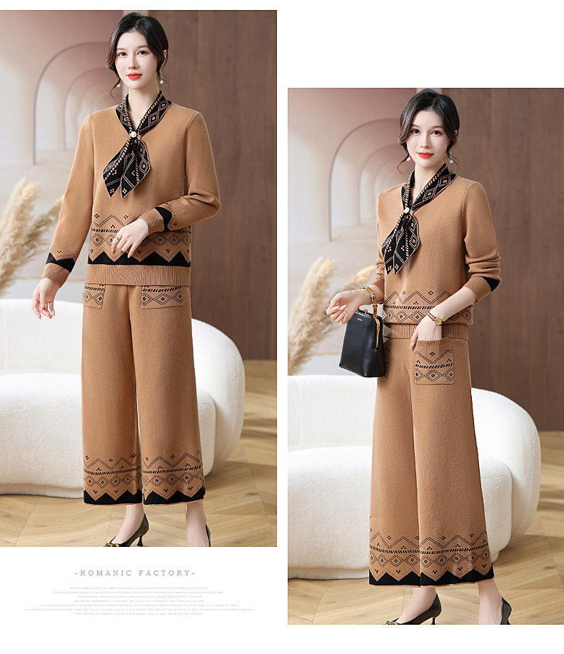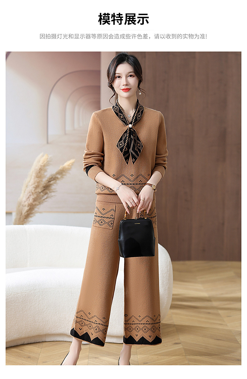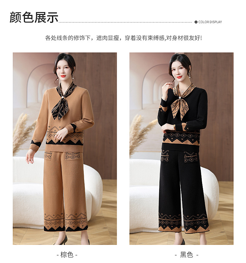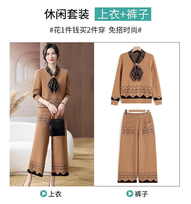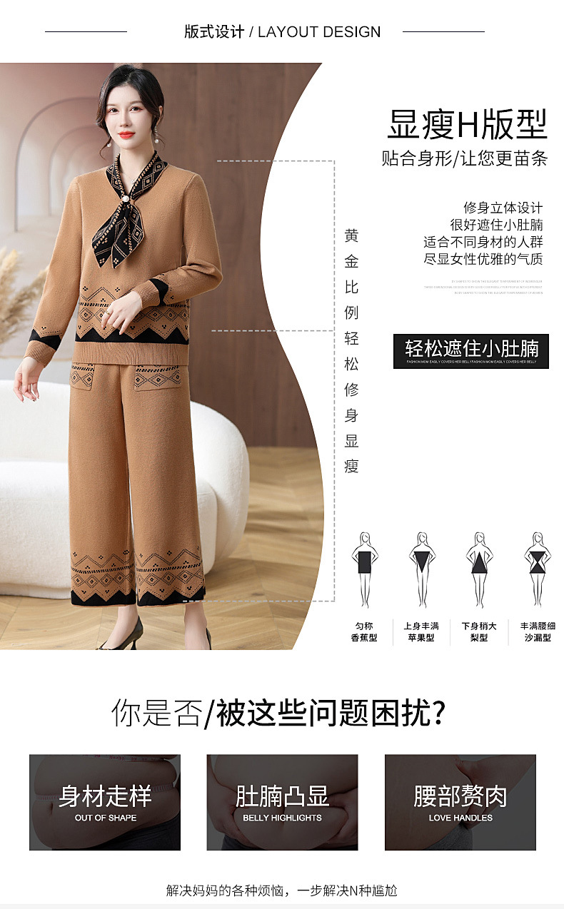 MF4h1710 中年妈妈秋装休闲针织套装高端两件套中老年女春秋长袖设计感上衣