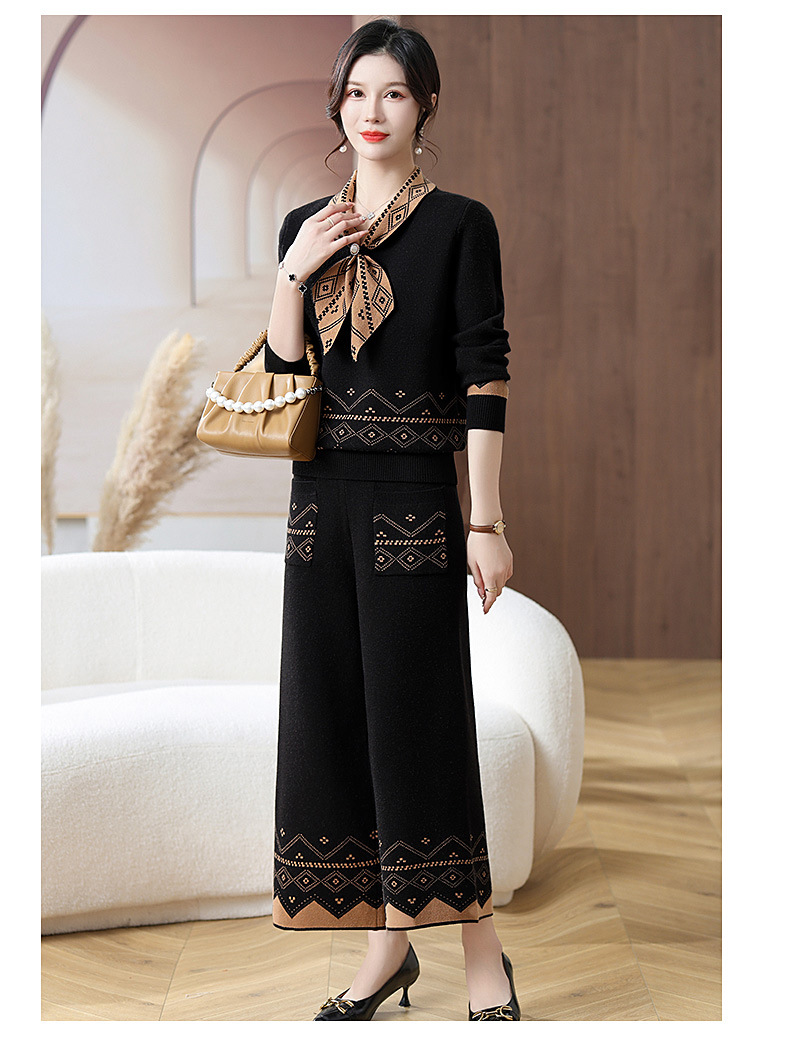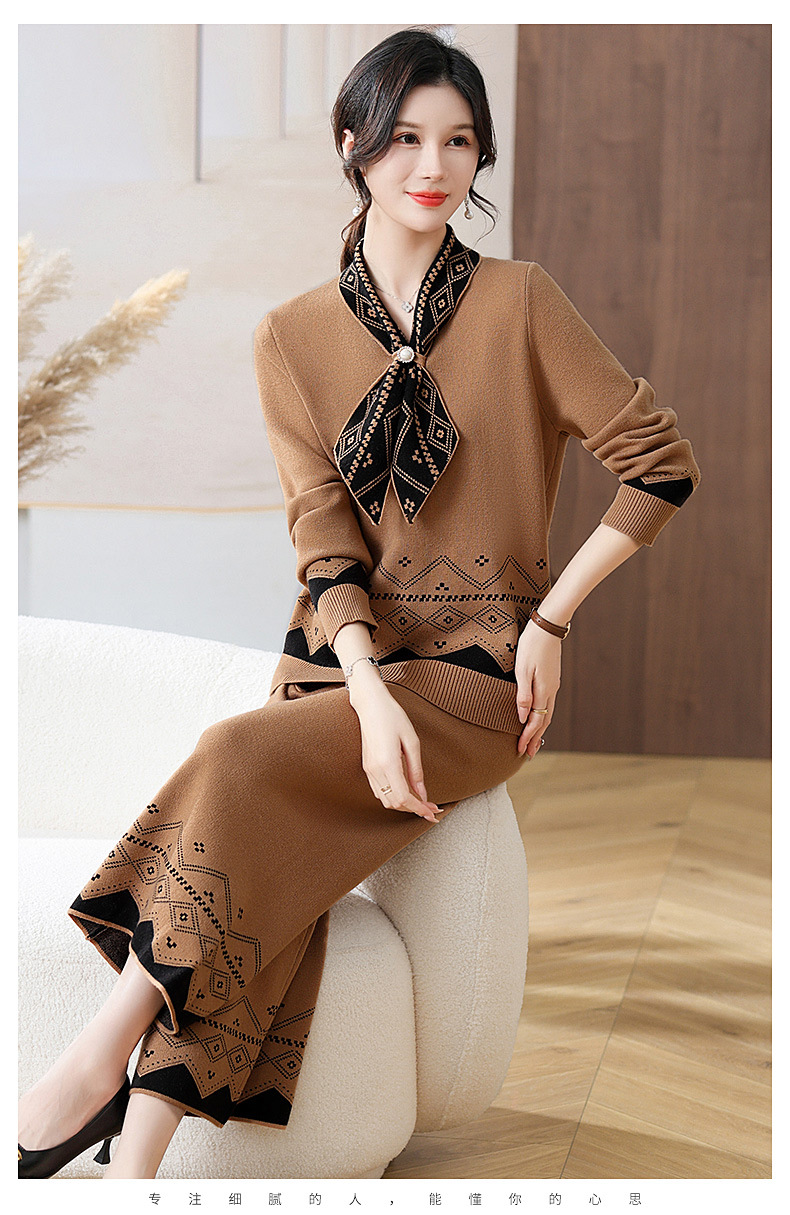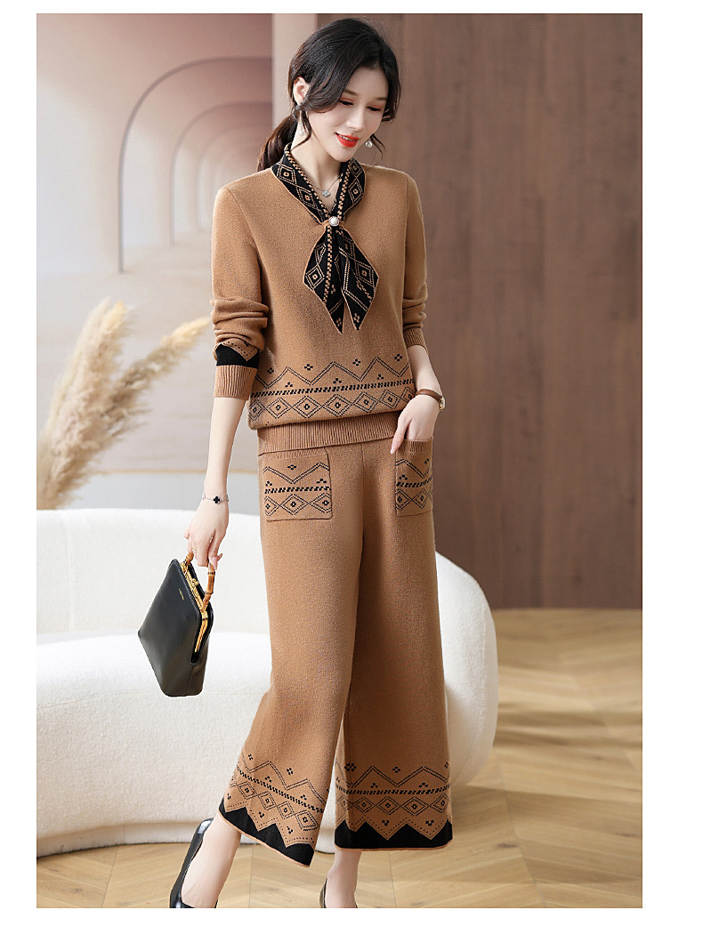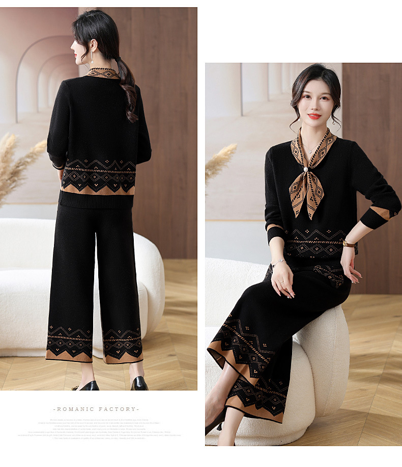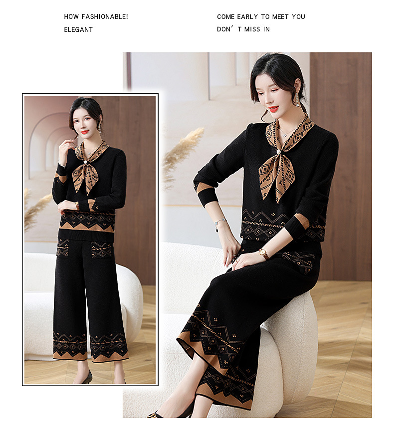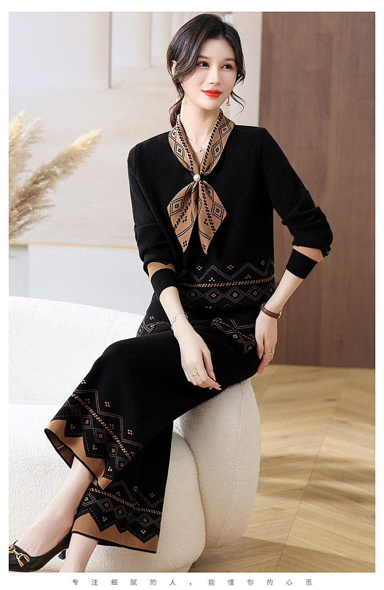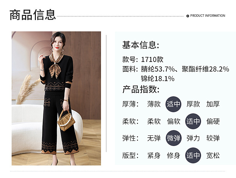 MF4h1710 中年妈妈秋装休闲针织套装高端两件套中老年女春秋长袖设计感上衣