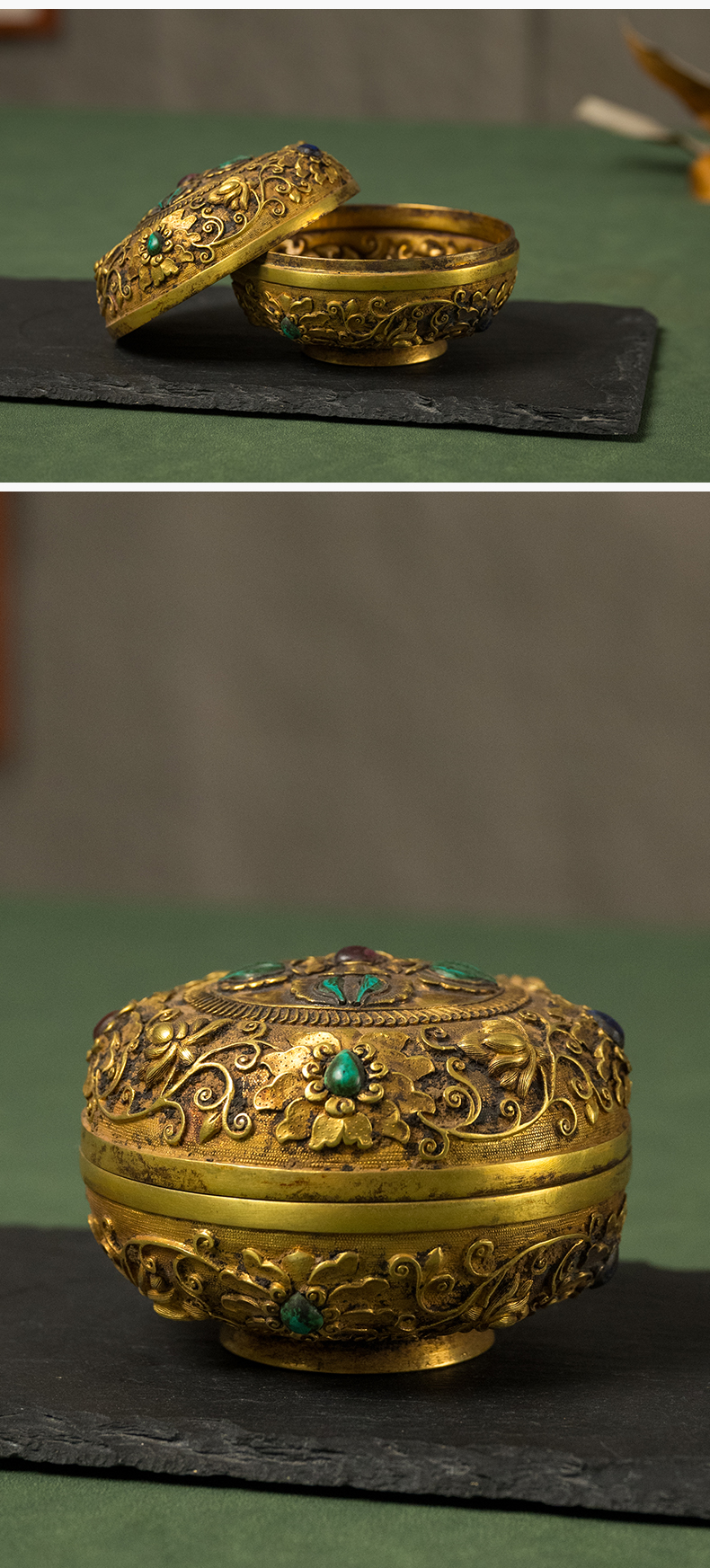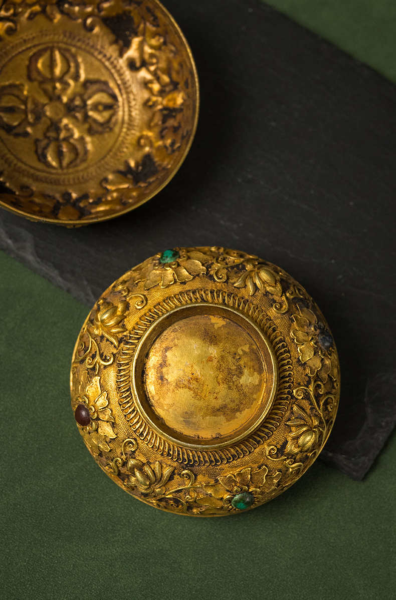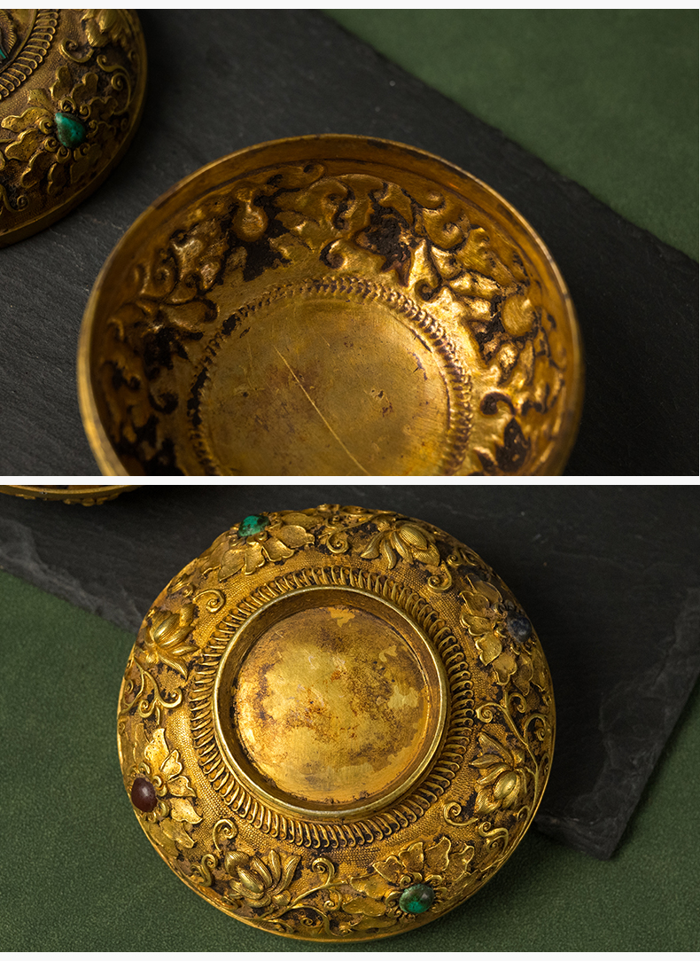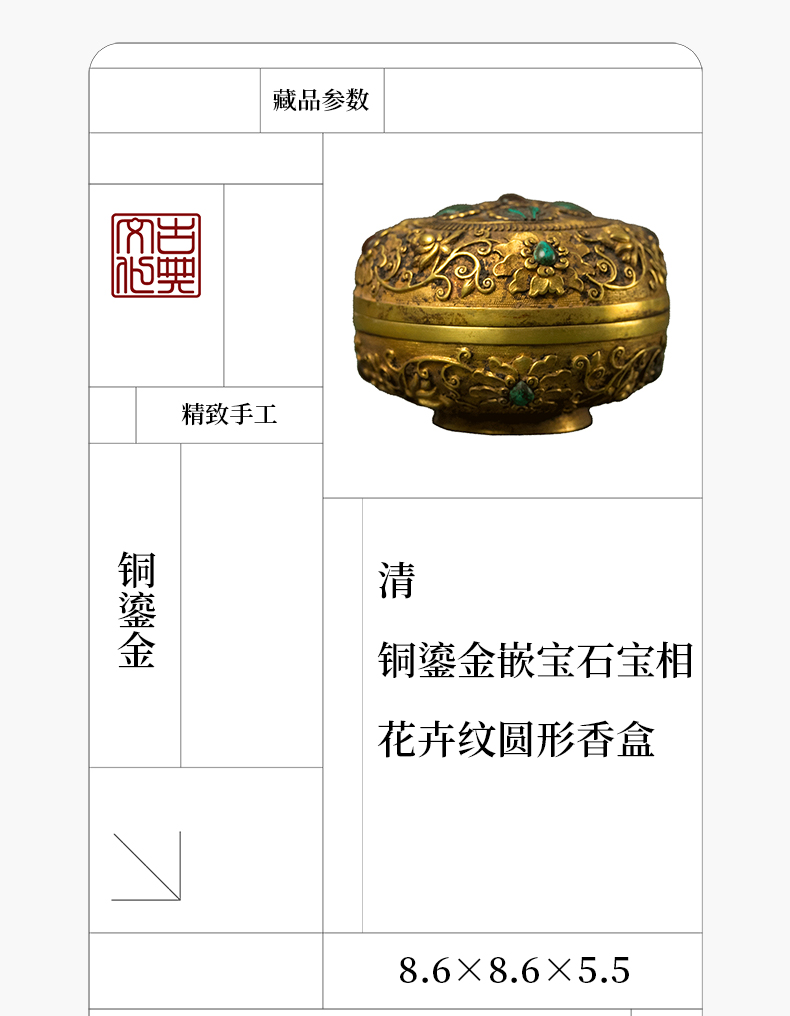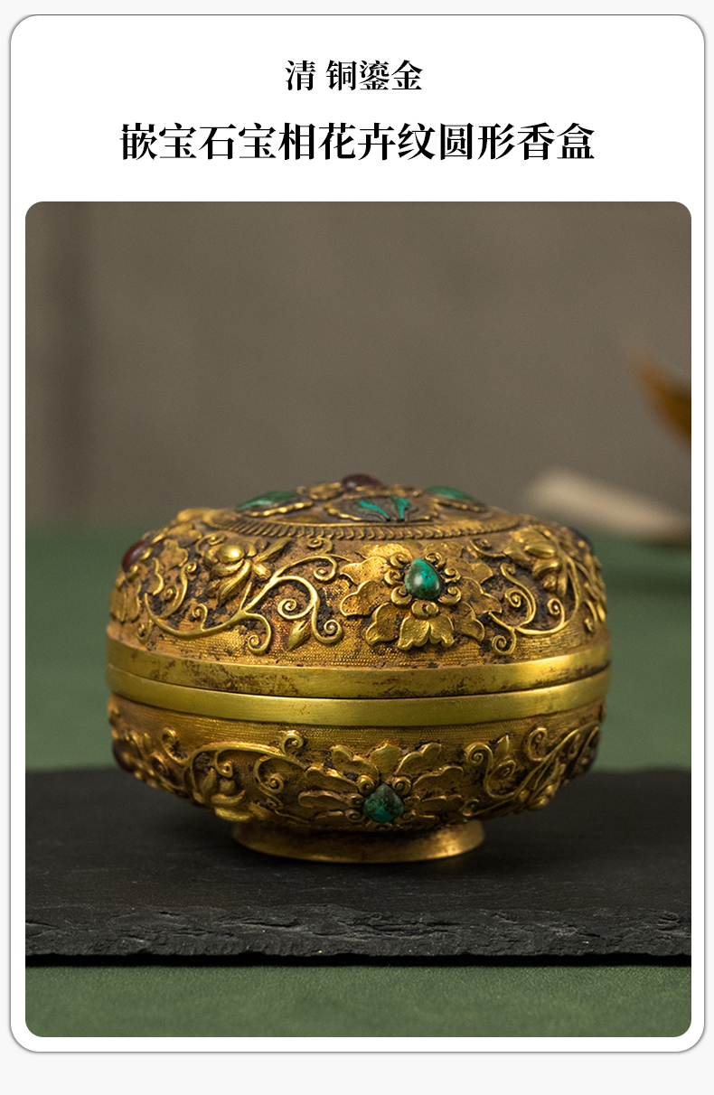 清 铜鎏金嵌宝石宝相花卉纹圆形香盒