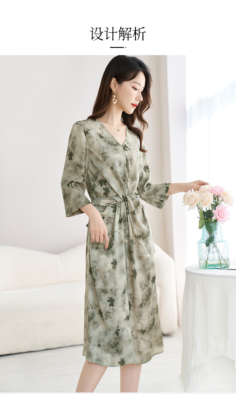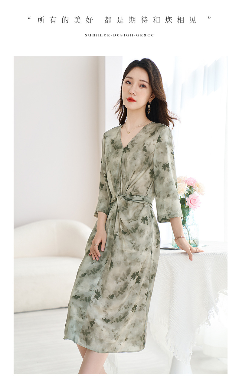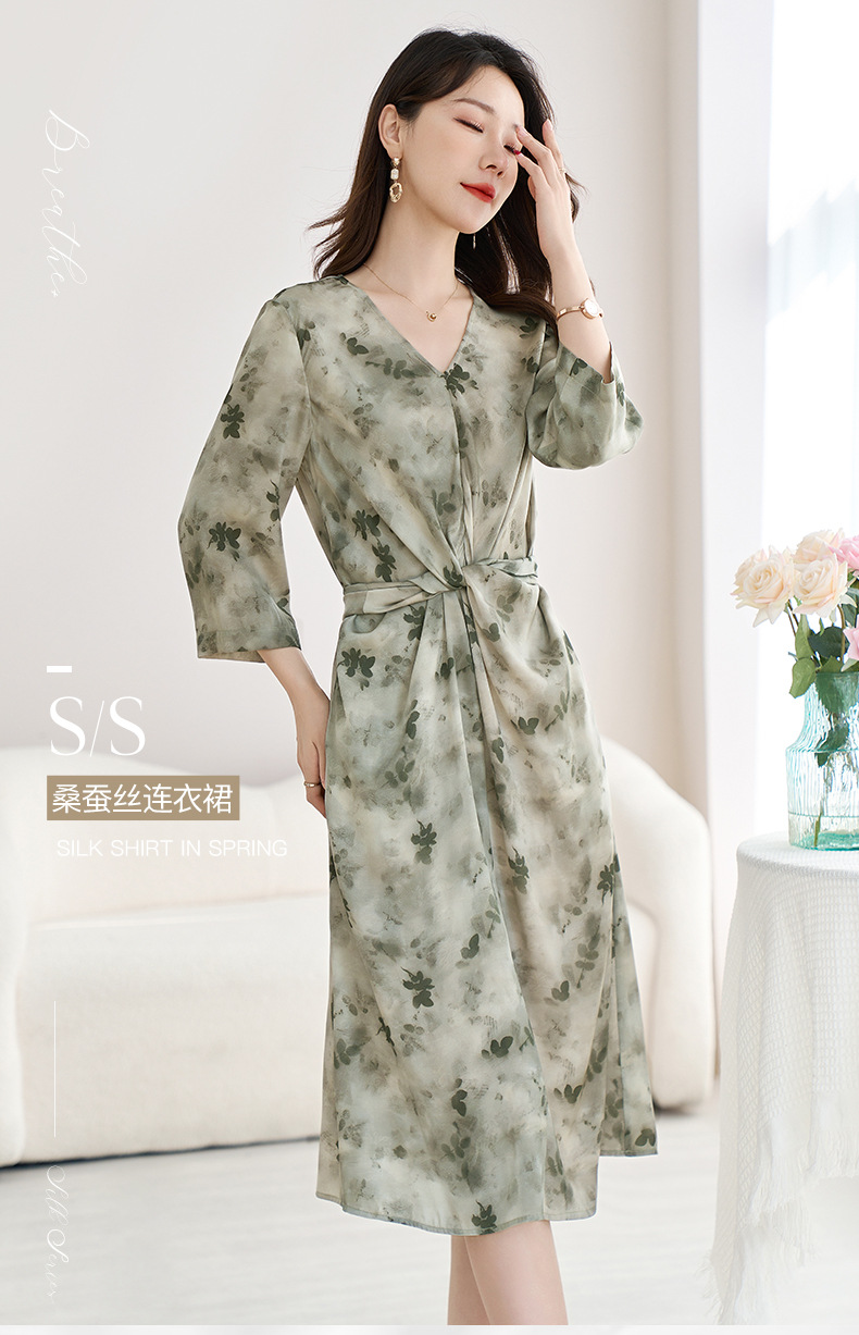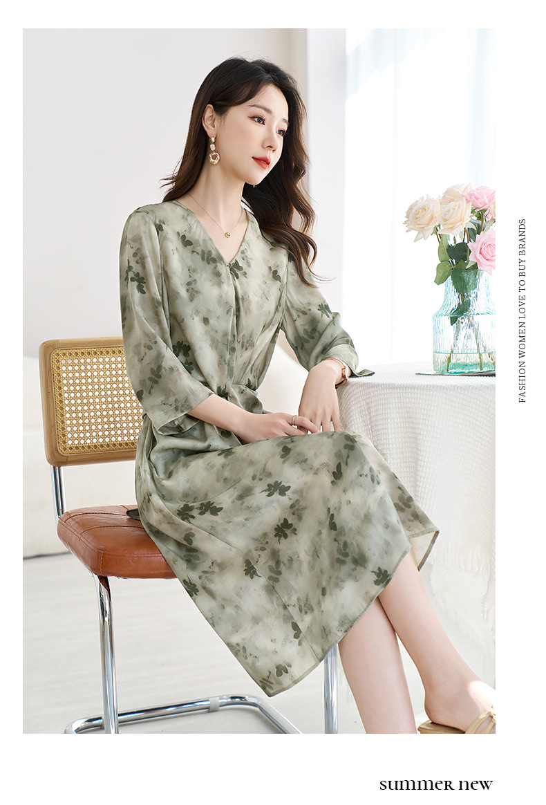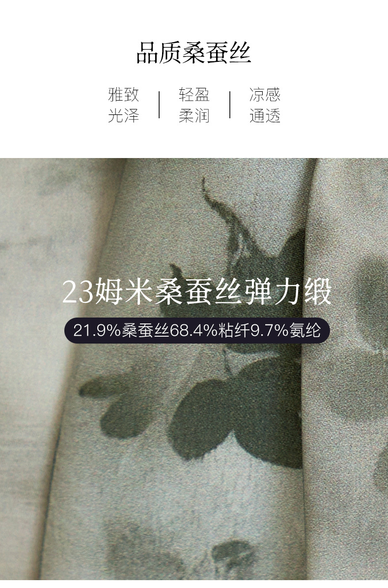 QS-82598850【细腻柔滑】夏季丝粘弹力缎印花中长裙21.9%桑蚕丝连衣裙女8850