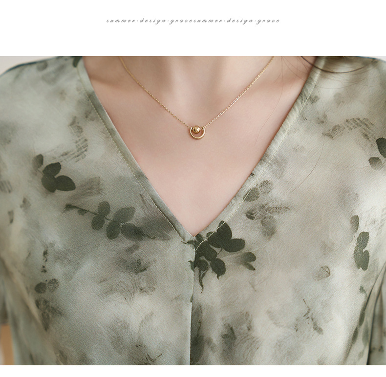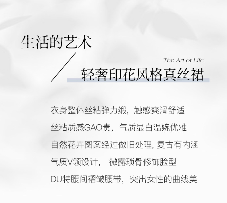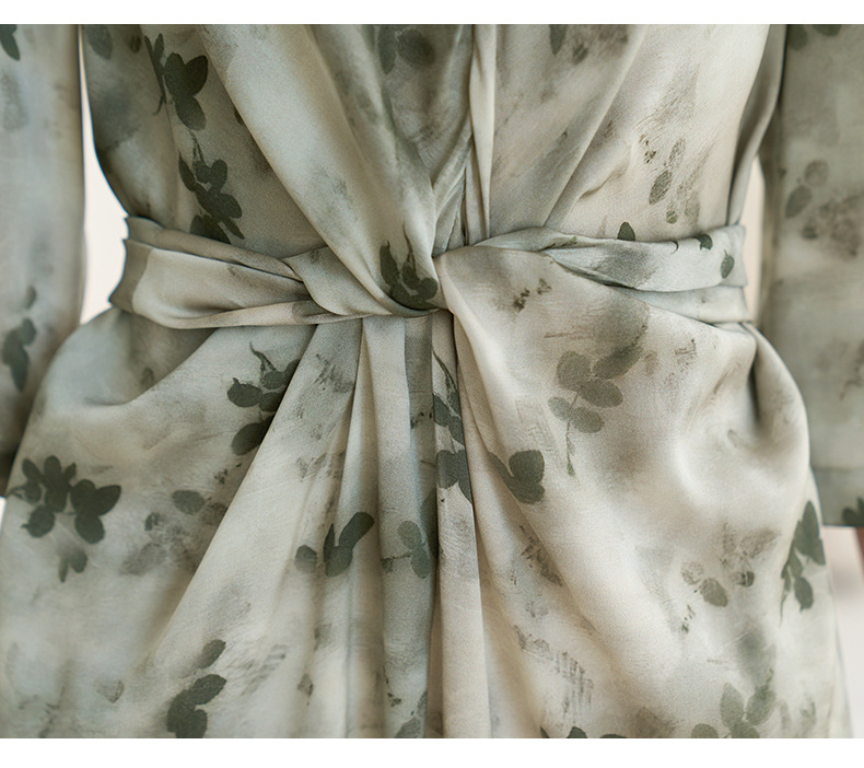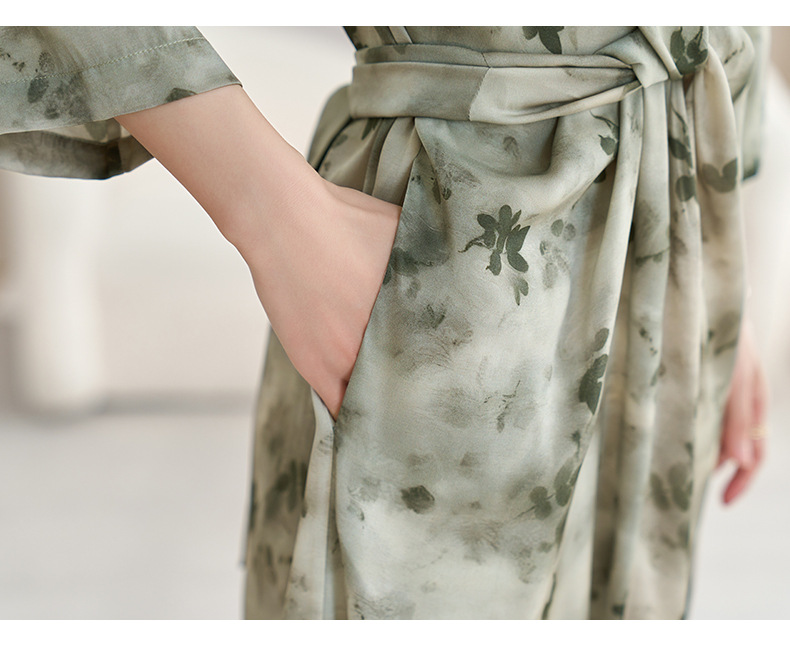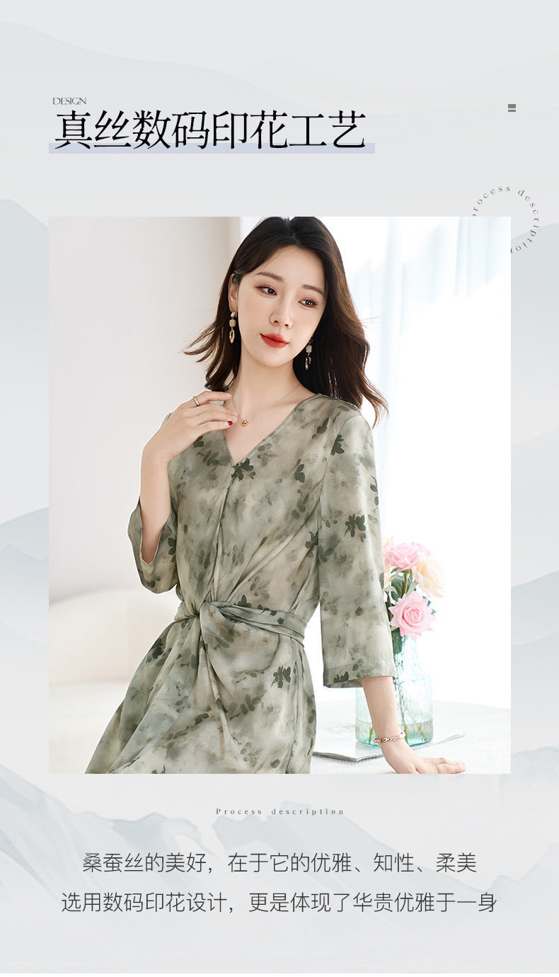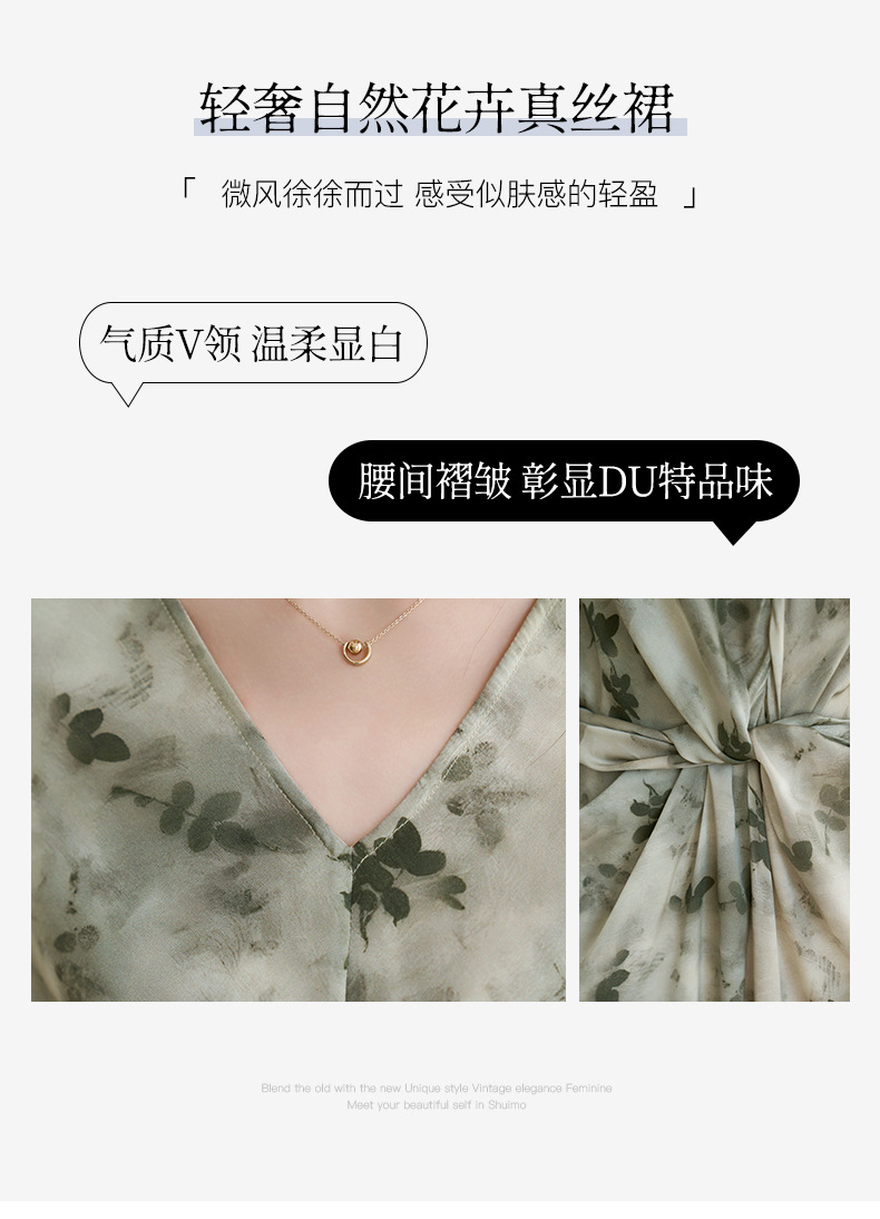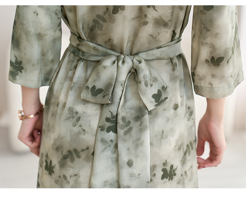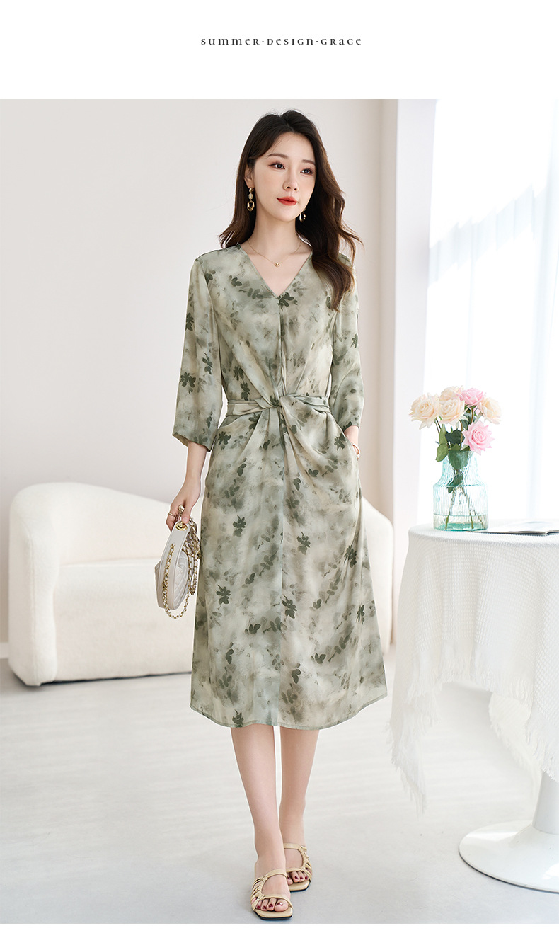QS-82598850【细腻柔滑】夏季丝粘弹力缎印花中长裙21.9%桑蚕丝连衣裙女8850