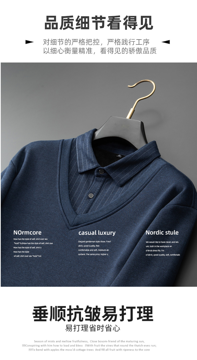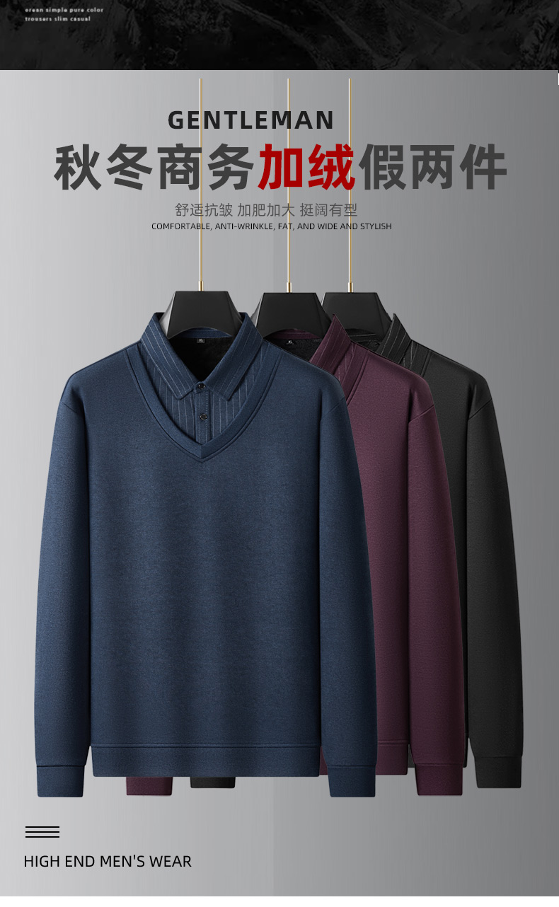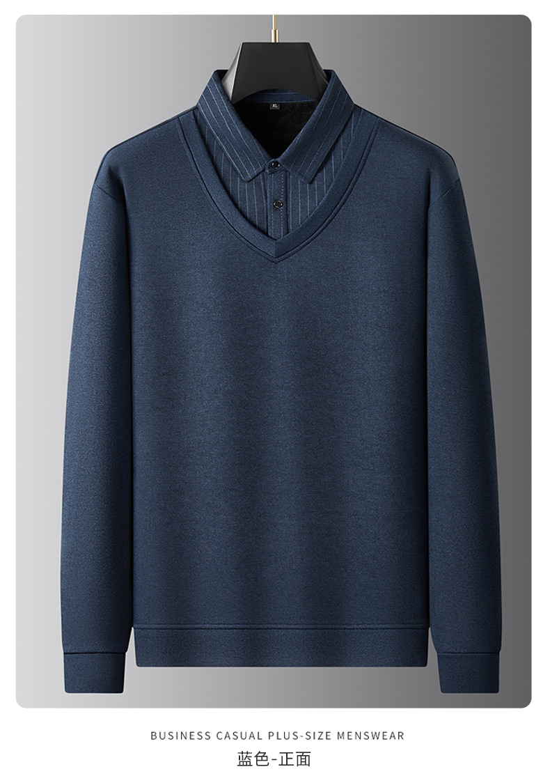 大依优型大码男装秋冬加绒假两件POLO衫休闲商务翻领长袖上衣300