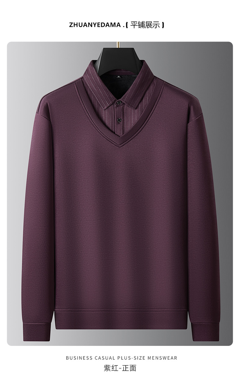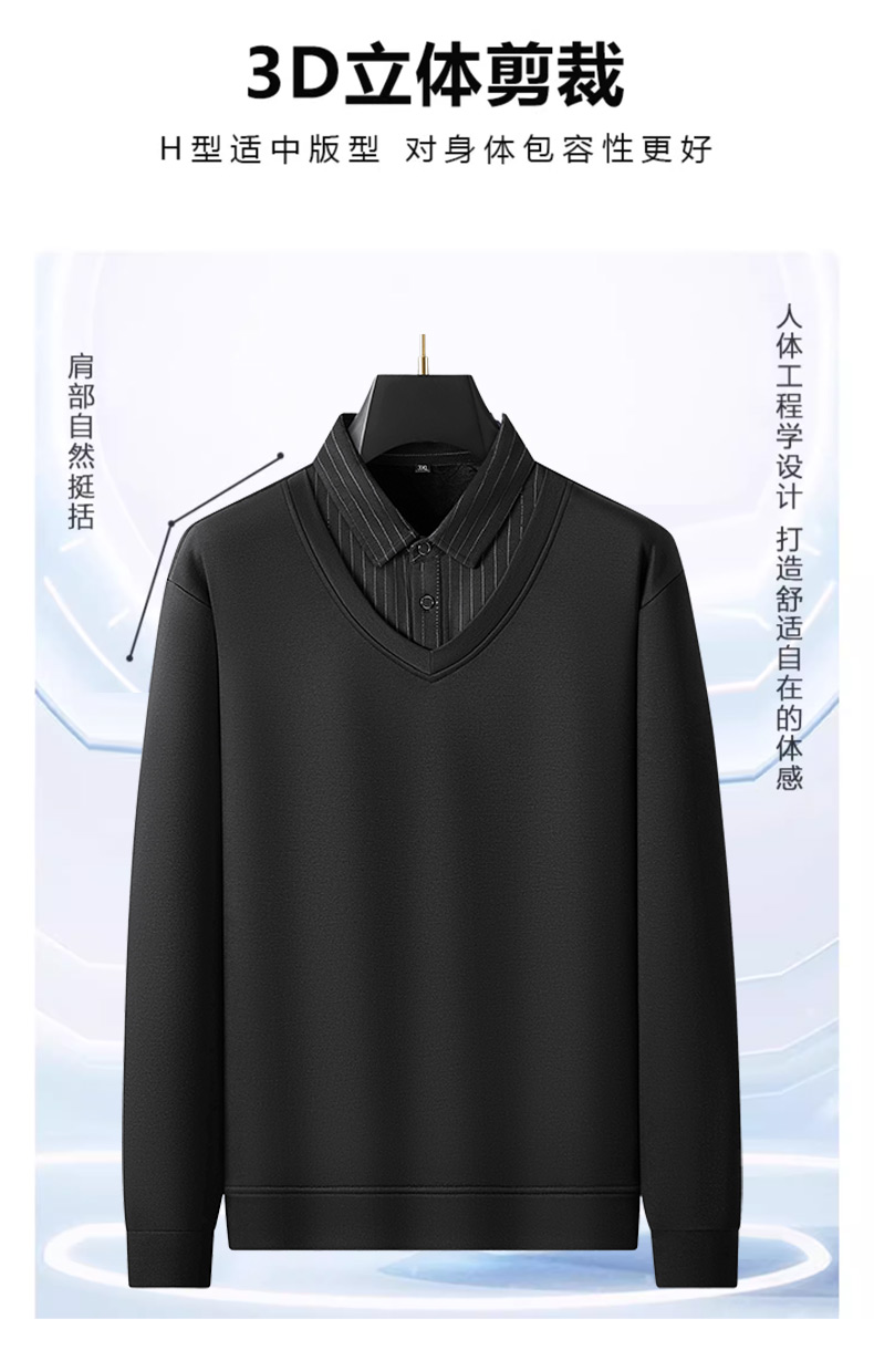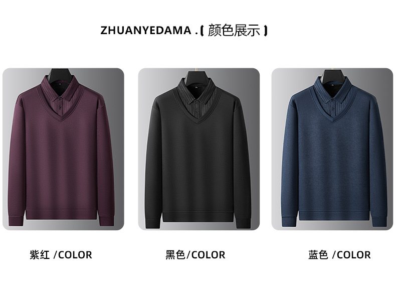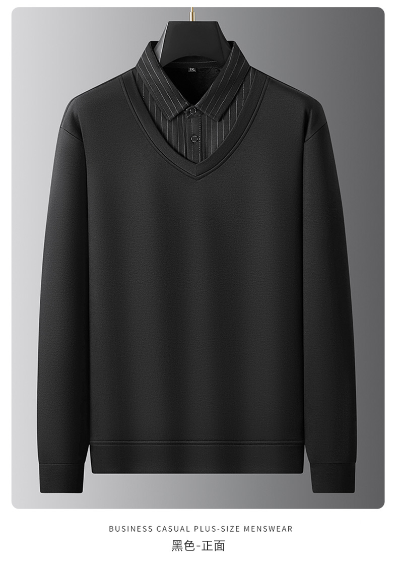 大依优型大码男装秋冬加绒假两件POLO衫休闲商务翻领长袖上衣300