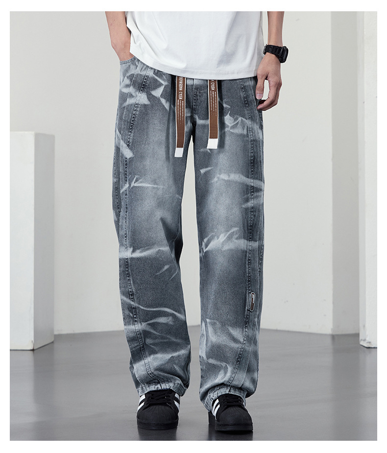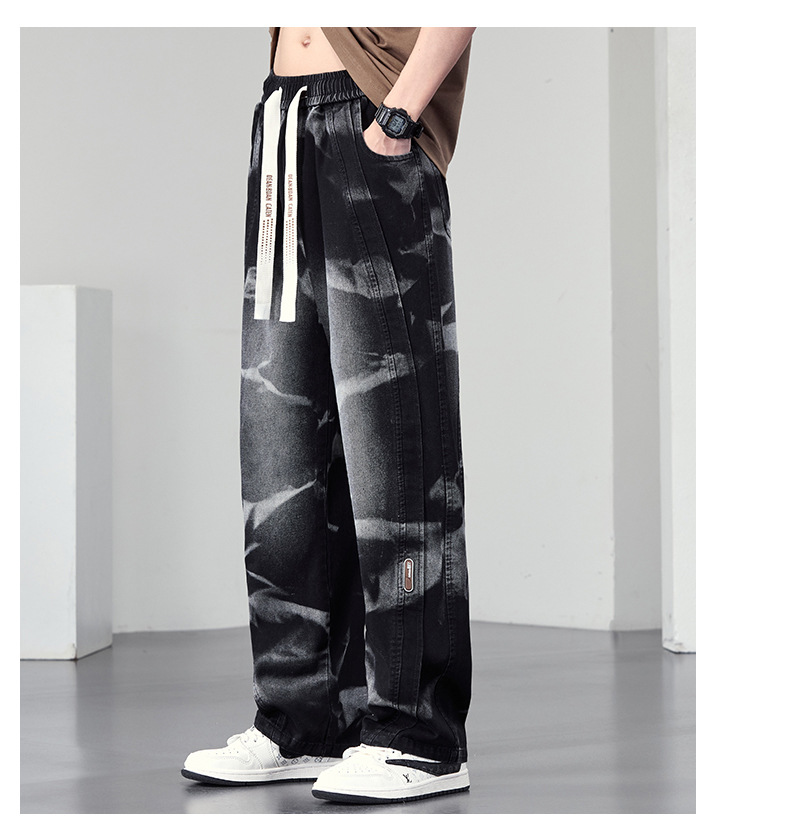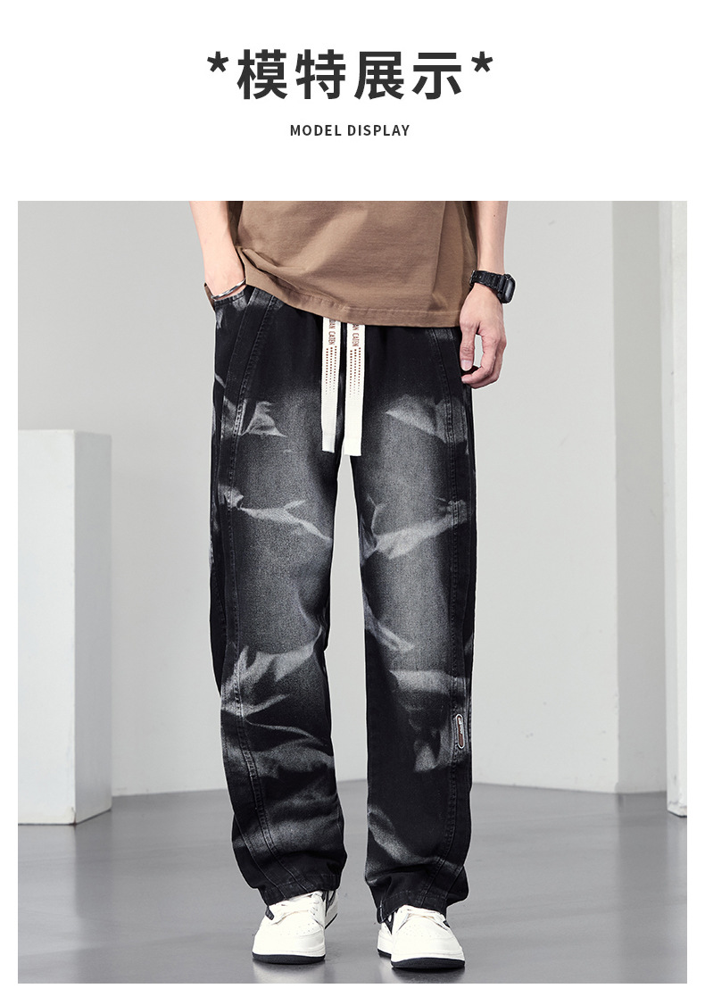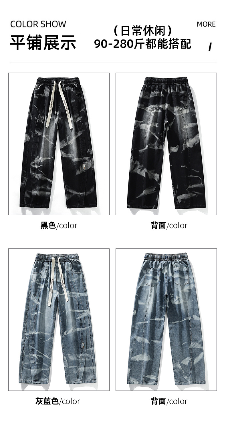 【DYF】大依优型大码男装松紧腰直筒牛仔裤宽松运动休闲风潮流男士胖子长裤 商品图2