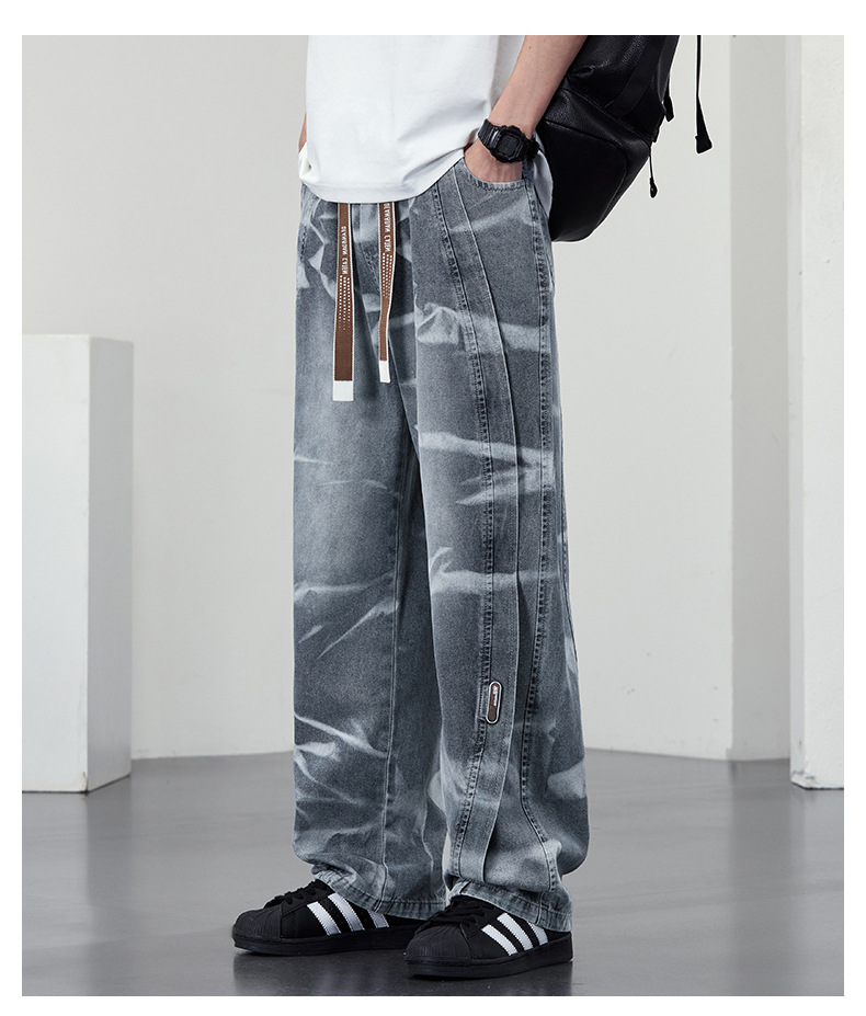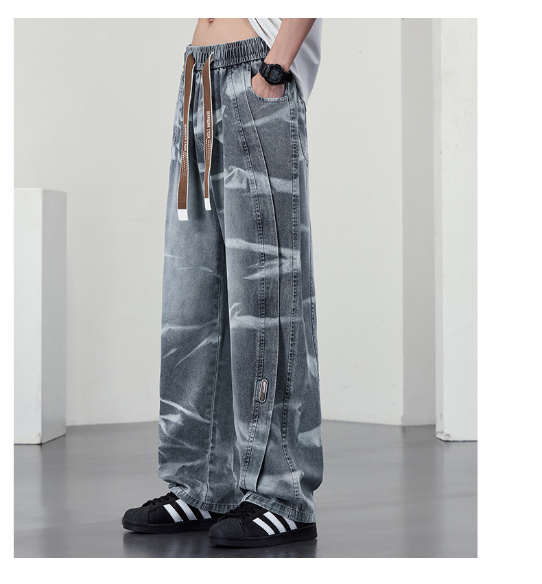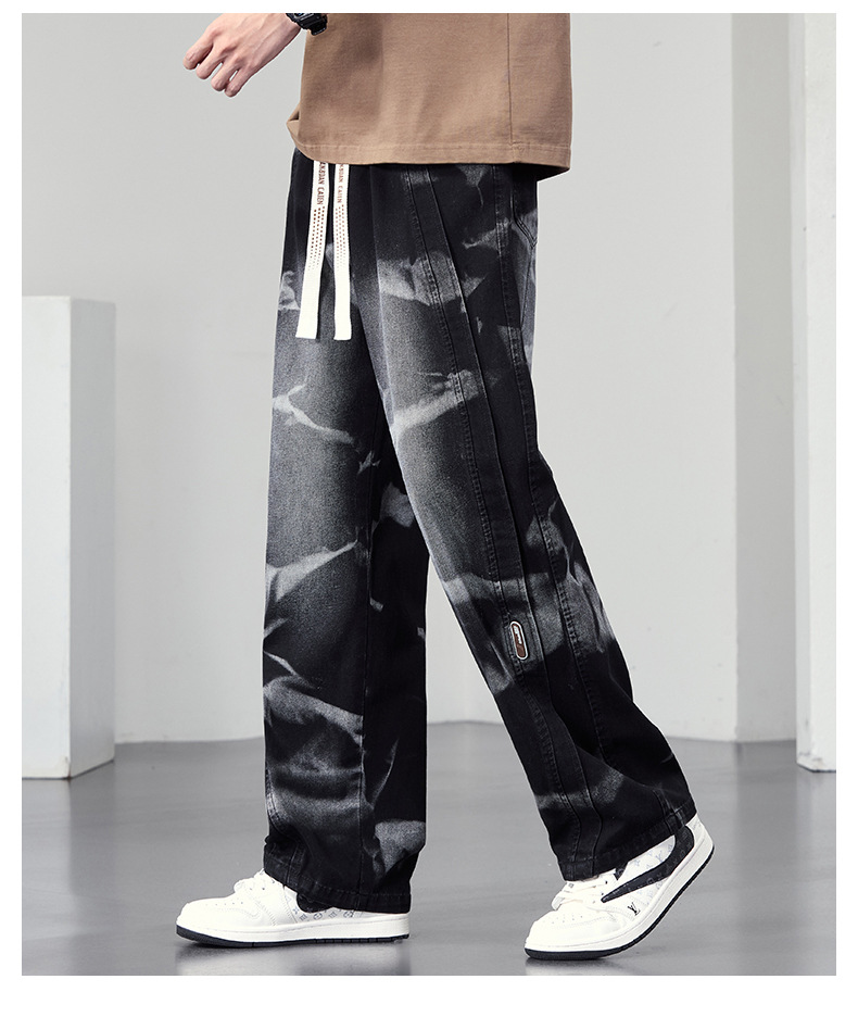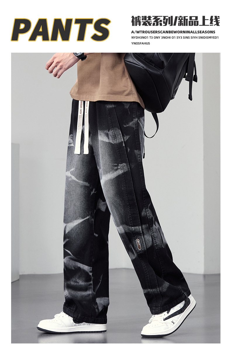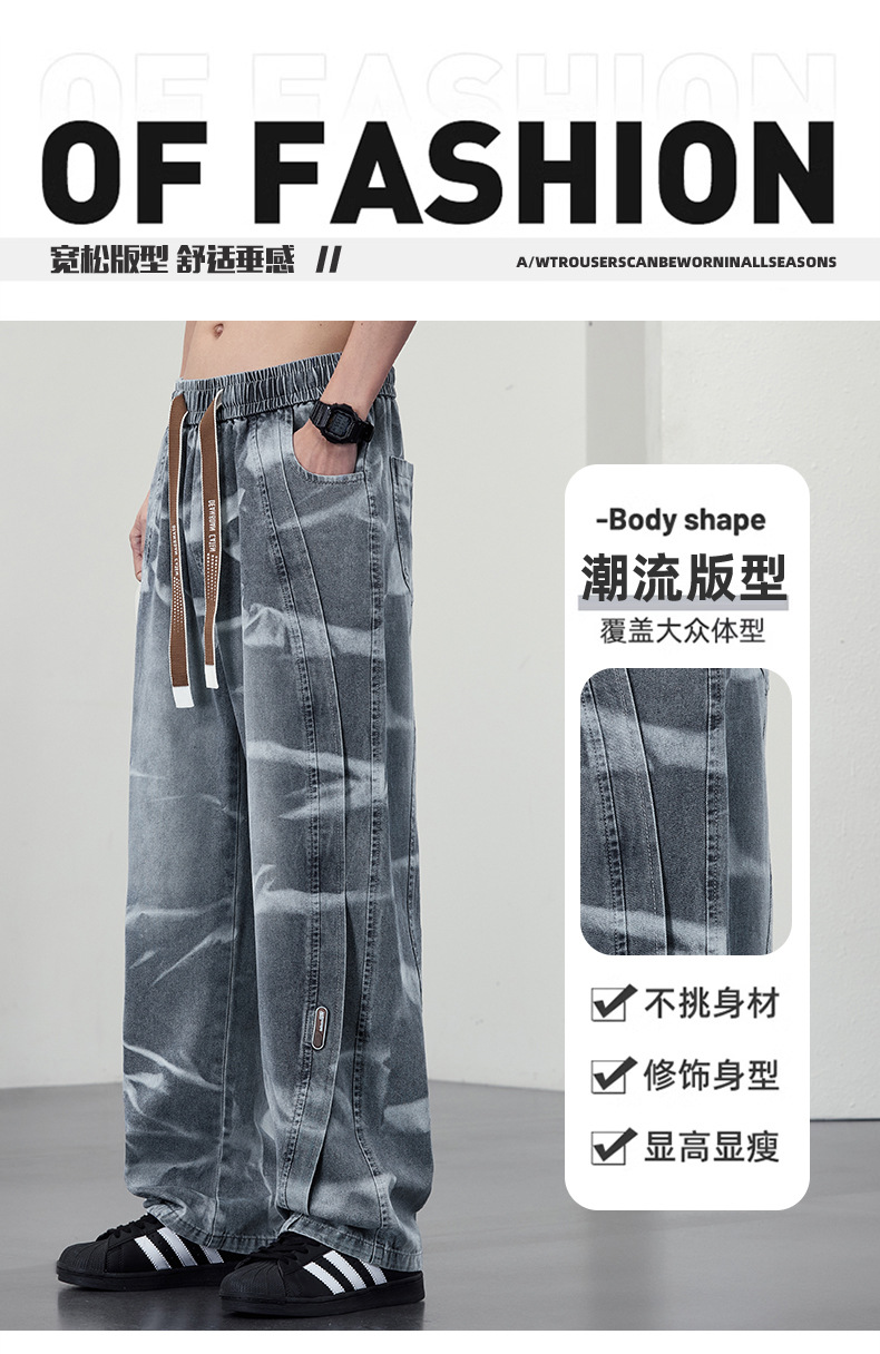 【DYF】大依优型大码男装松紧腰直筒牛仔裤宽松运动休闲风潮流男士胖子长裤 商品图2