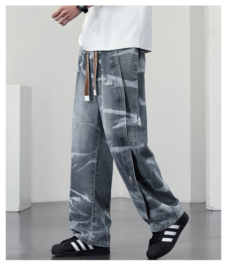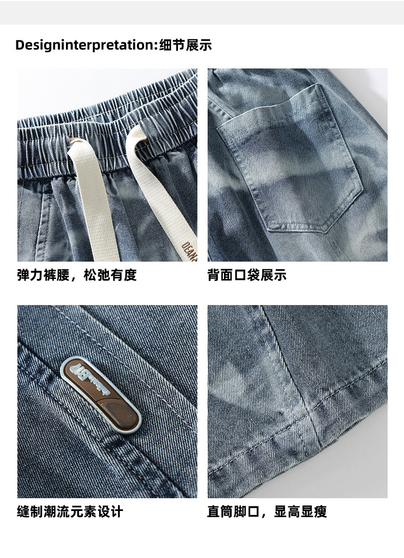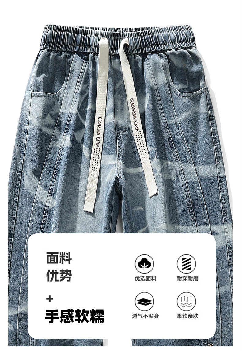 【DYF】大依优型大码男装松紧腰直筒牛仔裤宽松运动休闲风潮流男士胖子长裤 商品图4