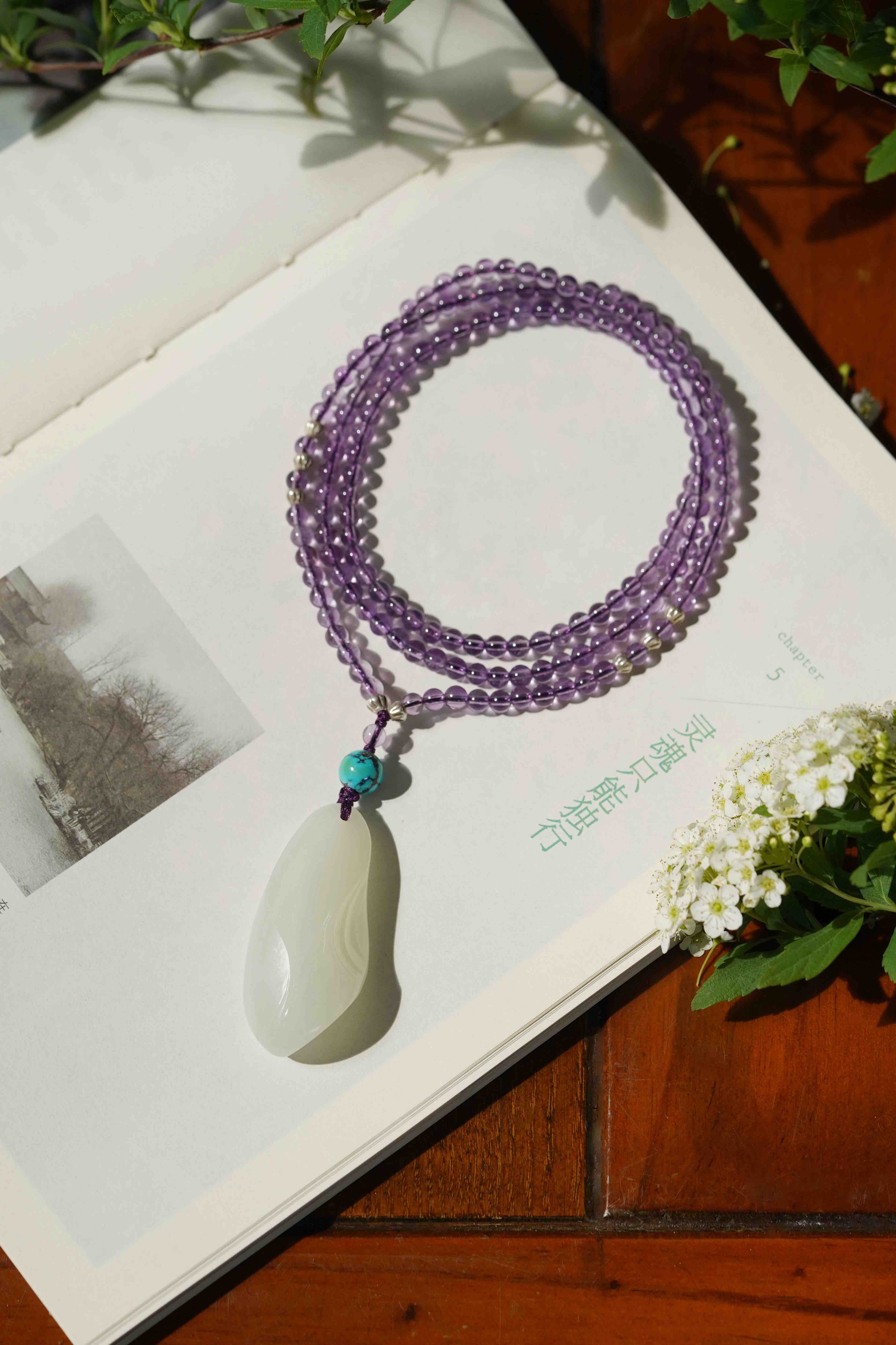 和田玉紫水晶项链
