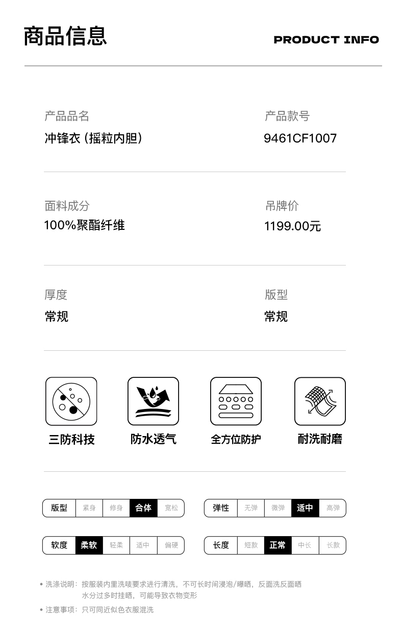 卡尔美新款冲锋衣(摇粒内胆)9461CF1007