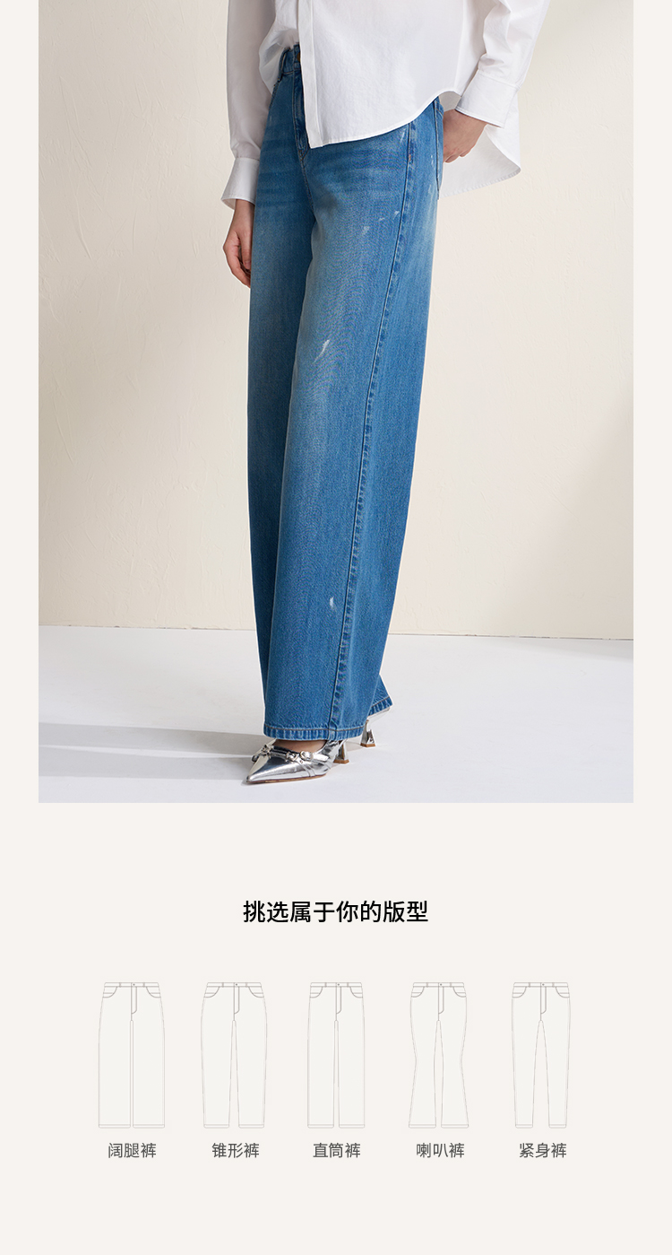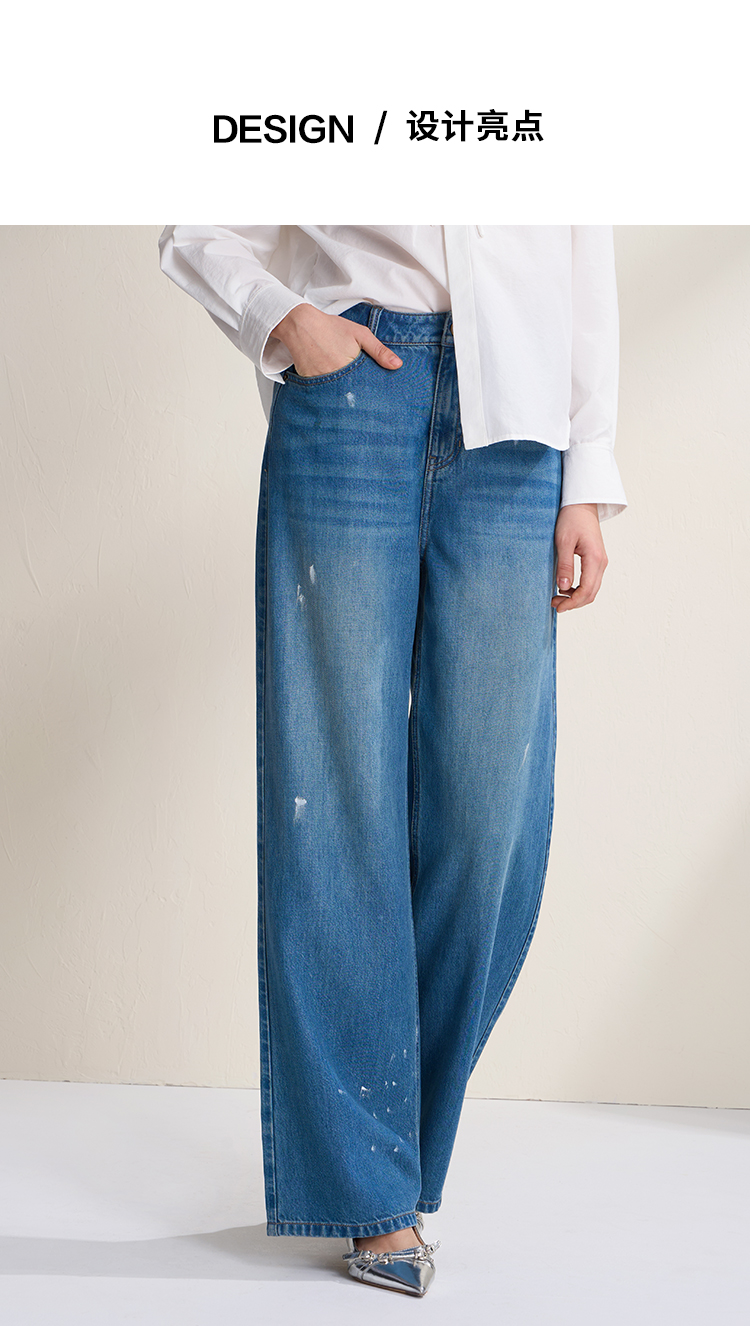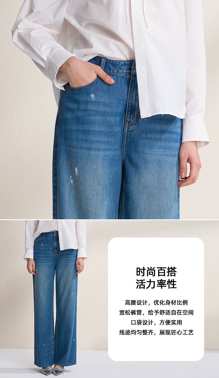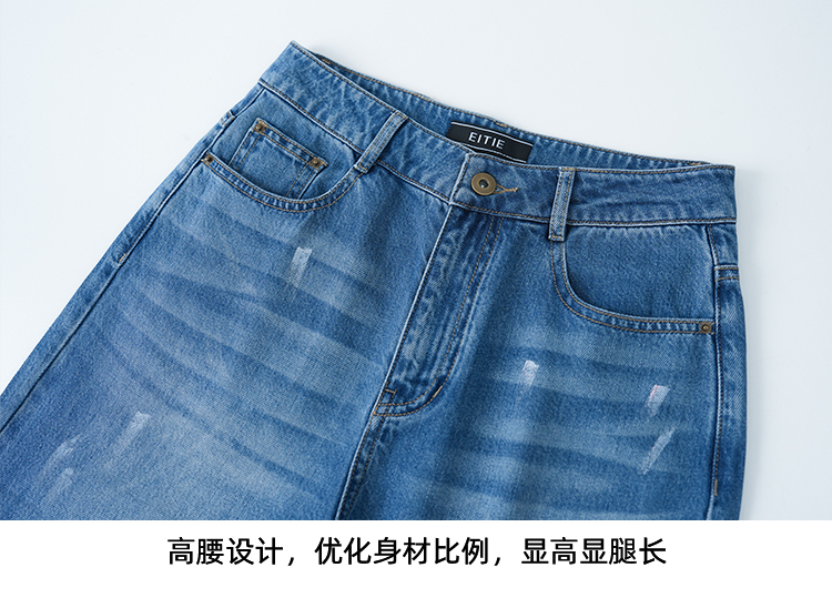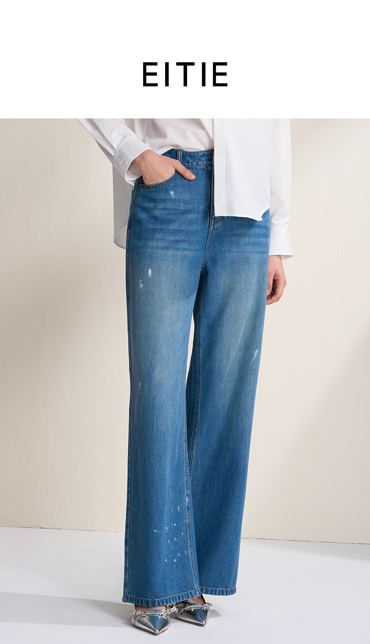 EITIE爱特爱简约复古直筒显瘦高腰浅蓝色牛仔裤2026春季新款A2605109