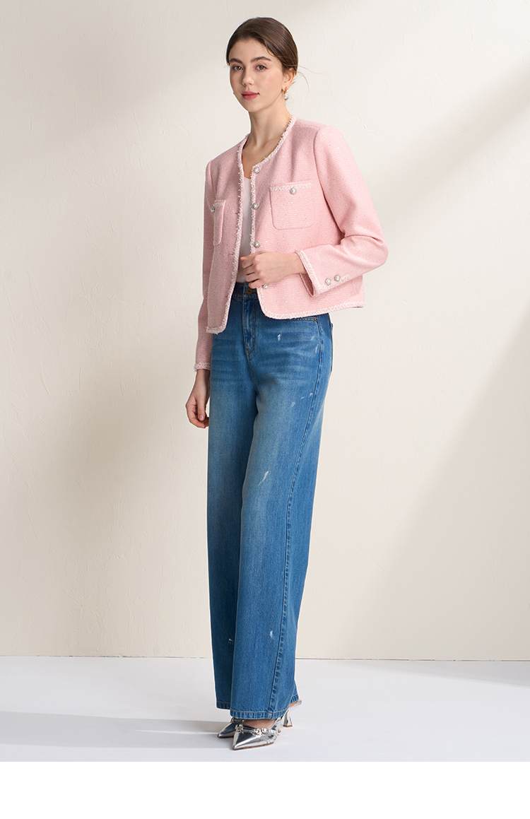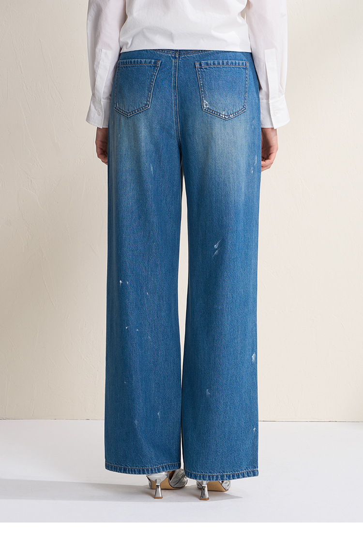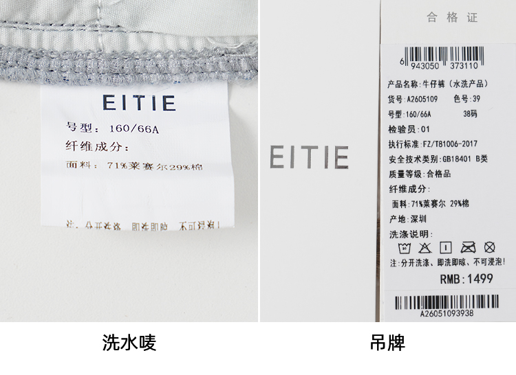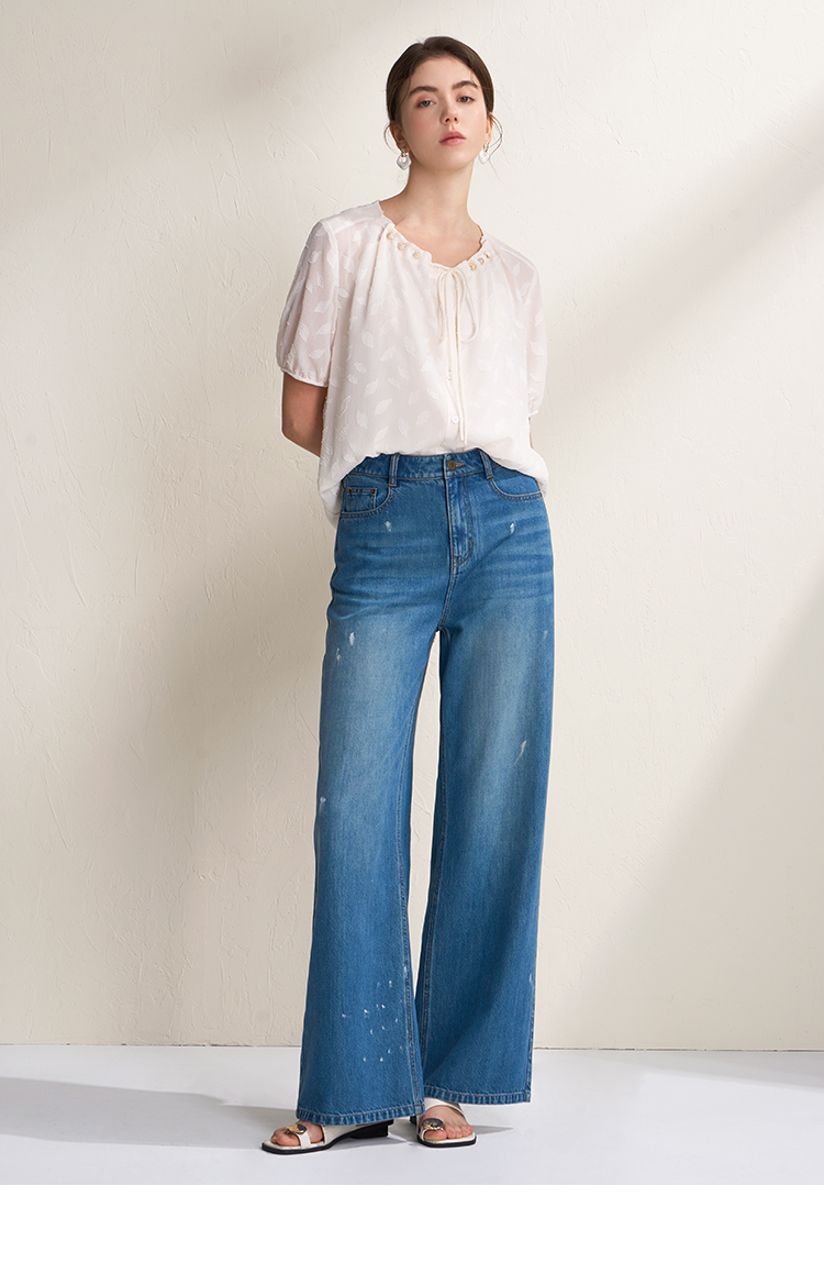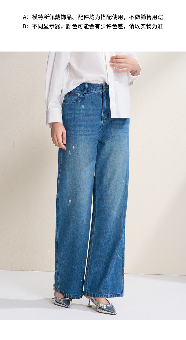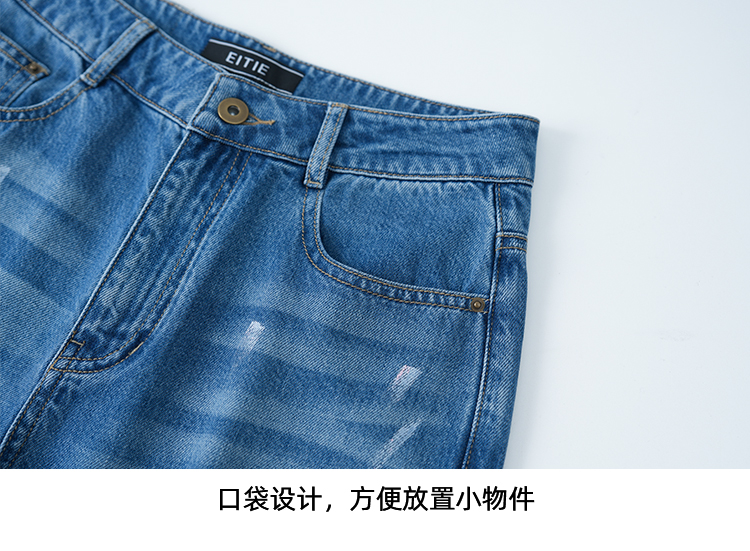 EITIE爱特爱简约复古直筒显瘦高腰浅蓝色牛仔裤2026春季新款A2605109