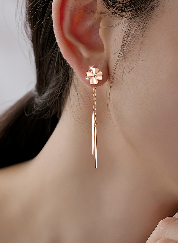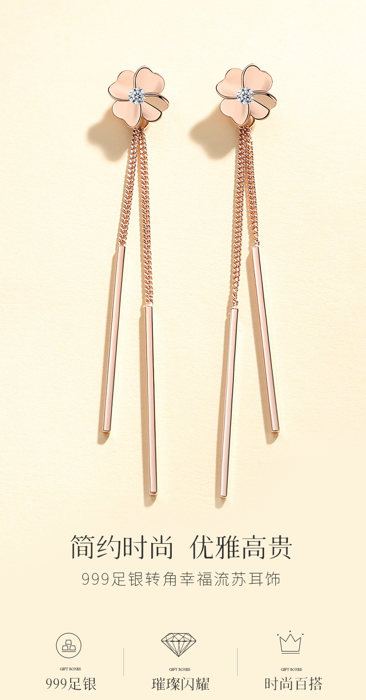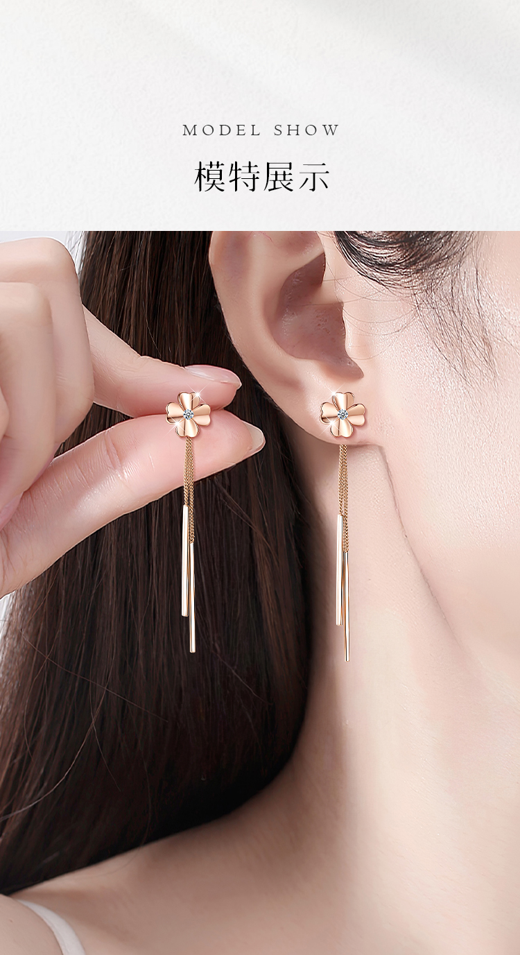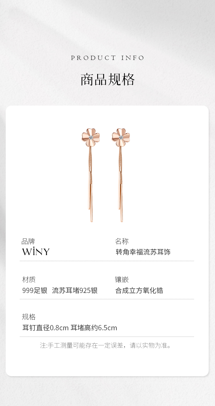 Winy925纯银转角幸福耳钉轻奢小众百搭四叶草流苏耳坠耳饰送女友生日礼物
