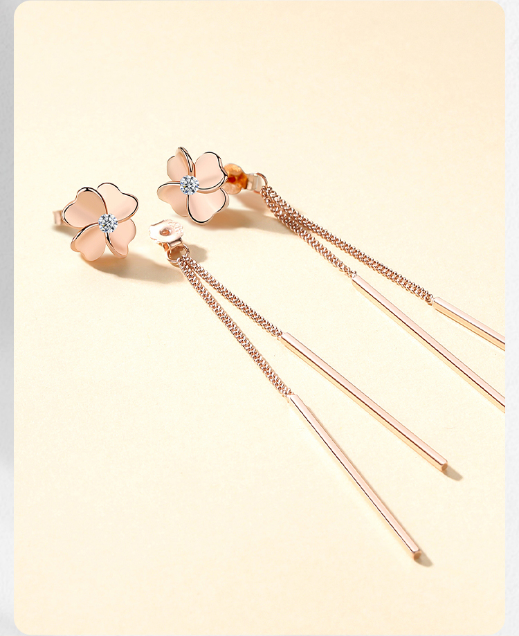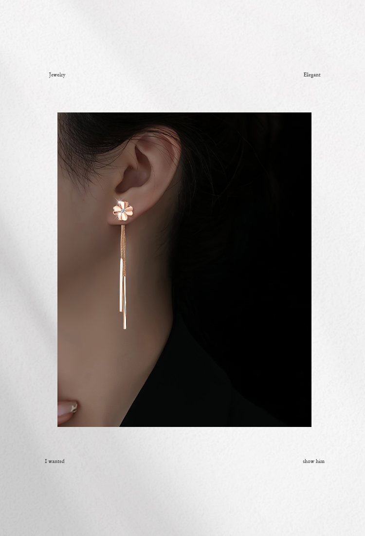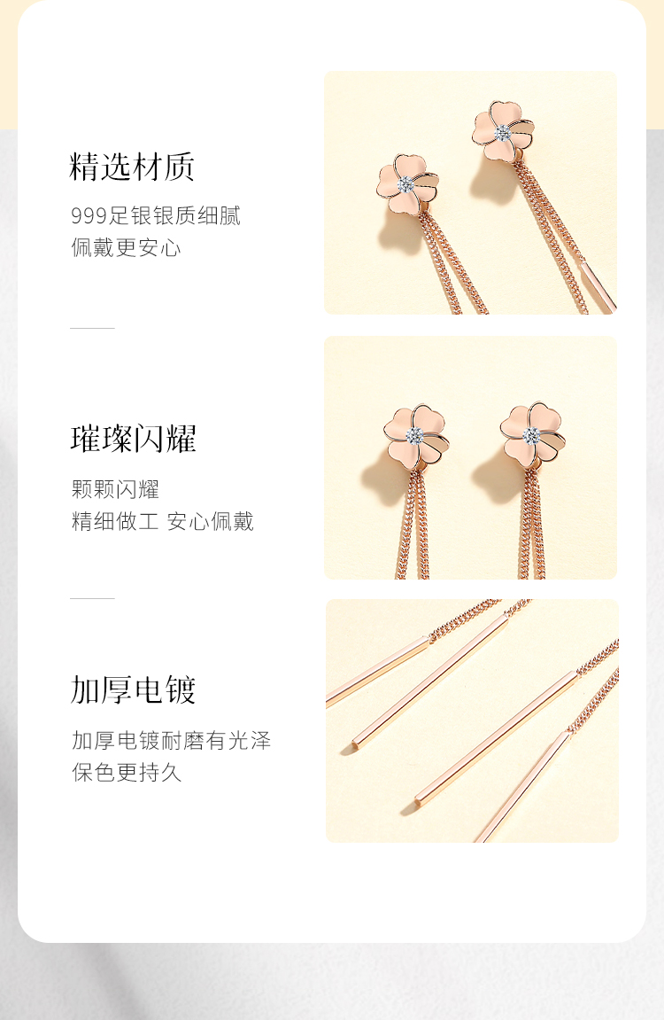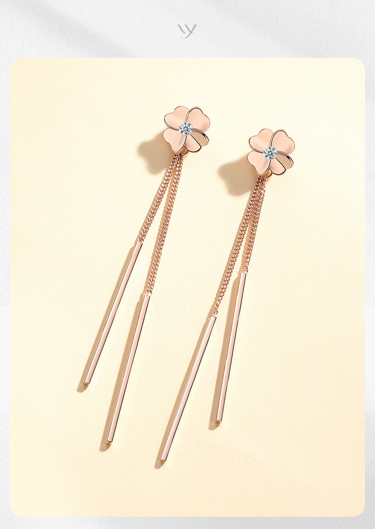 Winy925纯银转角幸福耳钉轻奢小众百搭四叶草流苏耳坠耳饰送女友生日礼物
