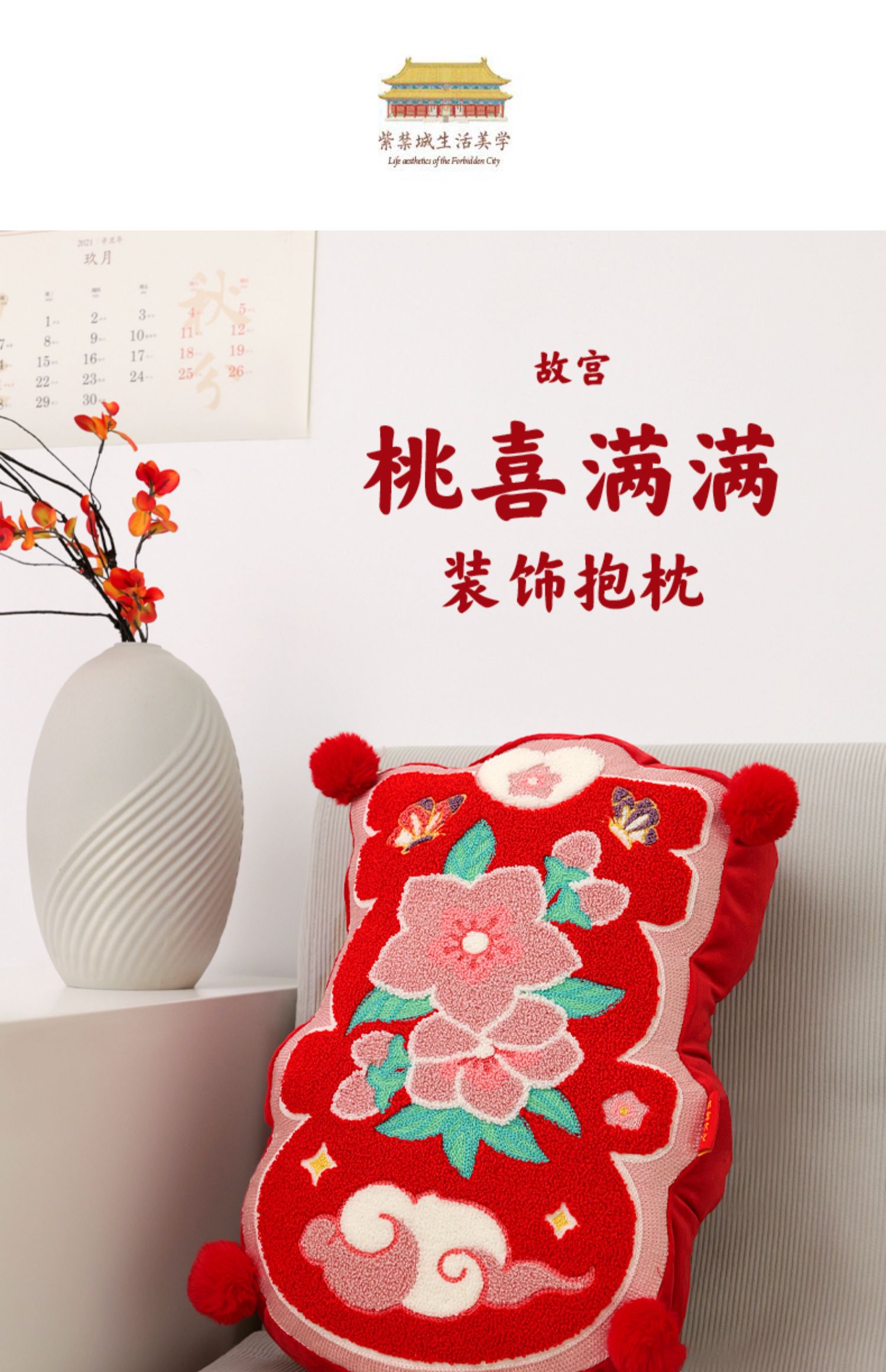 故宫 桃喜满满装饰抱枕