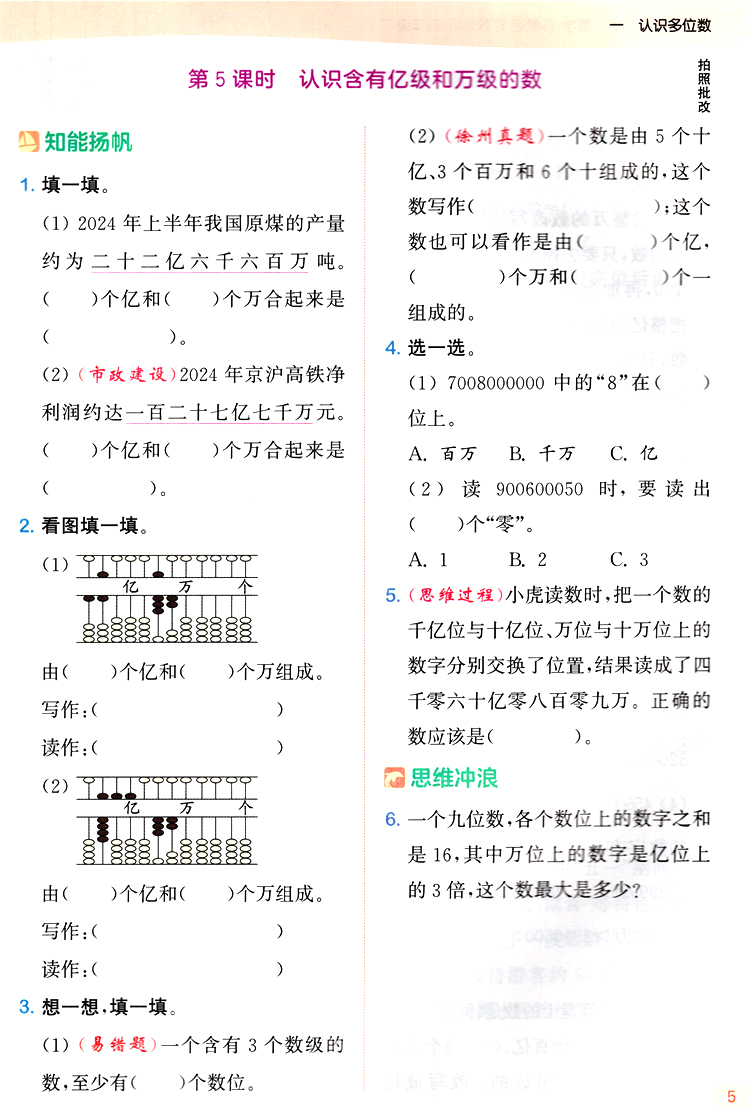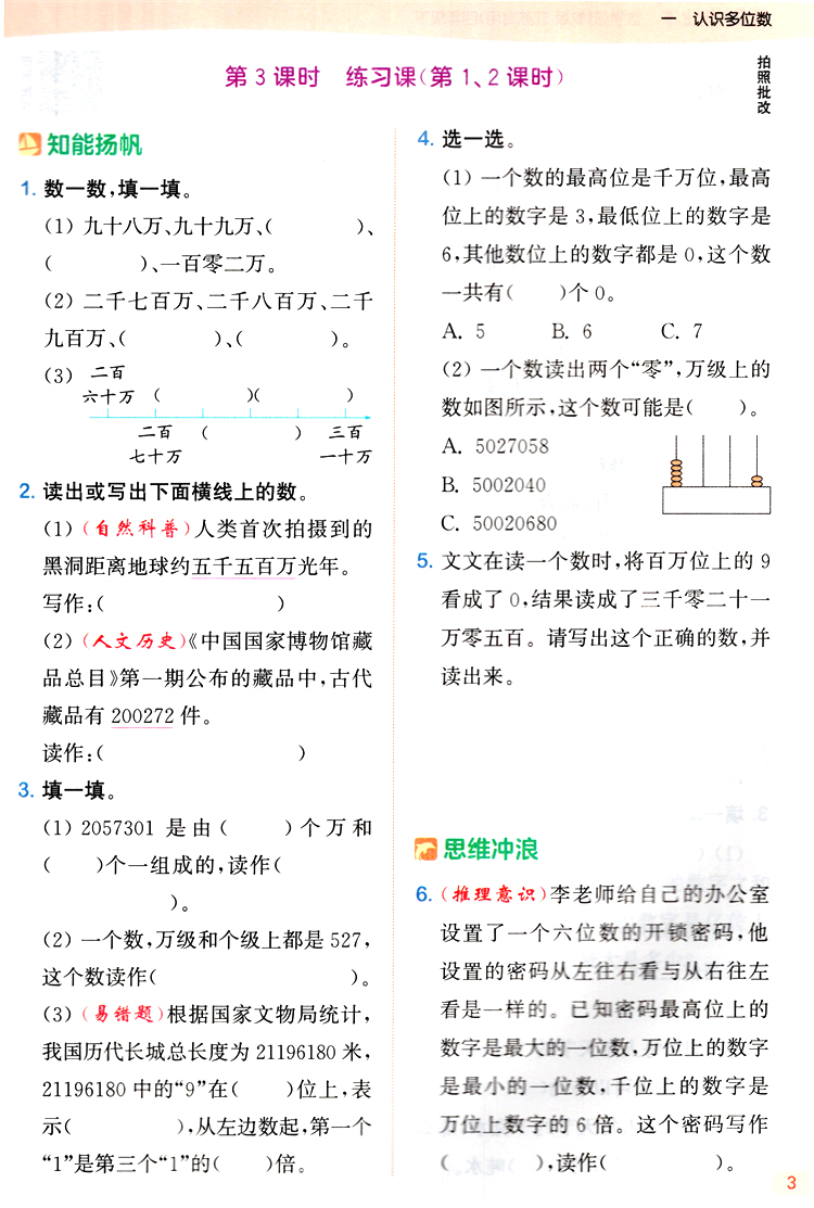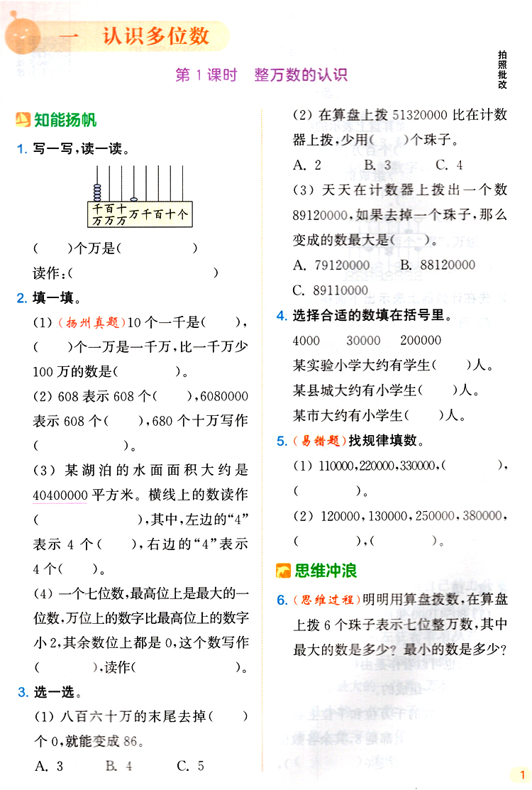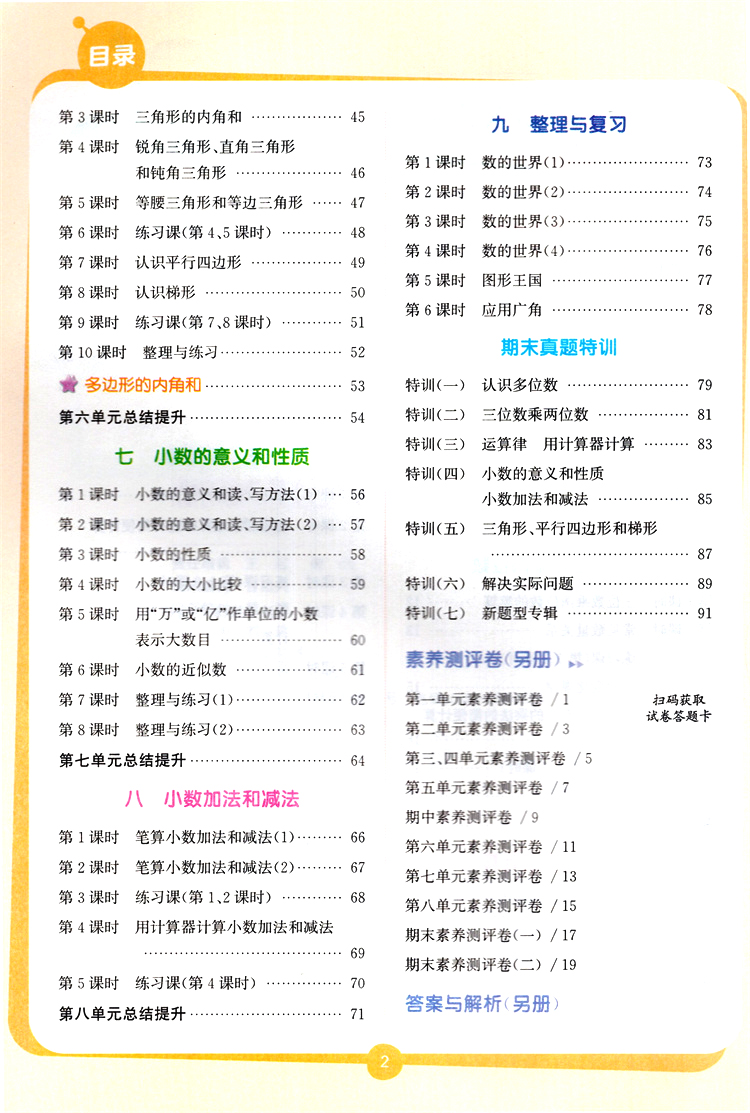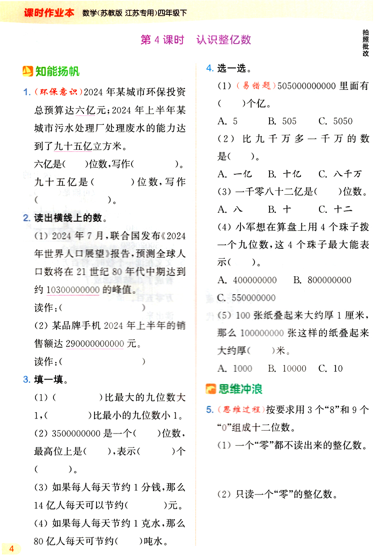 2026春 课时作业本 数学4下 四年级下册 苏教版 教材辅导培优同步练习 通城学典 浙江教育出版社