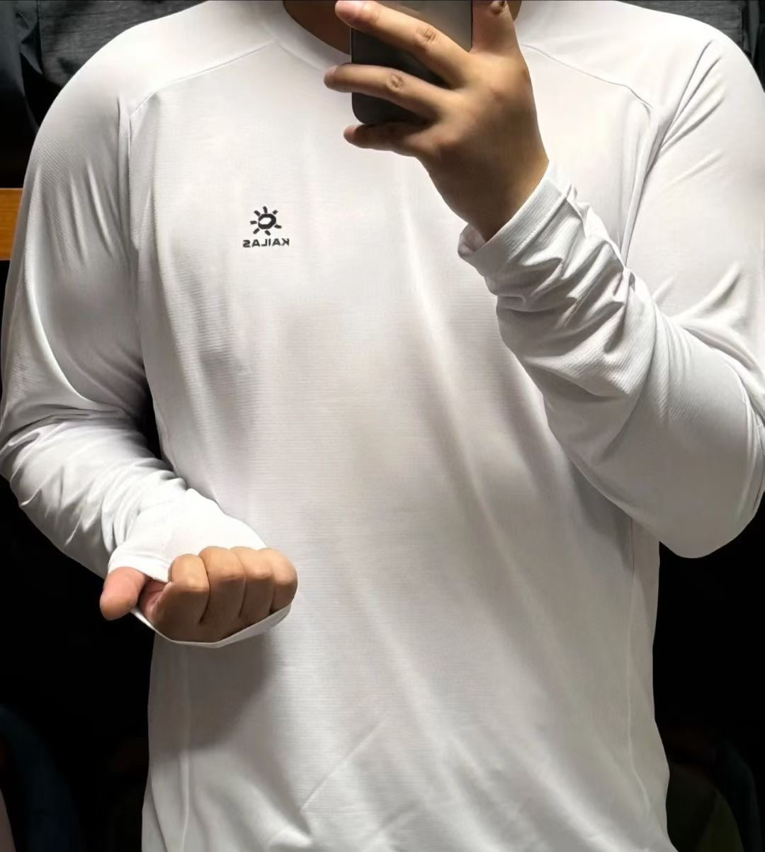 一个字就是贵!今年最好的速干功能长袖T恤!!穿过的都说好!不是普通速干T!定制浮点面料,内里同样是绒感状波点面料!超柔软舒服!有一定厚度!