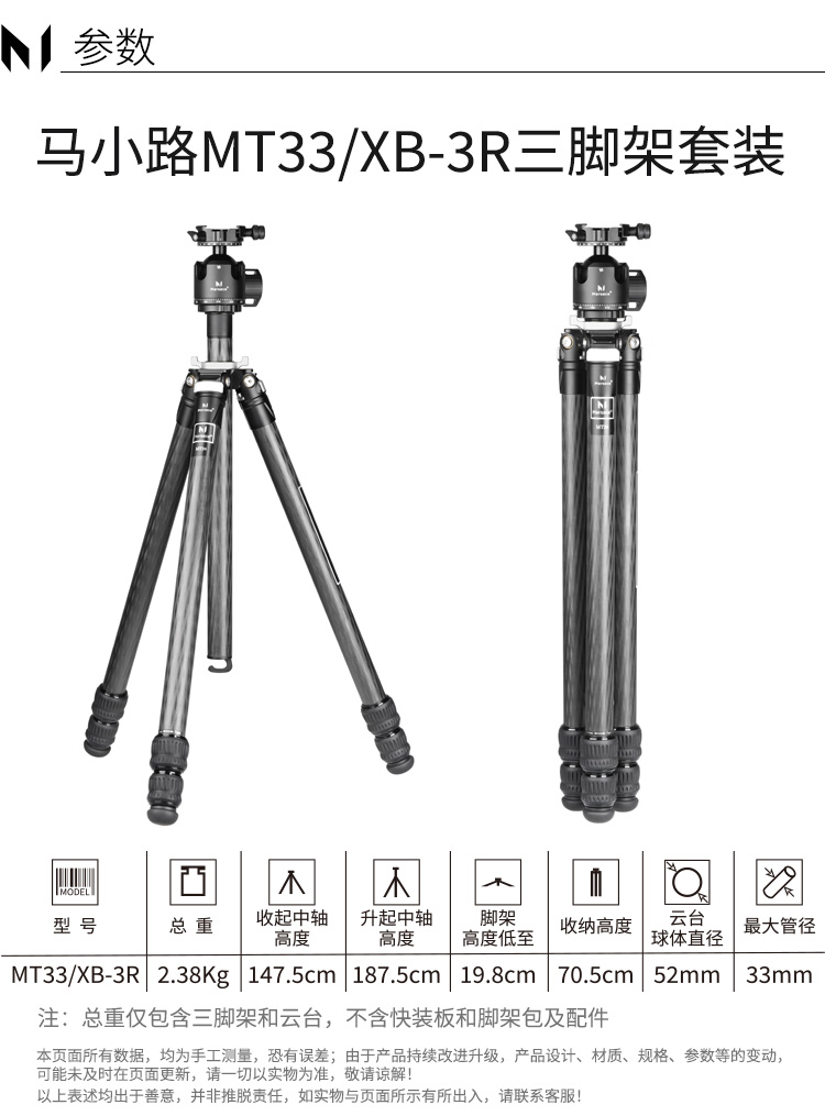 马小路(marsace) MT33 XB-3R专业碳纤维三脚架云台套装